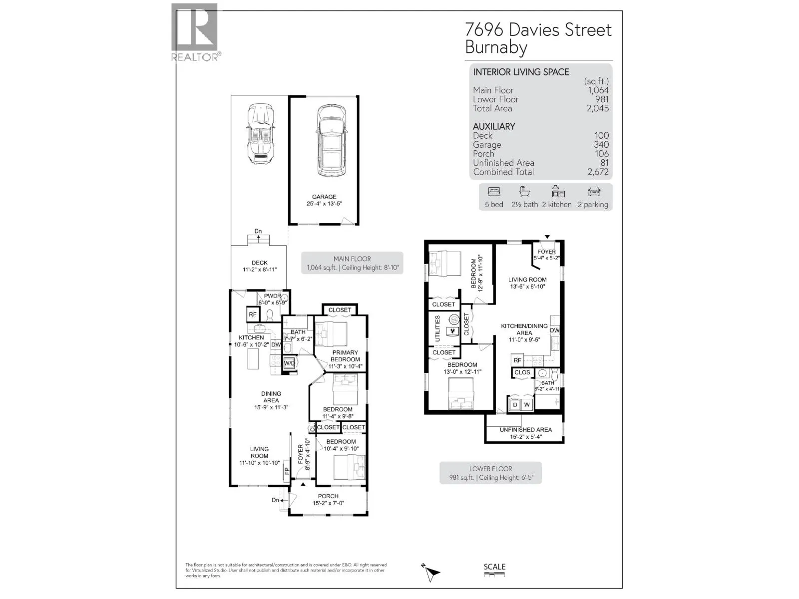 Extensively renovated 5 bedroom, 3 bath home on quiet street near parks, schools, & transit. Main floor has 3 bedrooms & new luxury vinyl floors. NEW IKEA kitchen w/quartz counters, s/s appliances, tile backsplash. Updated bath + pwdr room, porch & rear deck. 2 bed suite below w/NEW kitchen, bath, flooring, baseboard heaters, blinds & laundry. Major updates: 2025 premium PVC siding, new windows incl triple pane on main, new gutters, new roof shingles, new garage door, new fiberglass door replacement for main entrance & rear. Rinnai tankless hot water, furnace motor. New appliances in main & suite. New cedar fencing, artificial turf & pavers. Renovated porch w/tile, beadboard ceiling & lighting. Detached single garage + 1 car driveway parking. Minutes from Highgate, Metrotown & Skytrain. (id:27476)