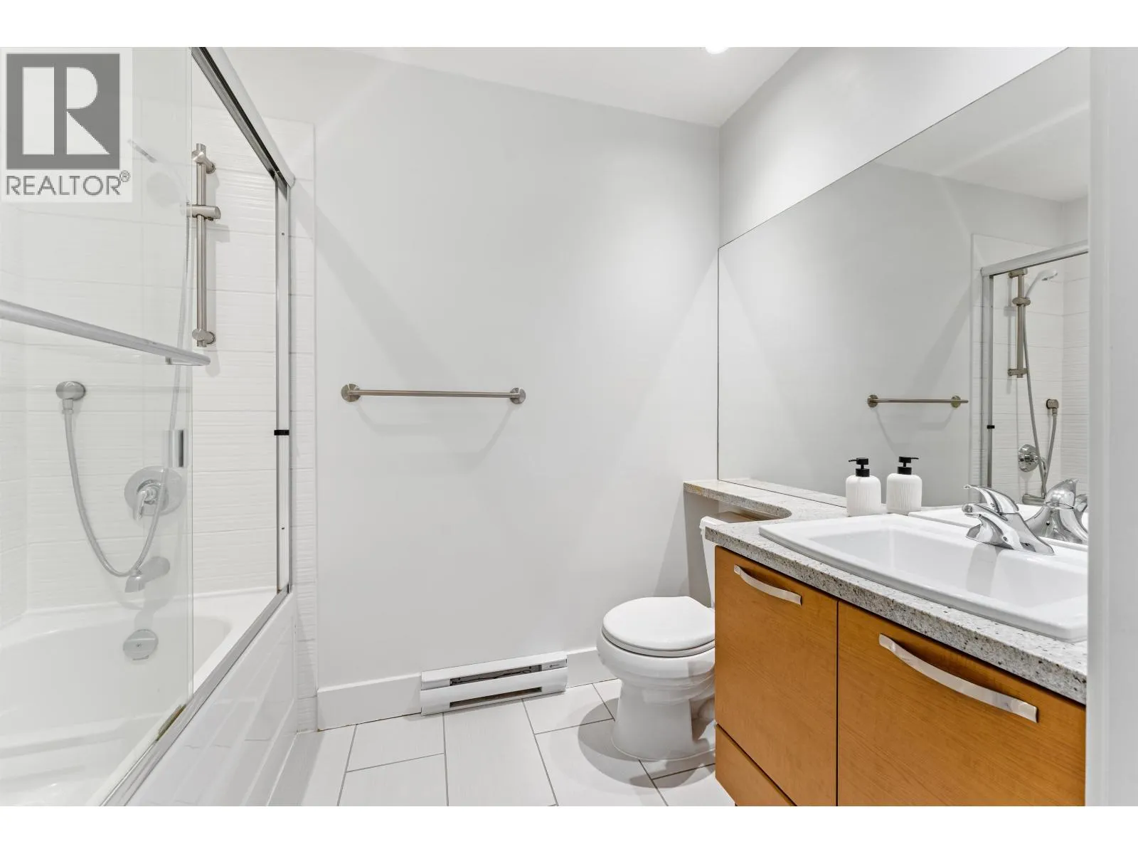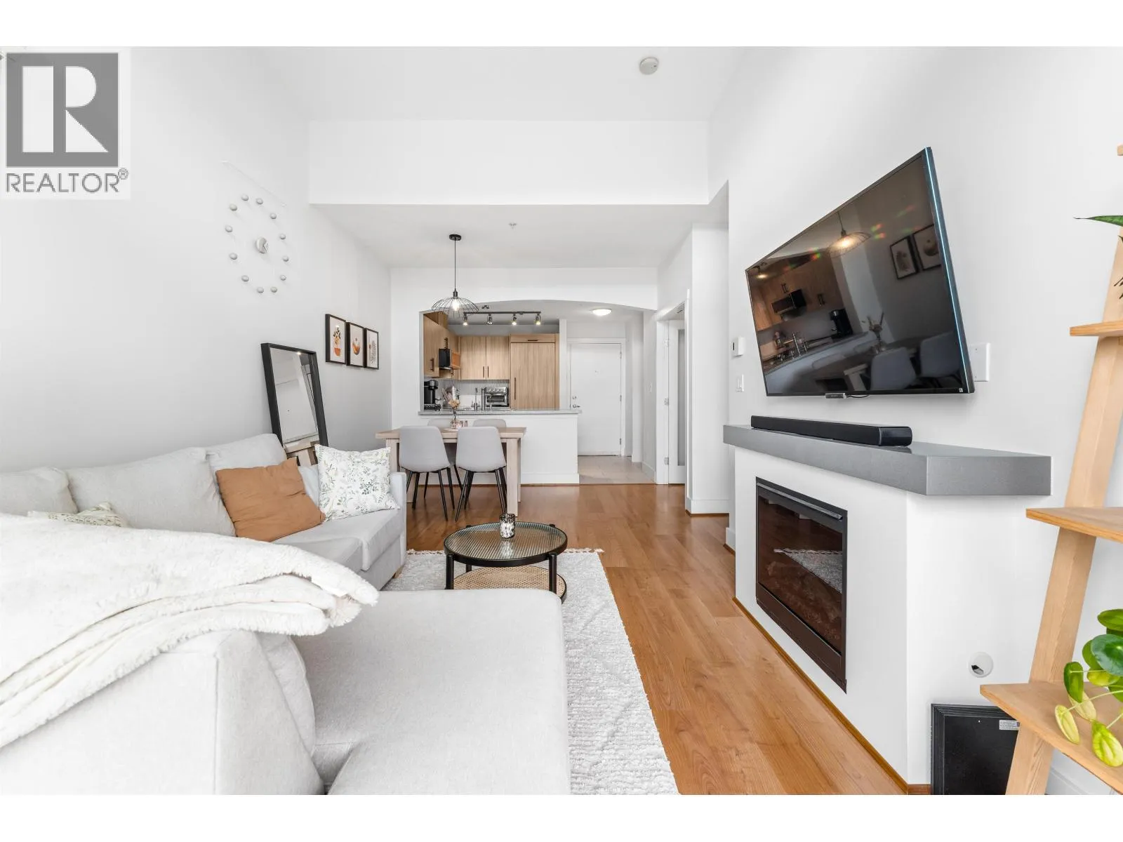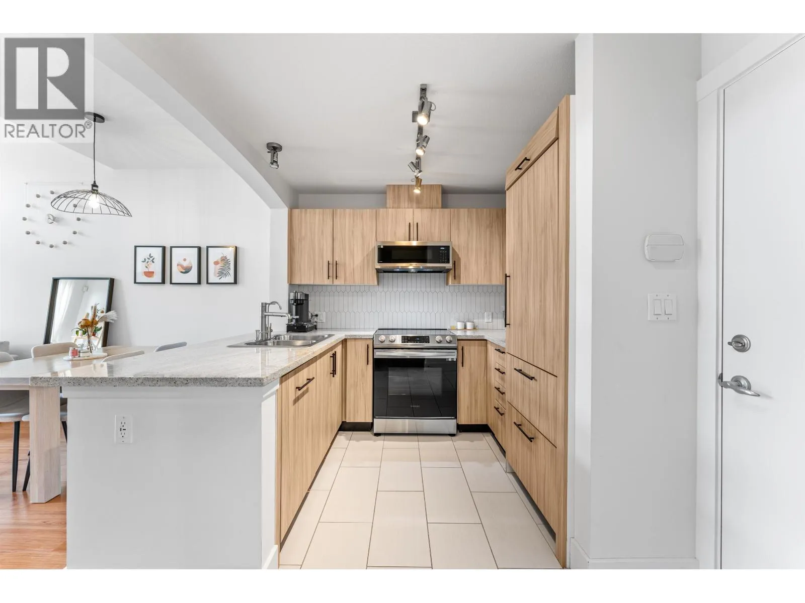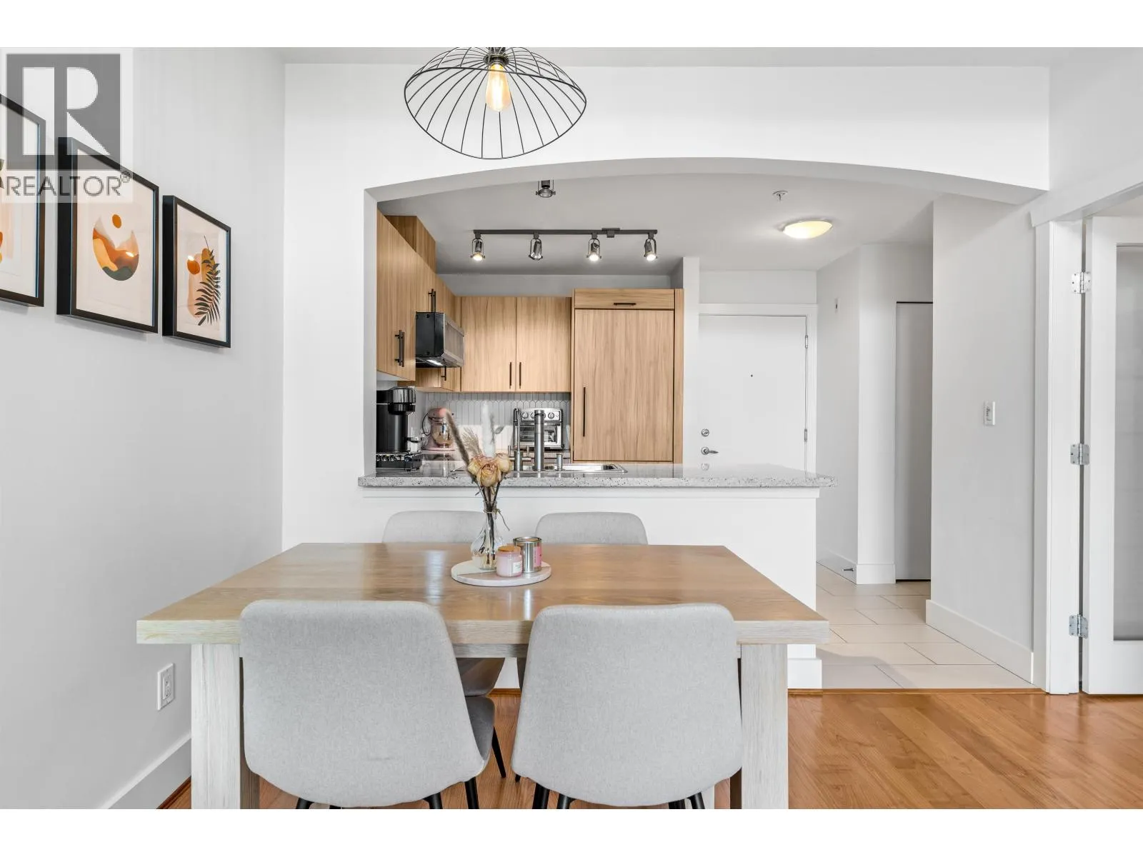 Bright, air conditioned 1 bedroom and den Penthouse suite in GREEN, by Adera. Features include 11ft+ vaulted ceilings in the living/ dining room, updated open plan kitchen equipped with new high end appliances & upgraded cabinet doors, granite countertops with large peninsula/ eating bar and custom backsplash . Beautiful laminate floor. The suite is impeccably maintained, and opens onto a large sundeck with views to the South, overlooking beautiful gardens. Upgraded washer /dryer. 1 parking and 1 storage locker. Amenities include clubhouse, fitness center, sauna, games room and more. Lots of visitor parking. Open House Sunday Nov 16, 2-4pm. (id:27476)