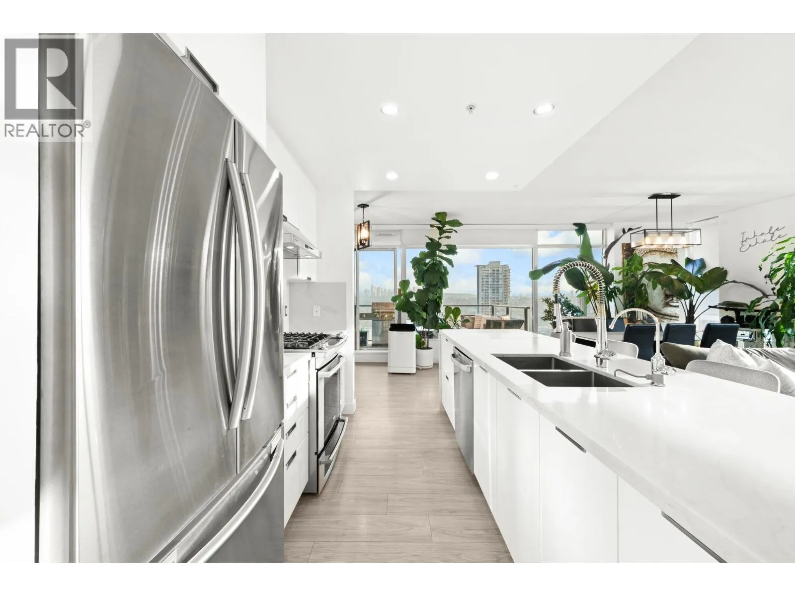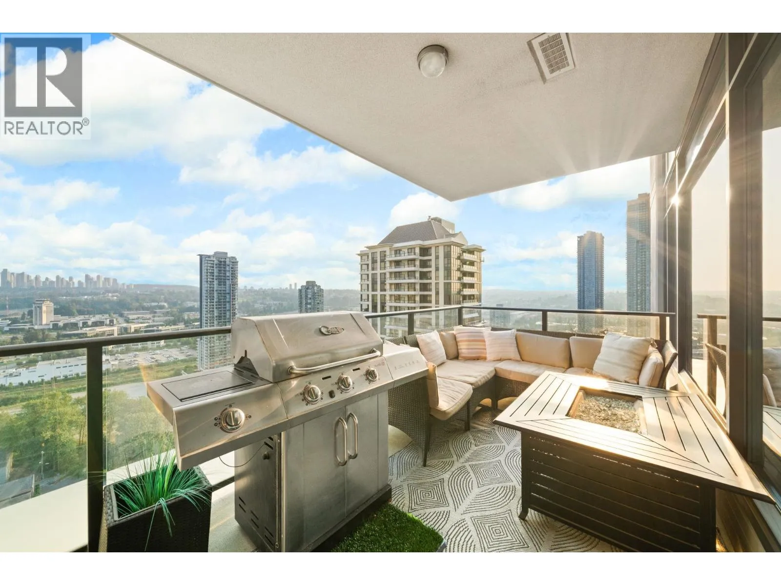 Welcome to your very own luxurious show home up in the sky. THE BEST 2 BEDROOM & DEN FLOORPLAN IN THE BUILDING: Vantage by BOSA! This spacious CORNER residence is captivating with South West panoramic views of the mountains & city! Featuring: 9' Ceilings with Floor to Ceiling Windows & Electric Blinds, Spa-Like Bathrooms, Elegant European Chef's Gourmet Kitchen, and a generous size patio deck to enjoy BBQ'S & entertaining, giving you over 1400 sf of indoor/outdoor living! Includes: 2 PARKING & STORAGE! Amenity Rich with: Fitness Studio, Sauna, Outdoor Garden Oasis, Children's Play Area, Dog Walk & 24 hr Concierge. With Proximity to Brentwood Skytrain, Highway, Whole Foods, Restaurants & Parks, an effortless lifestyle awaits. MUST SEE VIRTUAL TOUR! (id:27476)