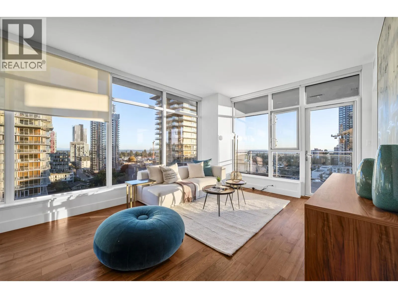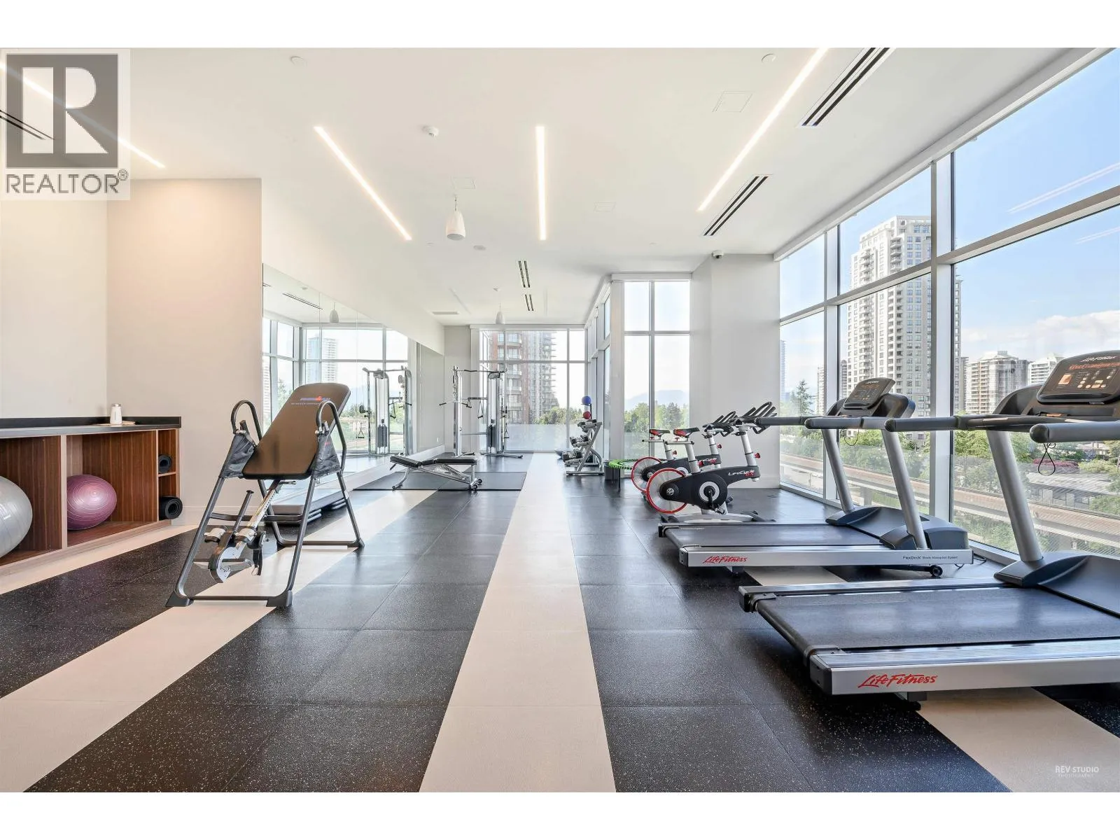 Modello by Boffo - a top-quality residence. This southwest corner unit offers great views and features 3 bedrooms, 2 bathrooms, 2 parking stalls, and 1 storage locker. The open layout includes 9-foot ceilings, 1,183 sq. ft. of living space, and a large 202 sq. ft. balcony. Built with premium Miele appliances, A/C, marble slab countertops, heated marble bathroom floors, and state-of-the-art geothermal heating. Conveniently located steps from the SkyTrain, Metrotown, Crystal Mall, the library, Central Park, and more. Lots of amenity on 5th floor. Open House , Saturday & Sunday 2-4 PM. (id:27476)