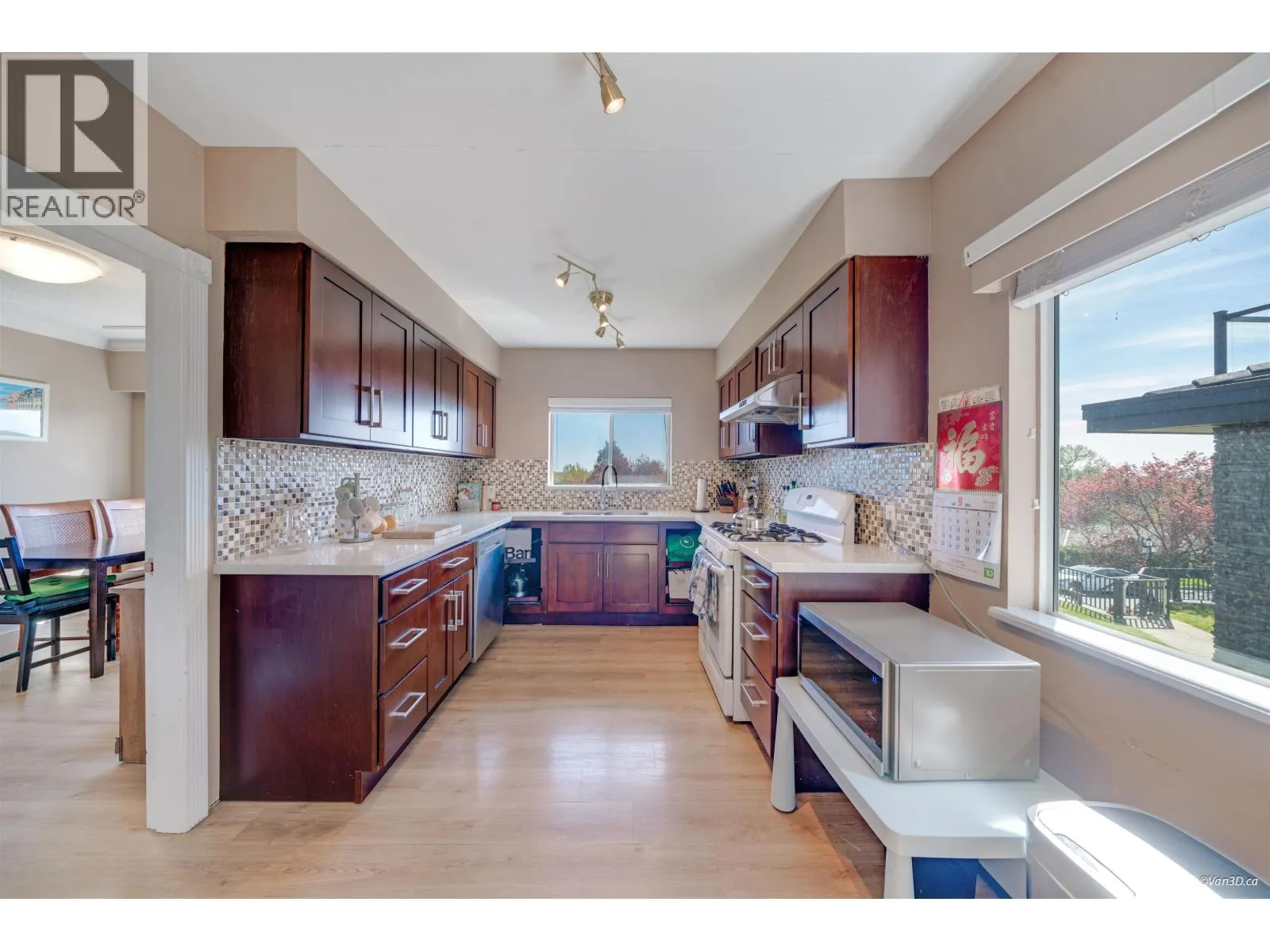 Burnaby - South Slope with View, Located on High Side of Quiet Street, off Marine Drive close to Nelson Ave. over 7300 sf rectangular lot( 55 x 133) and 2500sf of living area, feature 6 Bedrooms (3 Up and 3 Down) 3 full bathroom, with Mortgage Helper. Amazing South Facing View from Living Room of Alex Bridge and Richmond. Inside a Functional Layout with Generous Sized Rooms. brand new window frame thoughout, backyard has perfect Covered Patio Area for Entertaining and Terraced Garden Area. Quick Access To Everywhere. Close to Schools, Bus Route, Shopping, Parks and Recreation including Golf Course. Lots of Parking - Paved Lane in the Rear leads to a 2 car Detached Garage and 3 Open Parking Spaces, Easy Street Parking in the Front. (id:27476)