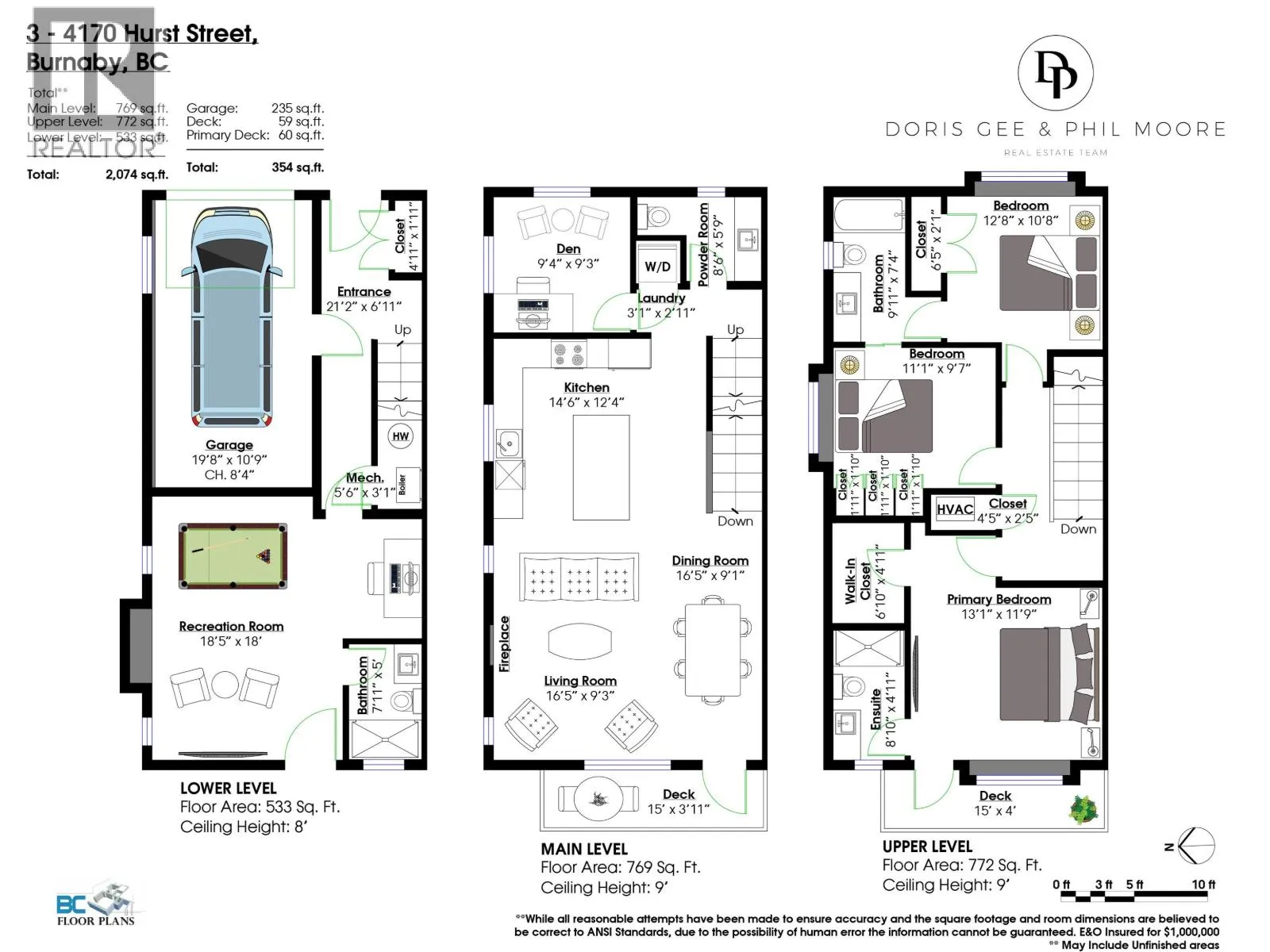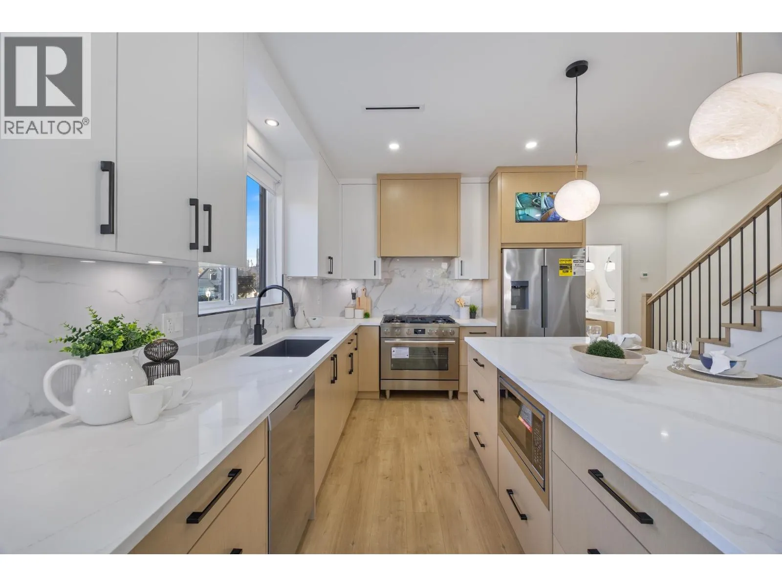 Open Saturday and Sunday 2-4pm November 15 & 16th Prime Metrotown location! This spacious 2,074 sq. ft. 3 Level home offers a bright, open-concept floor plan designed for modern living. The main level features a den-perfect for a home office or study-and a gourmet kitchen with gas range and ample storage for the home chef. The inviting living area includes a gas fireplace and quality finishes throughout. Upstairs boasts 3 generous bedrooms, each with access to a bathroom, providing comfort and convenience for the whole family. The lower level includes a large recreation room with a full bathroom - ideal for guests, media, or a home gym. Enjoy year-round comfort with air conditioning, HRV, and hot water radiant heating. Attached garage and fenced. Minutes to Metrotown Shopping and Central Park, Close to Transit and Skytrain. Unit 2,4 also available. (id:27476)