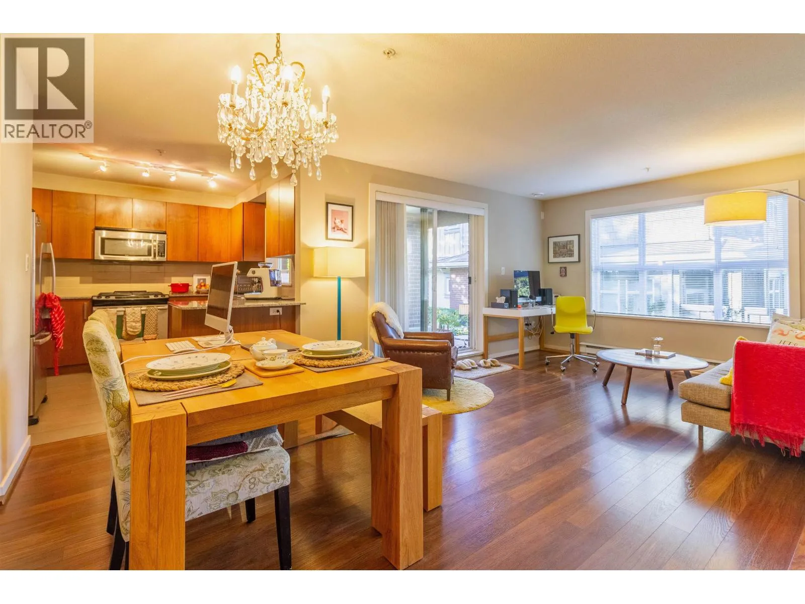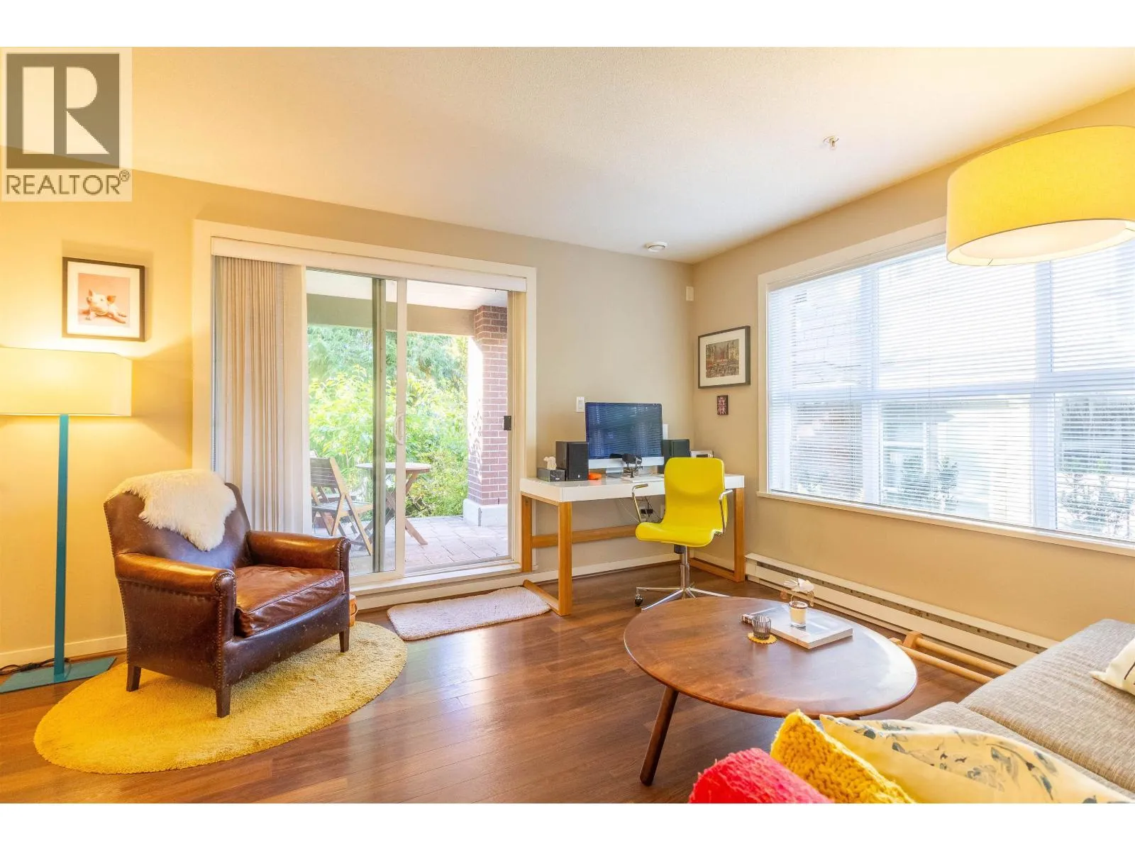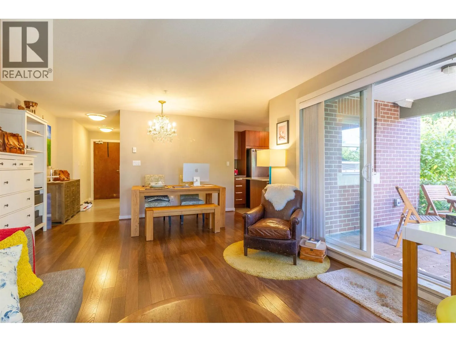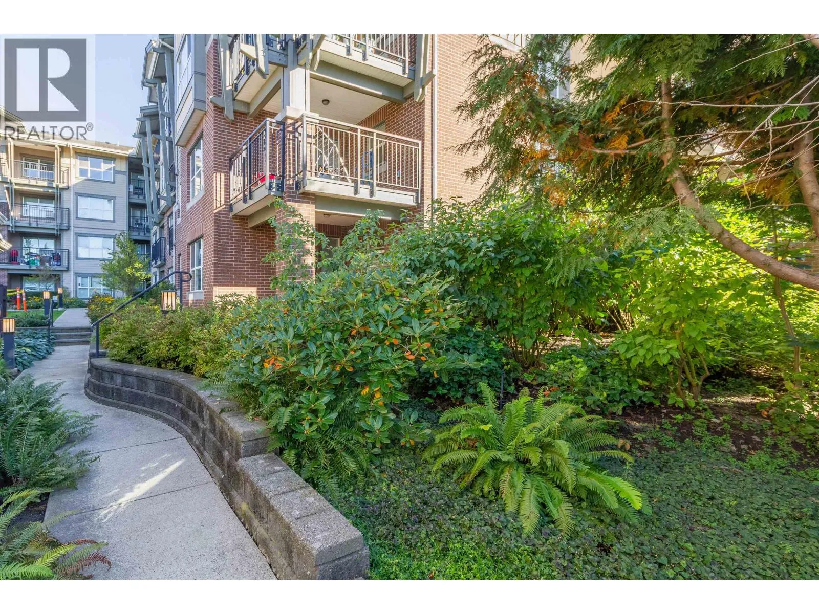 Welcome to Macpherson Walk East - one of Burnaby's most sought-after communities! This rarely available ground-level corner 2 bed 2 bath home offers a perfect blend of comfort, privacy, and tranquility. Featuring nearly 100sf of patio space, surrounded by lush greenery and mature trees, it's an ideal spot for morning coffee or weekend relaxation. You'll find a well-designed open layout with separated bedrooms for privacy, spacious primary suite with dual sinks, a soaker tub, and a shower stall. This home enjoys natural light from multiple exposures and sits on the quiet side away from the Skytrain. Complex is pet-friendly, a beautifully maintained development with landscaped grounds, walk paths and community feel. Conveniently located near Metrotown, Royal Oak Skytrain, schools and parks. (id:27476)