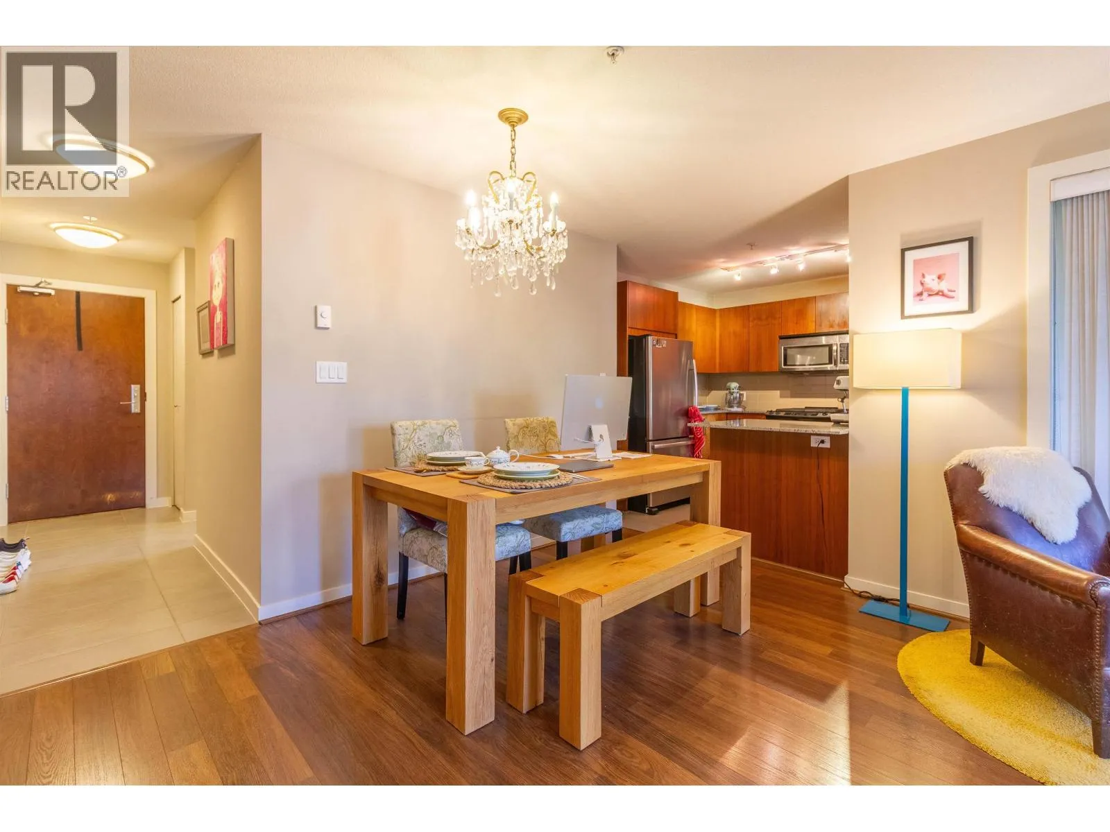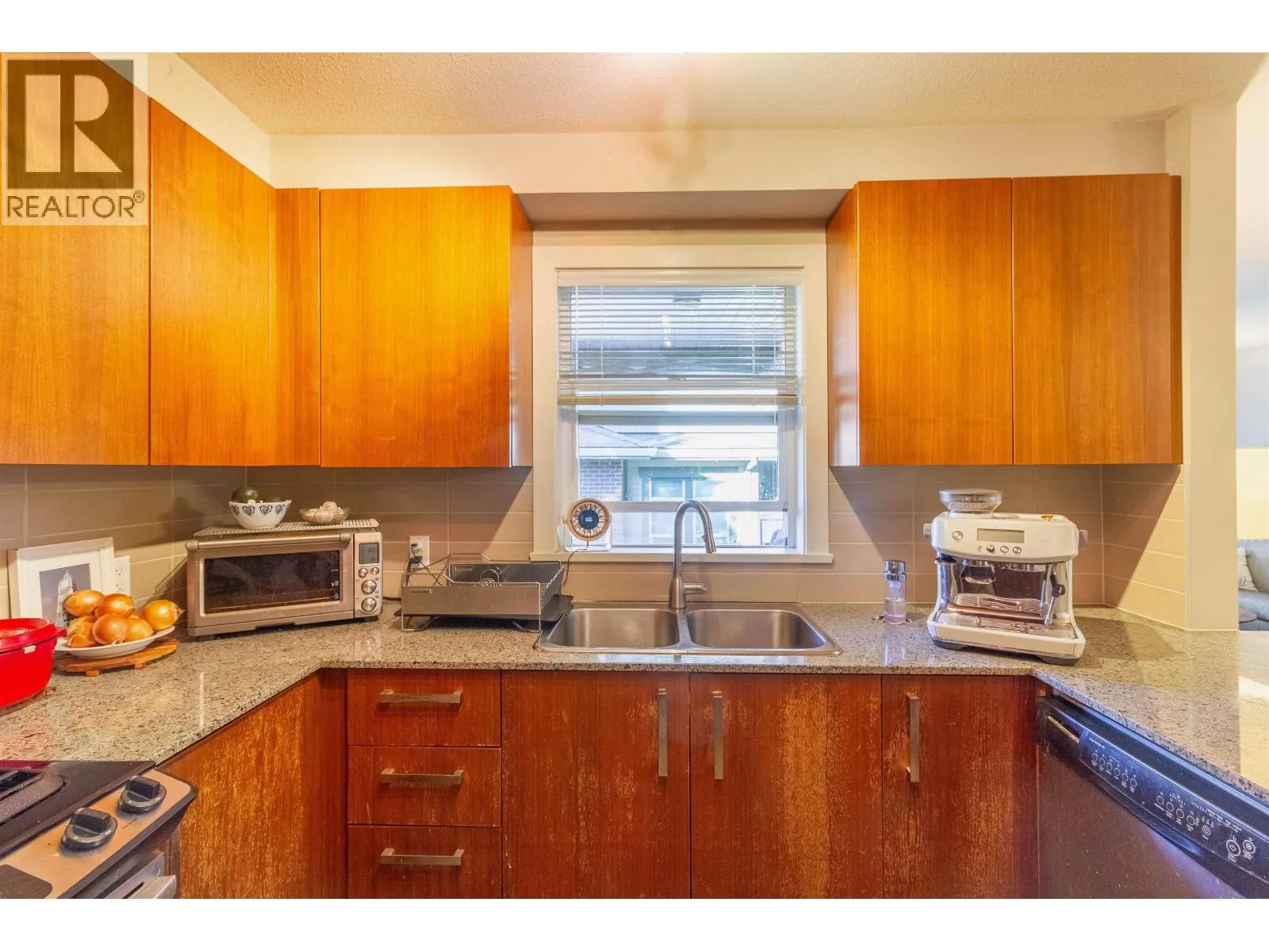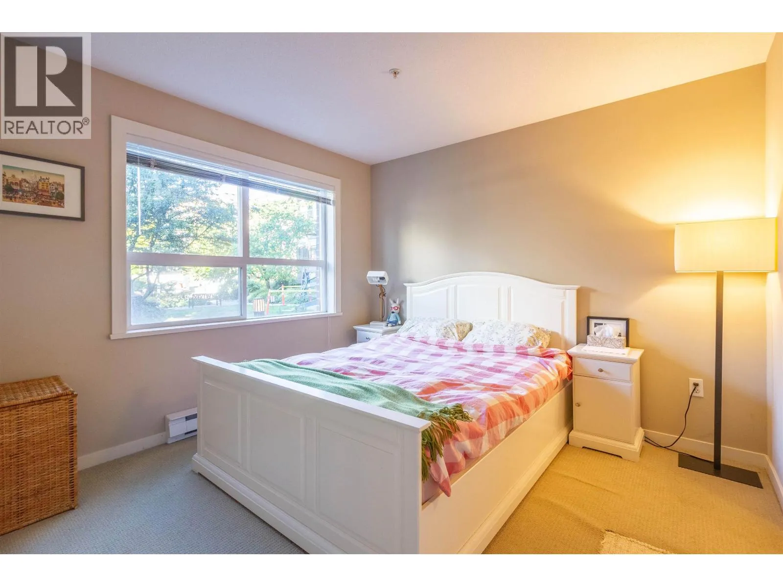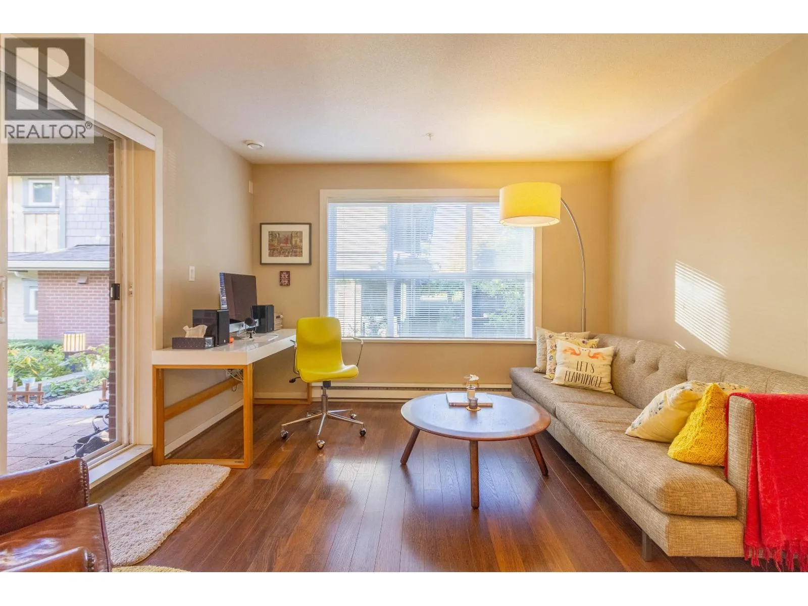 Welcome to Macpherson Walk East - one of Burnaby's most sought-after communities! This rarely available ground-level corner 2 bed 2 bath home offers a perfect blend of comfort, privacy, and tranquility. Featuring nearly 100sf of patio space, surrounded by lush greenery and mature trees, it's an ideal spot for morning coffee or weekend relaxation. You'll find a well-designed open layout with separated bedrooms for privacy, spacious primary suite with dual sinks, a soaker tub, and a shower stall. This home enjoys natural light from multiple exposures and sits on the quiet side away from the Skytrain. Complex is pet-friendly, a beautifully maintained development with landscaped grounds, walk paths and community feel. Conveniently located near Metrotown, Royal Oak Skytrain, schools and parks. (id:27476)