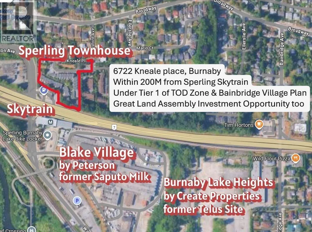 Rarely perfect living & investment dream home! Extensively Renovated previously. Luxurious, spacious & bright 3 levels, 4 beds + 4 baths + Rec room + fantastic private fenced backyard, excellently-maintained complex with low strata fee of $391, top schools (Sperling elementary with French immersion), ideal for families to upsize. Unbeatable location, steps to Sperling Skytrain, Buses, Burnaby Lake, amenities & Sports centers, close to SFU, Brentwood & Lougheed malls. More importantly, this home is within 200M from Sperling Skytrain, Tier 1 of the Transit-Oriented Development (TOD) zone and Bainbridge village plan, a great land assembly investment opportunity. Live in now and wait for wind-up to earn a fortune to accumulate your family wealth. Make it yours! (id:27476)