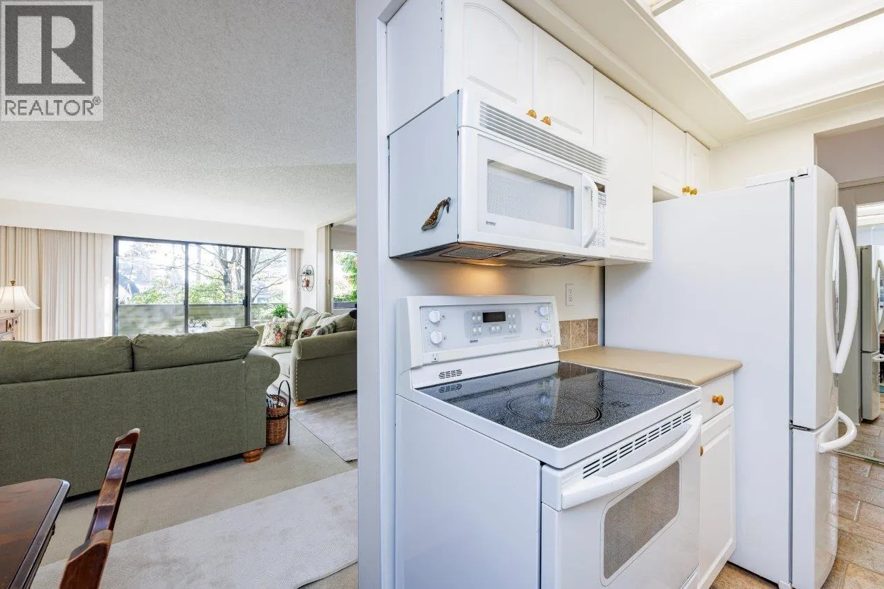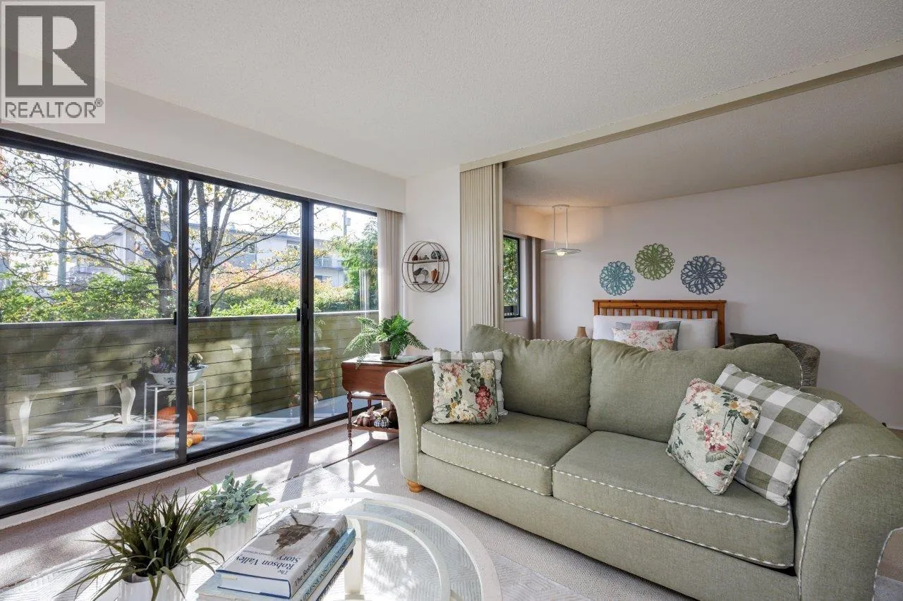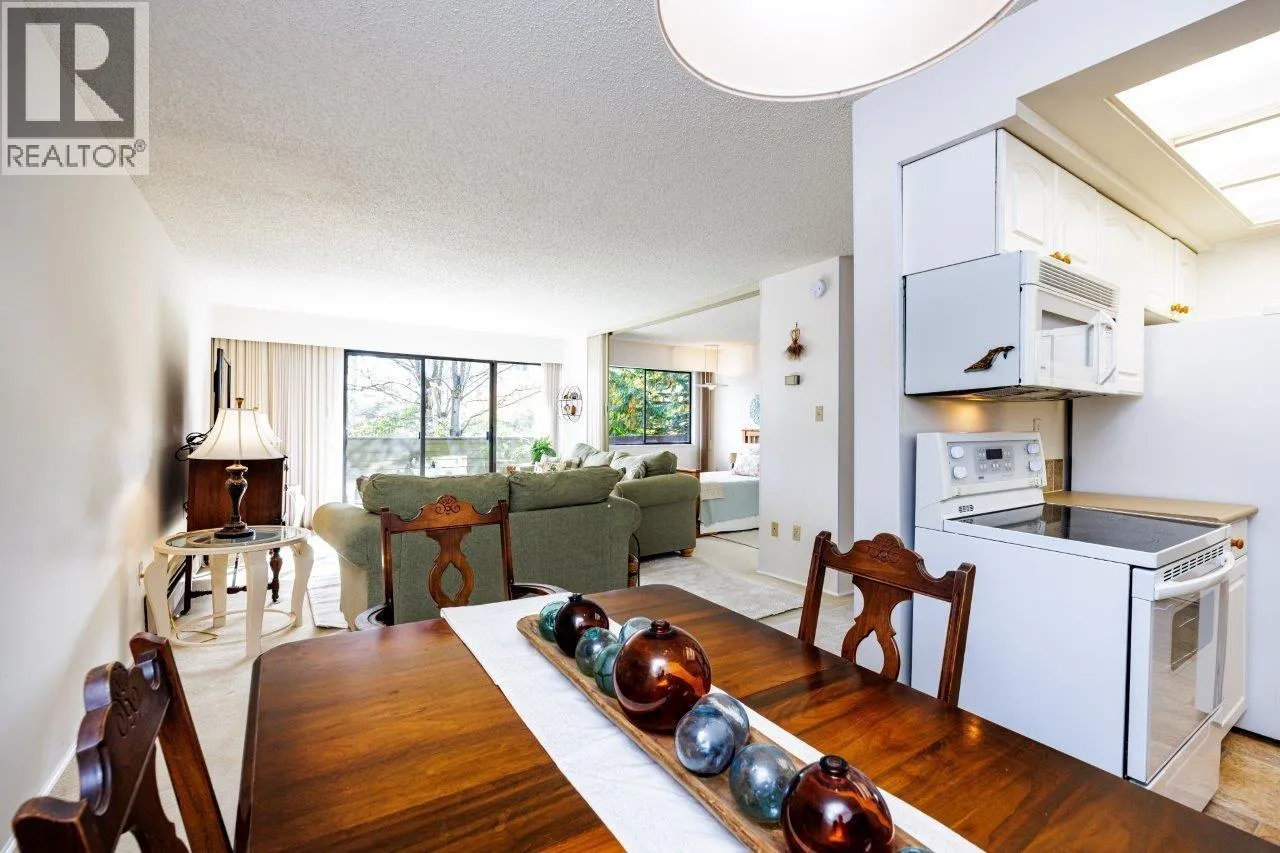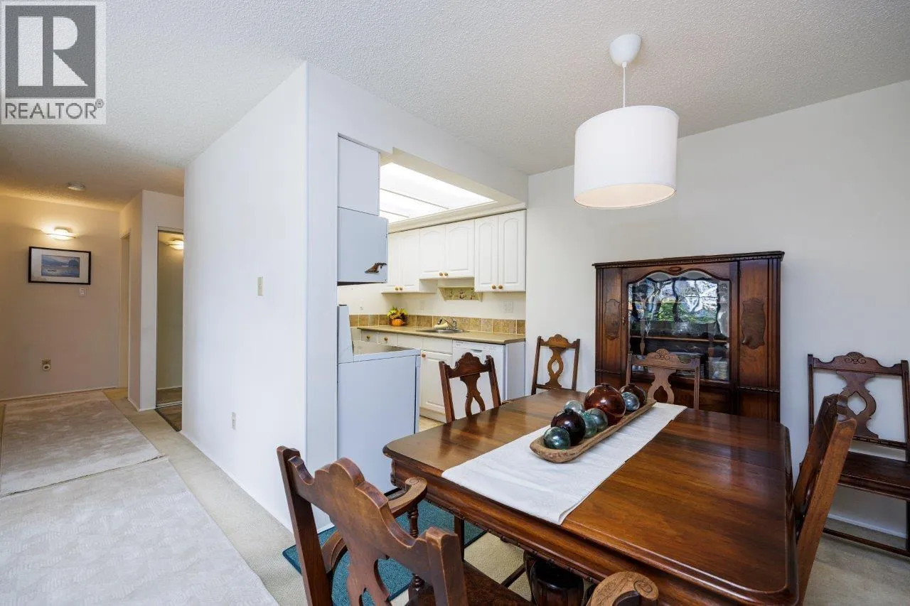 Welcome to FIR CREST! This is an excellent opportunity for first-time buyers, investors, or those looking to occupy a property with significant future development potential. The suite offers over 900 sq. ft. of well-maintained living space, featuring two bedrooms, one bathroom, and a living room that boasts a serene outlook with a sliding door leading to a spacious private patio. The dining area connects seamlessly to the kitchen, while the primary bedroom includes his and her closets and a convenient cheater door to the bathroom. Located within walking distance to Metrotown Mall, SkyTrain, Central Park, restaurants, and theaters, this property also includes one parking space and a storage locker. Rentals are permitted, though pets are not allowed. (id:27476)
