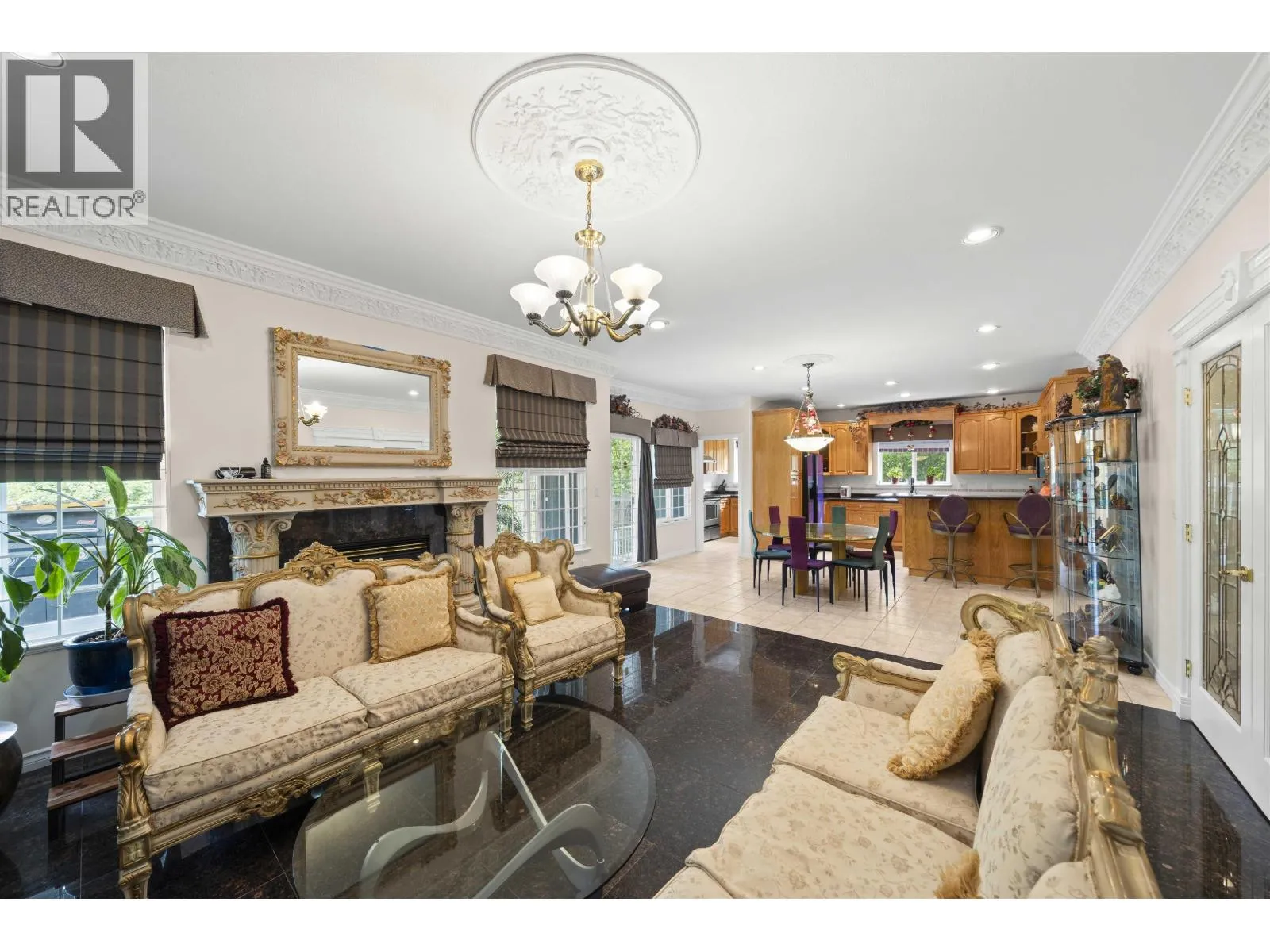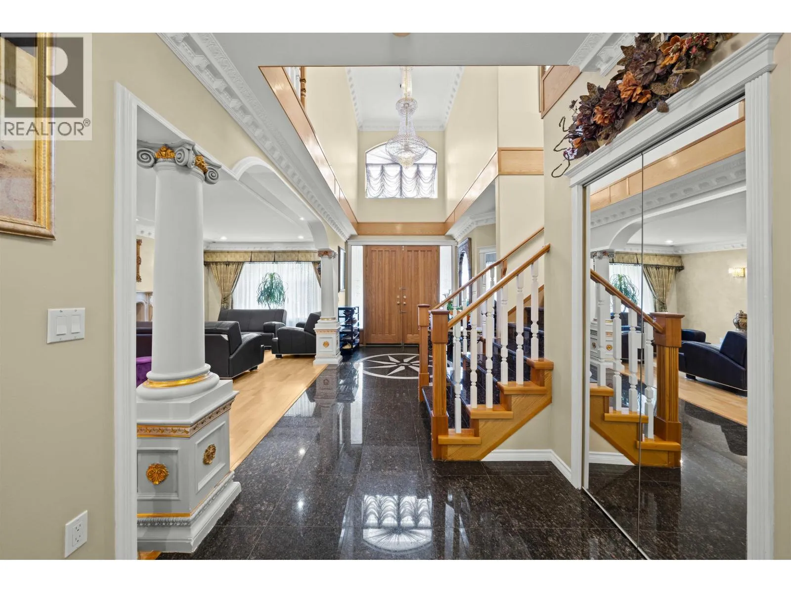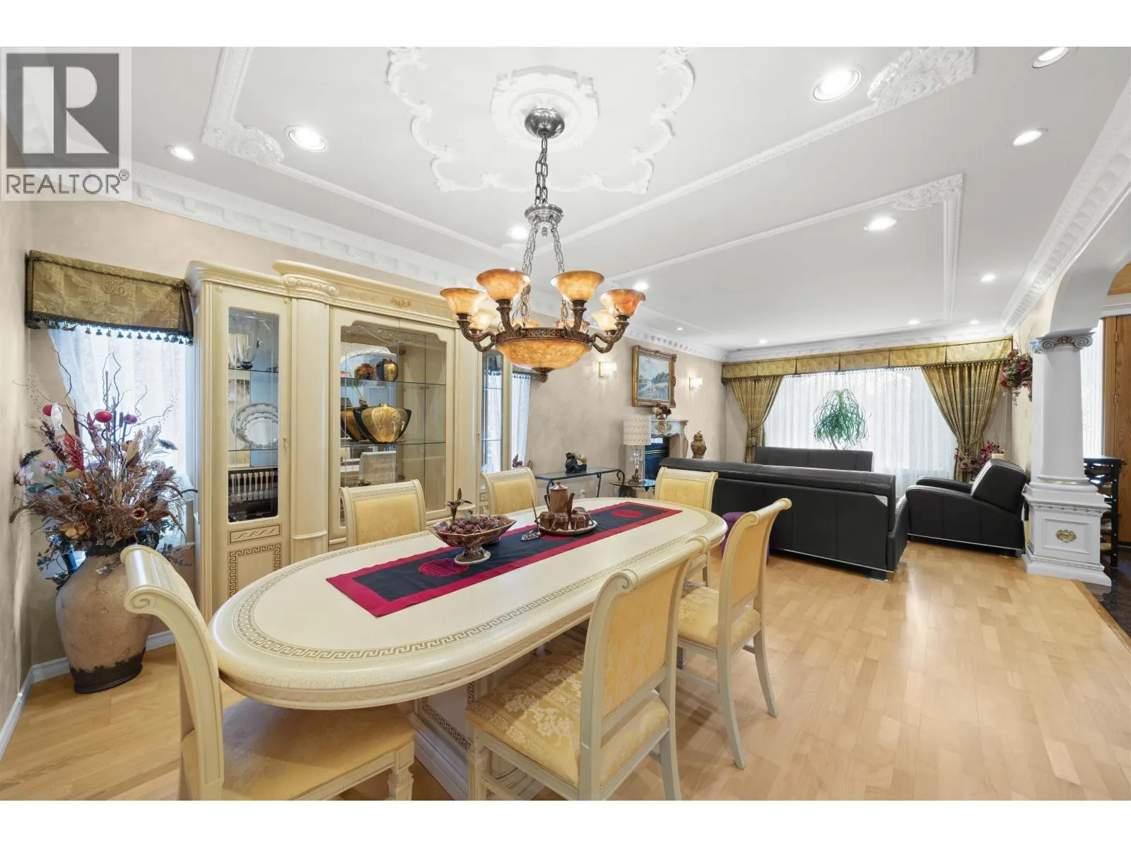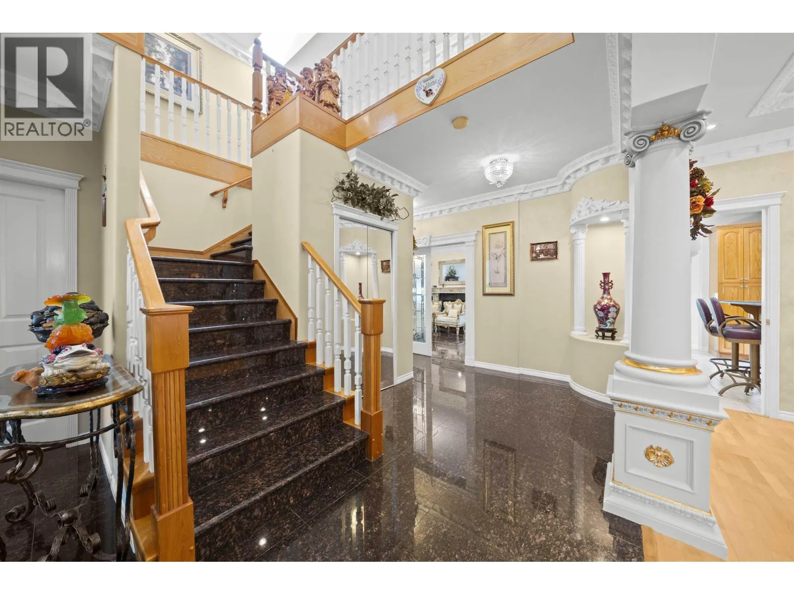 Elegant 5,750 sqft European-inspired home on a gated 9,600 sqft lot in Burnaby´s prestigious Government Road area. Features 8 bedrooms, 6.5 bathrooms, detailed ceilings, crown moldings, and refined architectural accents. The main floor includes a chef´s kitchen with granite counters, a Wok kitchen, and formal living/dining areas. The fully finished basement offers a separate-entry suite with its own kitchen-ideal for in-laws or rental income. High-end finishes include granite flooring and engineered hardwood. Located near Seaforth Elementary, Brentwood, SFU, SkyTrain, parks, lakes, and golf. A rare opportunity in an exclusive neighbourhood. (id:27476)