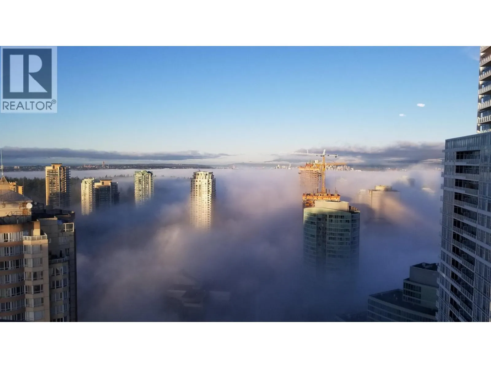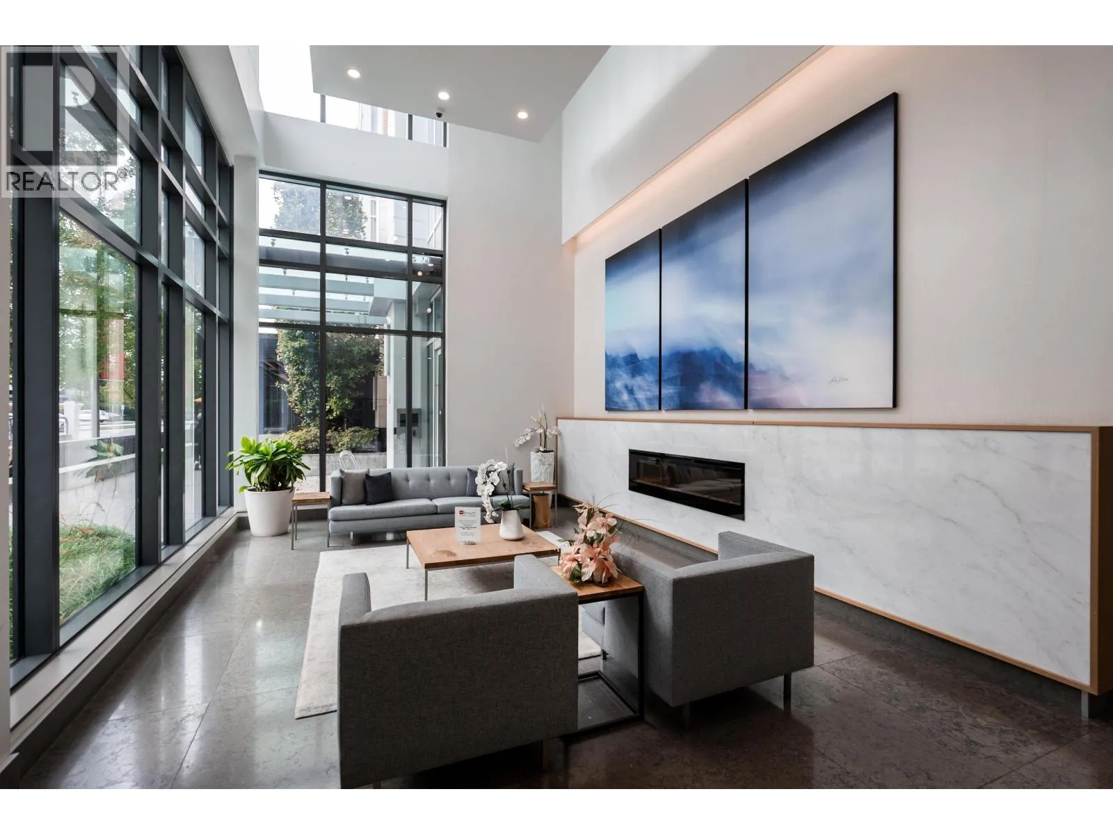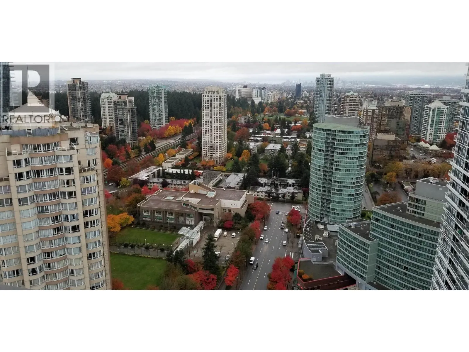 Welcome home to Station Square 3 @ Metrotown! High-floor 1bd + den w/stunning WEST VIEWS of the City, Mountains & Ocean. Open kitchen featuring quartz countertops, marble backsplash, gas cooktop & integrated appliances. Spacious den ideal for office or storage. Large covered balcony perfect for Sunsets & Fireworks. 9-ft ceilings, powered blinds, wide-plank floors & in-suite laundry. 1 EV PARKING & 1 locker. Building offers 24-hr concierge, fitness centre, yoga studio, guest suite, media room, rooftop gardens & BBQ lounge. Steps to Metrotown, Crystal Mall, SkyTrain, restaurants, cafés & Central Park. Call for a private showing or to confirm the Open House Sat/Sun Nov 15th & 16th - 2-4PM (id:27476)