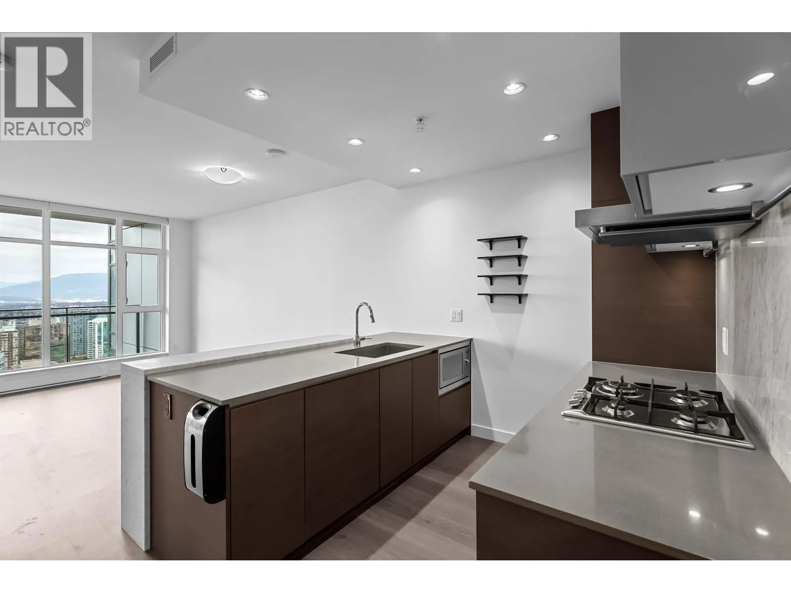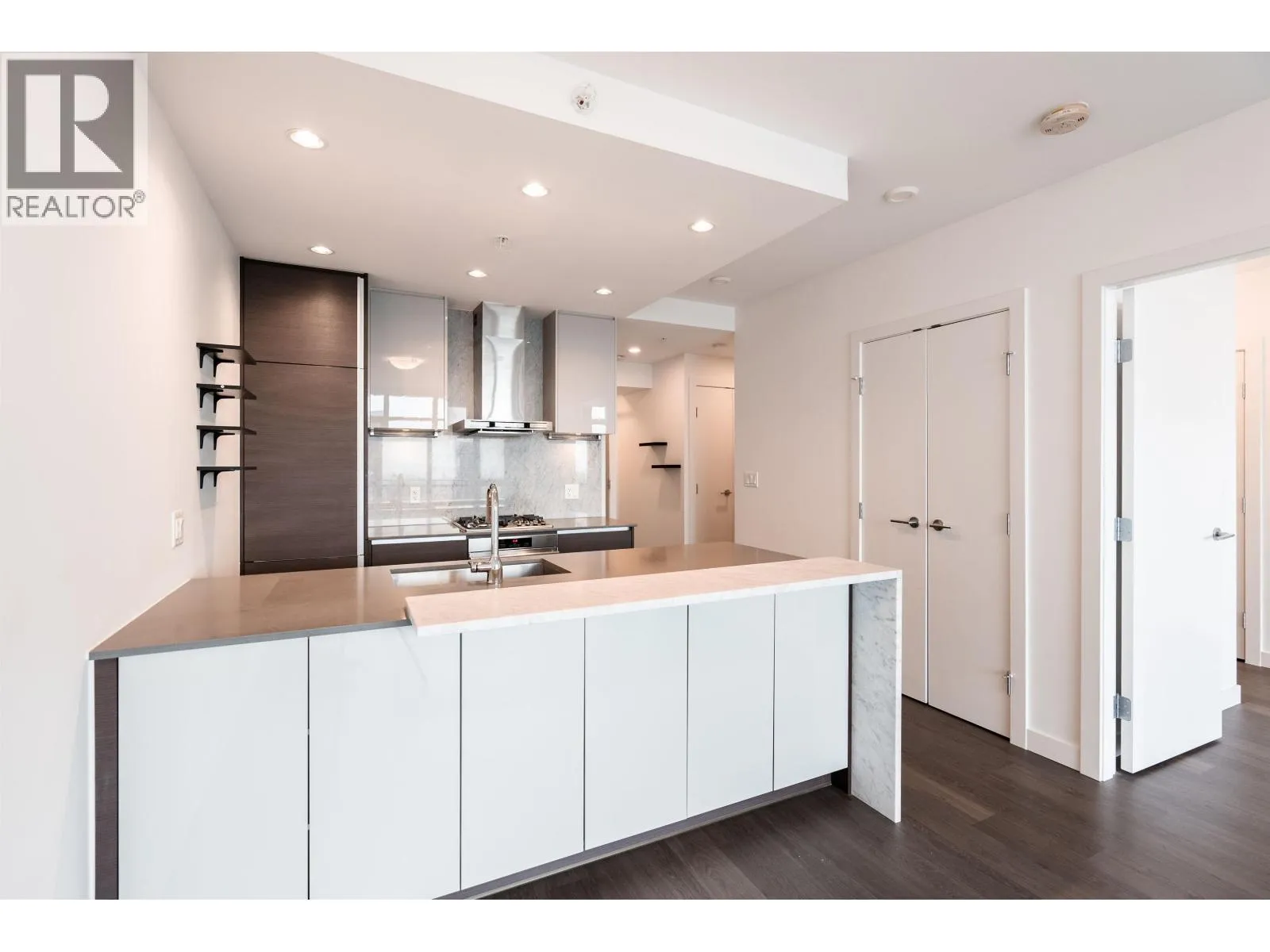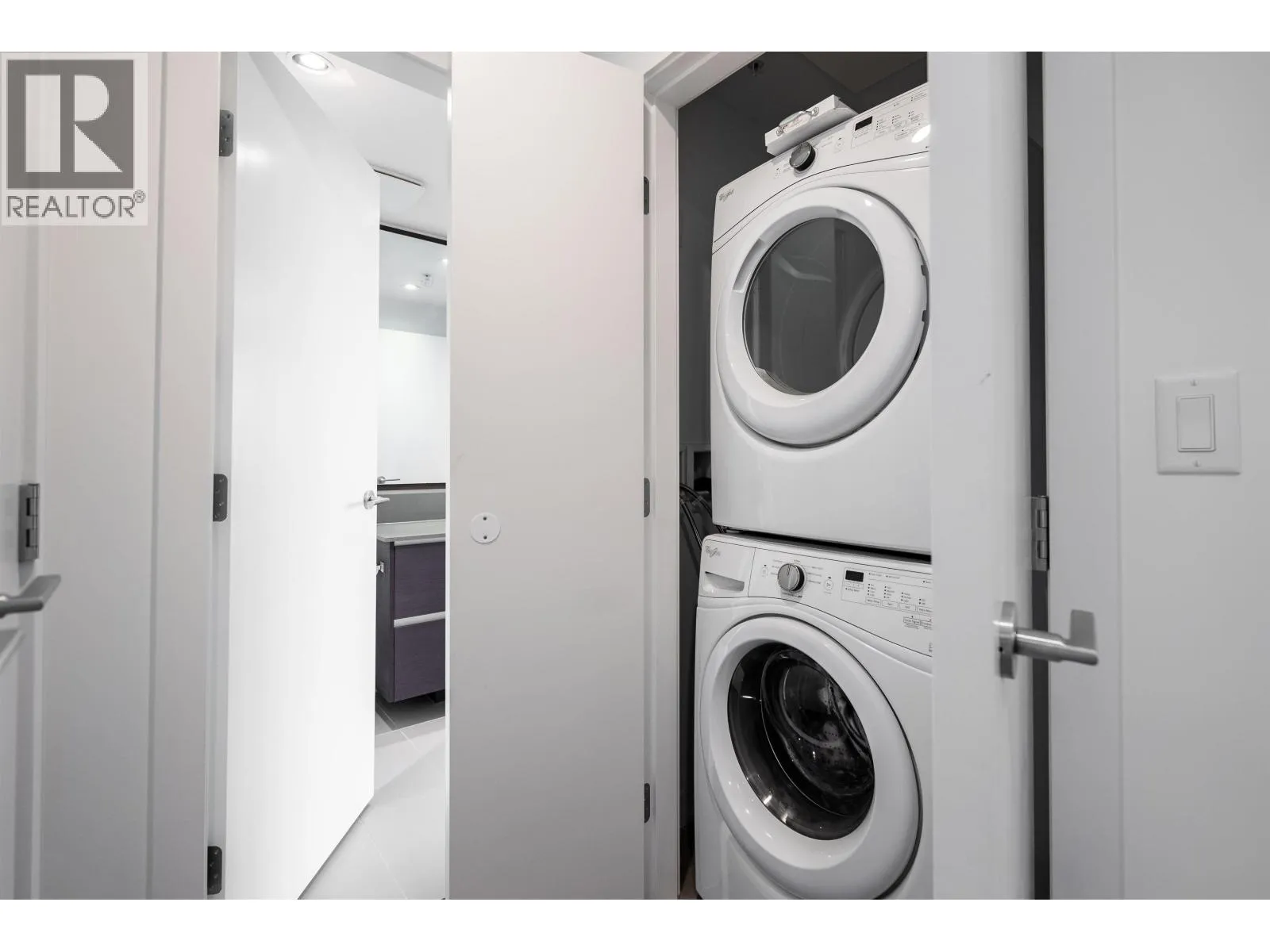 Welcome home to Station Square 3 @ Metrotown! High-floor 1bd + den w/stunning WEST VIEWS of the City, Mountains & Ocean. Open kitchen featuring quartz countertops, marble backsplash, gas cooktop & integrated appliances. Spacious den ideal for office or storage. Large covered balcony perfect for Sunsets & Fireworks. 9-ft ceilings, powered blinds, wide-plank floors & in-suite laundry. 1 EV PARKING & 1 locker. Building offers 24-hr concierge, fitness centre, yoga studio, guest suite, media room, rooftop gardens & BBQ lounge. Steps to Metrotown, Crystal Mall, SkyTrain, restaurants, cafés & Central Park. Call for a private showing or to confirm the Open House Sat/Sun Nov 15th & 16th - 2-4PM (id:27476)