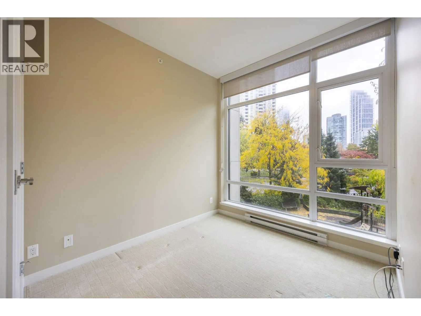 Welcome to Jewel 2 - one of Metrotown´s most luxurious and sought-after residences with 24-hour concierge service. This expansive southeast-facing 3-bedroom, 2-bath home features floor-to-ceiling windows that fill the space with natural light. Situated on 2nd floor, it enjoys serene views of lush greenery throughout the community. Primary bedroom includes a generous walk-in closet and a spa-inspired ensuite with double sinks. A thoughtfully designed square layout with spacious living and dining areas offers both elegance and functionality. The gourmet kitchen is equipped with Bosch and Miele appliances, a wine fridge, marble and granite countertops. Conveniently located near Central Park, Patterson SkyTrain, Metrotown Shopping Mall etc. Comes with TWO side-by-side parkings and 1 Locker. (id:27476)