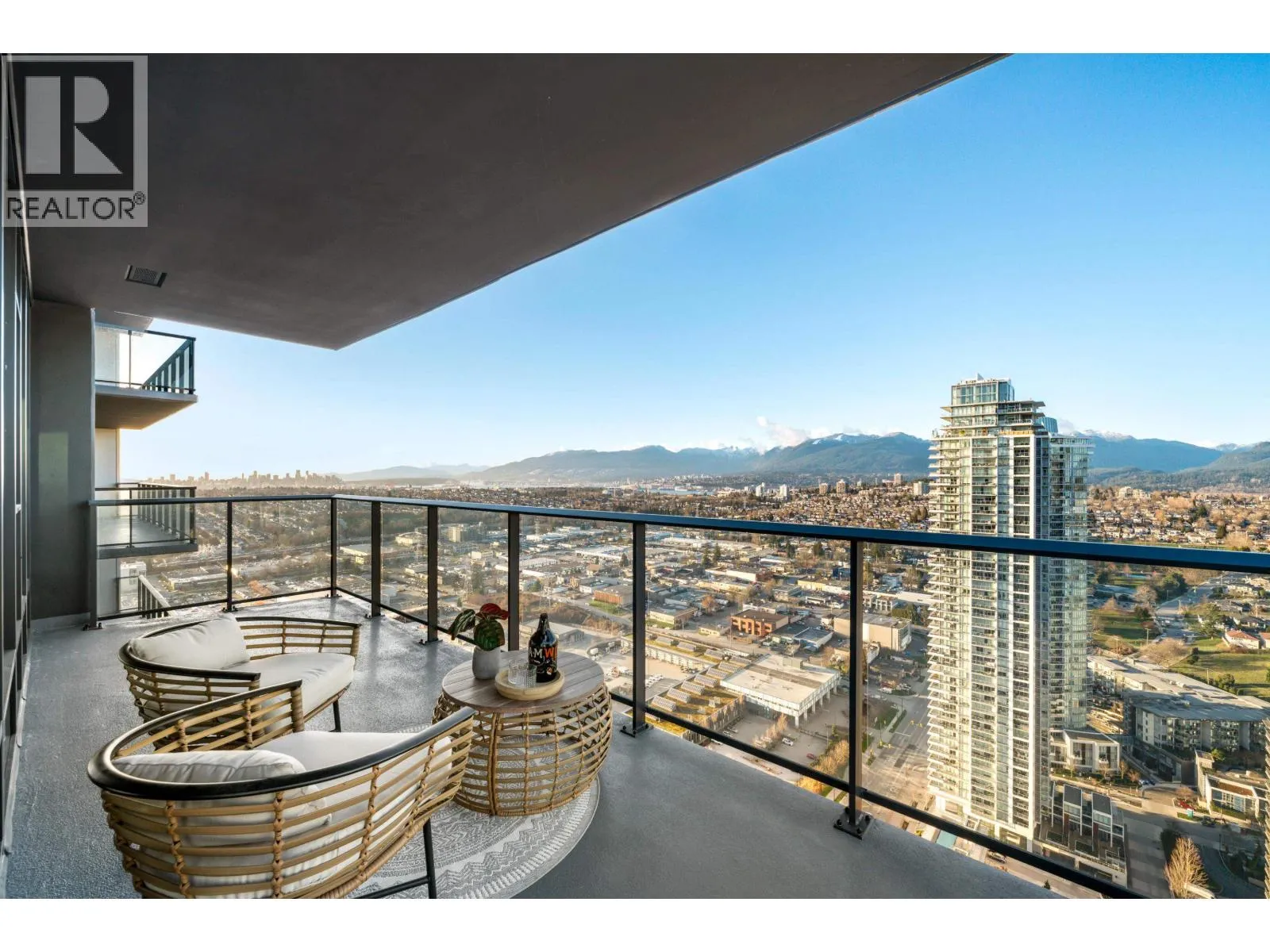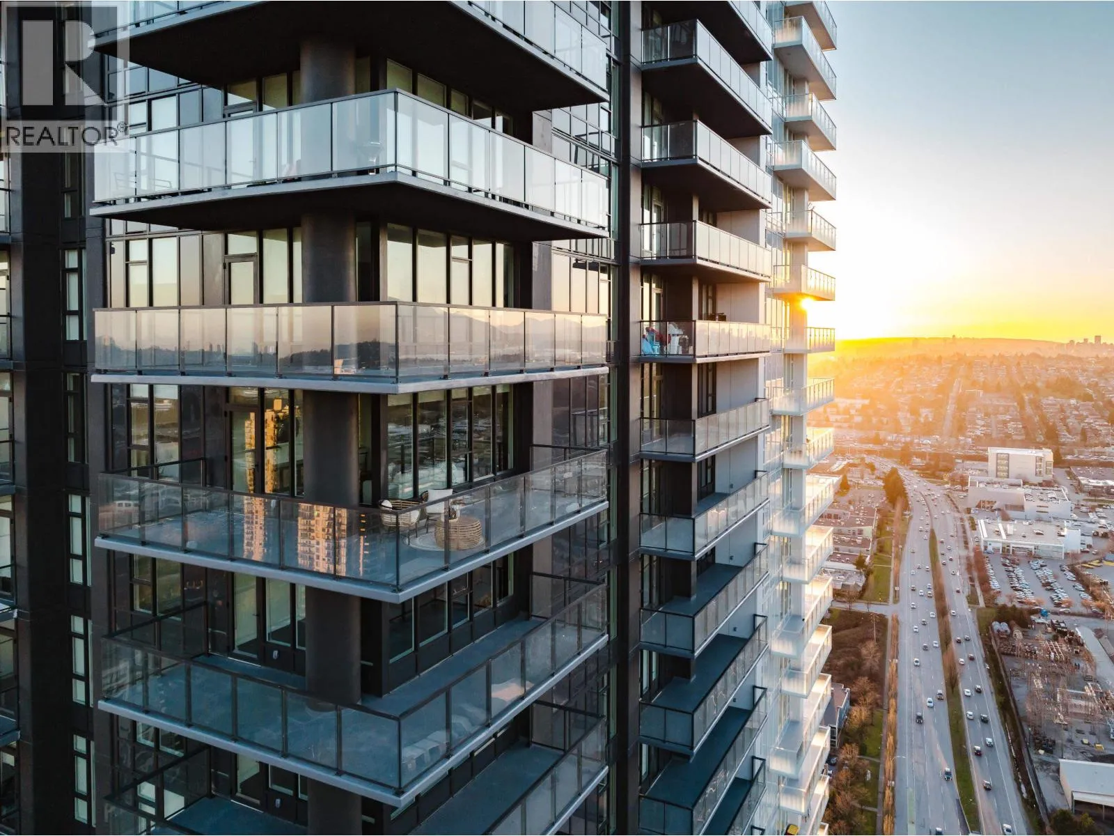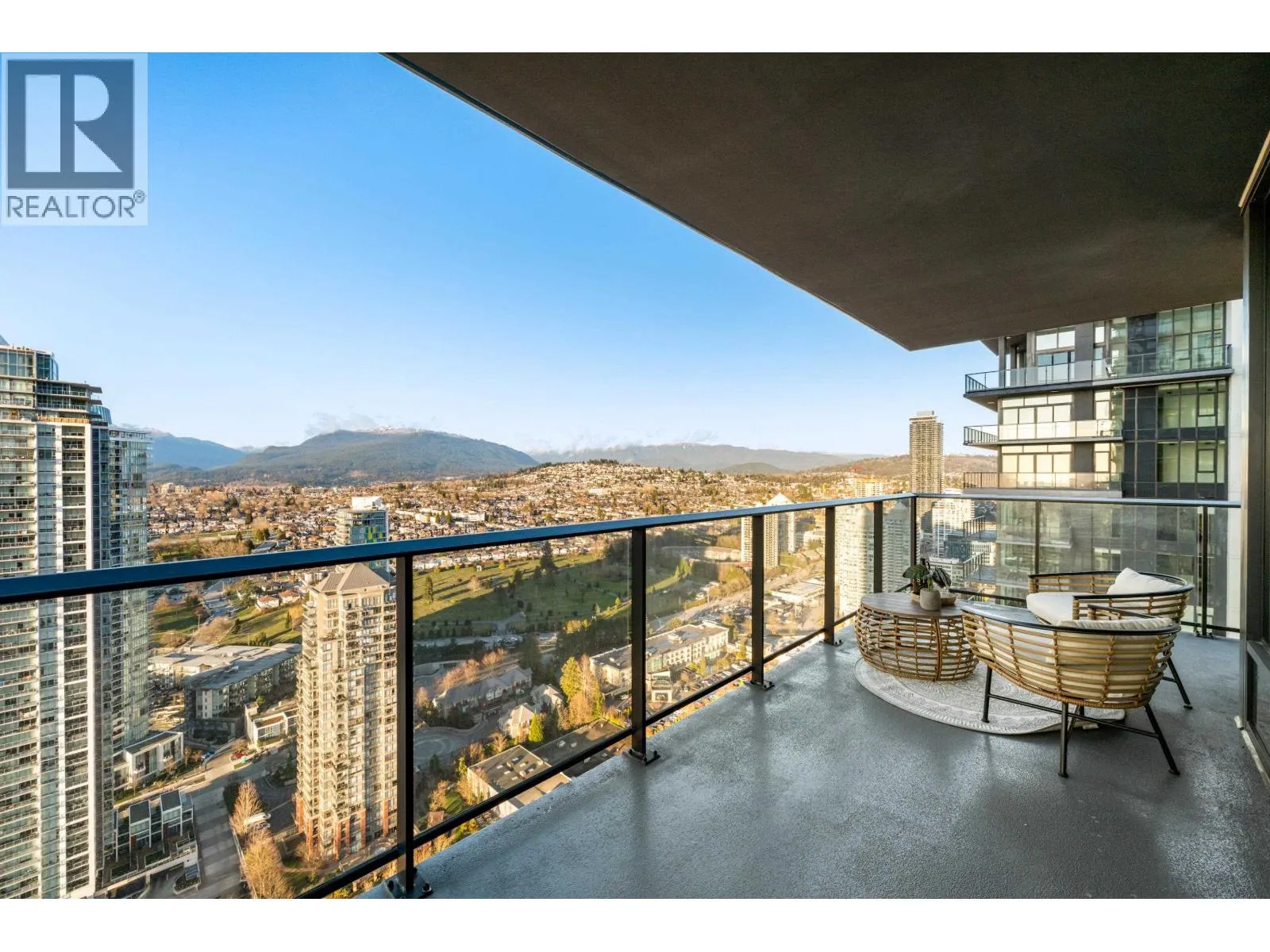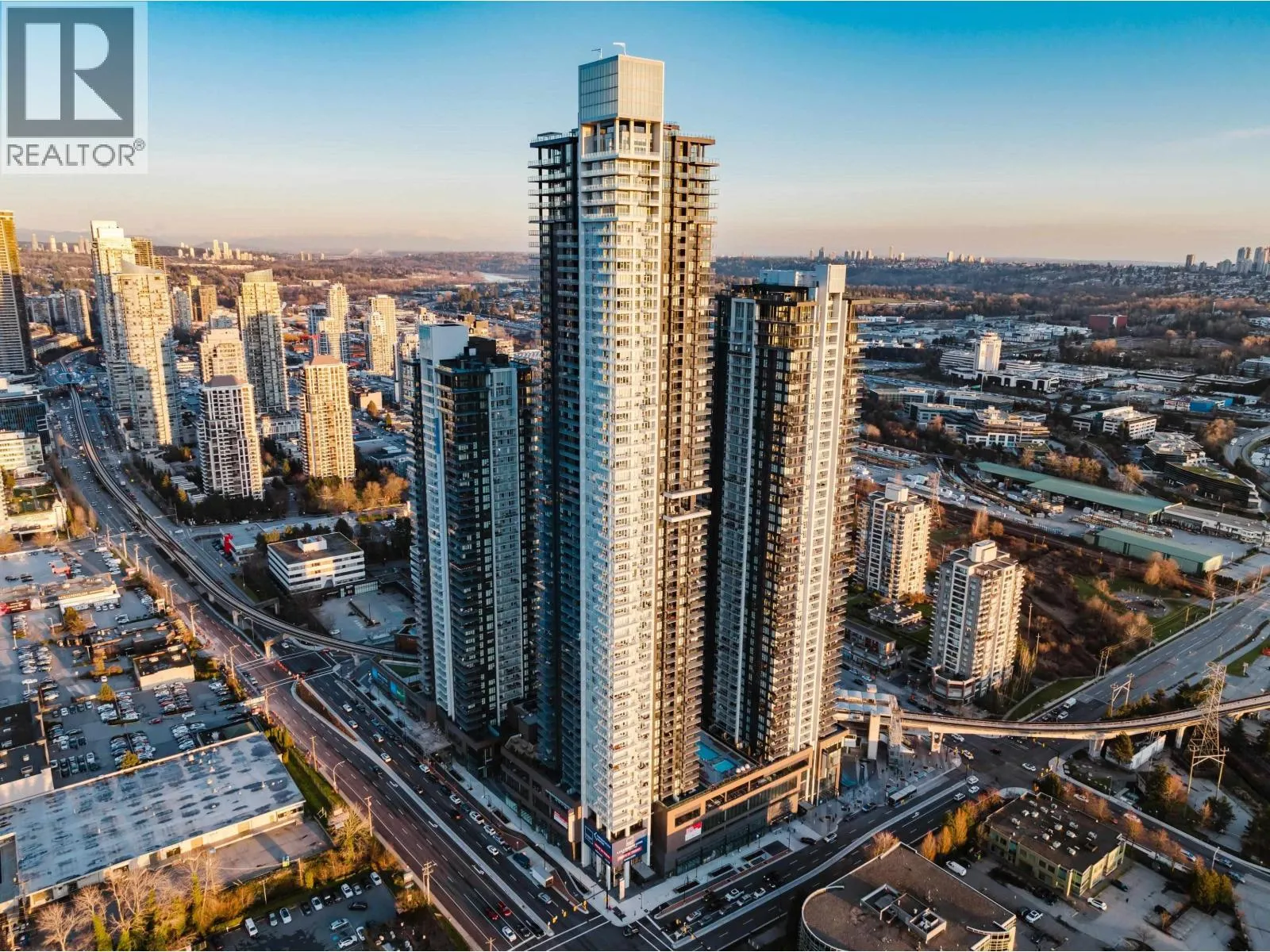 41st Floor living at Gilmore Place Tower 2 by Onni. This 1,067 SF CORNER UNIT offers 2 beds, 2 baths, and a DEN in the vibrant Brentwood area. Enjoy upgraded motorized blinds, A/C, gourmet kitchen with FULGOR appliances, a spacious island, and double Bloomberg fridge & freezers. The thoughtful layout provides privacy and stunning mountain and water views from a large covered 285 SF patio. Resort-style amenities include 24/7 concierge, indoor/outdoor pools, sauna, hot tub, 2 fitness centers, golf simulator, bowling alley, basketball court, numerous party rooms and guest suites, kids play areas & more. Adjacent to Gilmore SkyTrain, Brentwood Mall, future T&T, shops, and dining. Includes parking, storage, & a bike locker. Building has over 6 elevators.GST INCLUDED. Showings by private appointment. (id:27476)