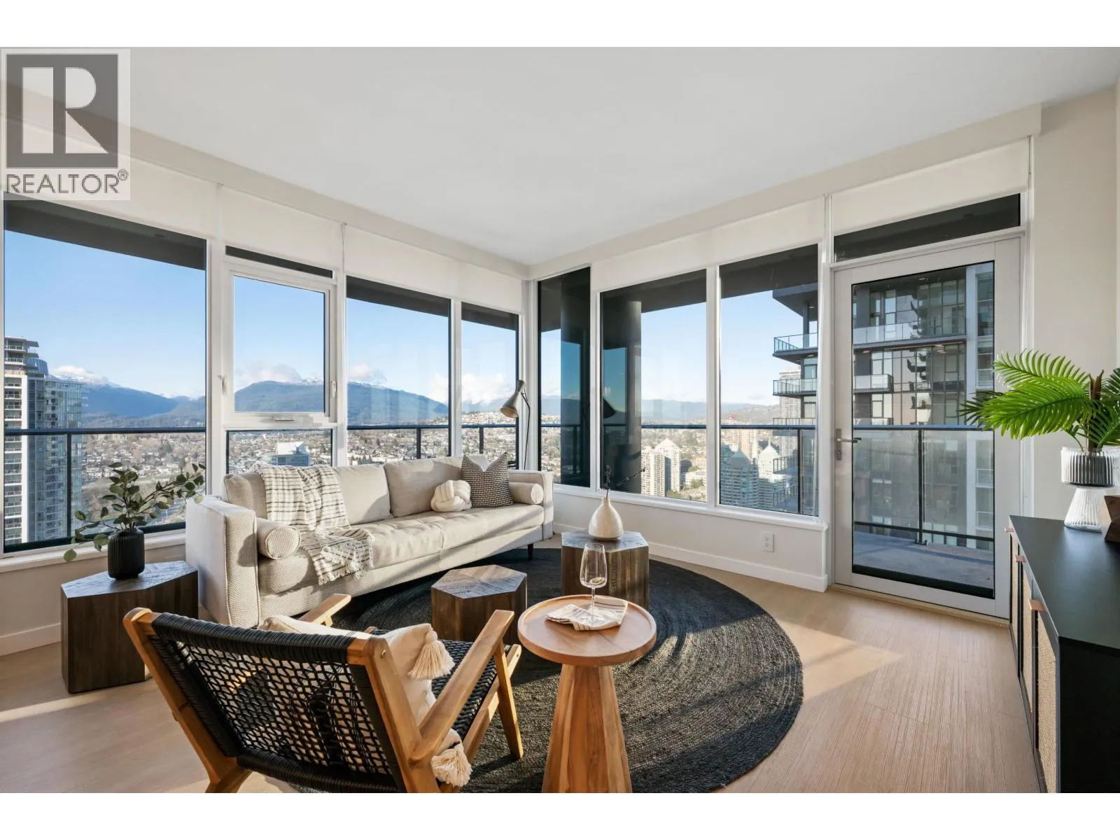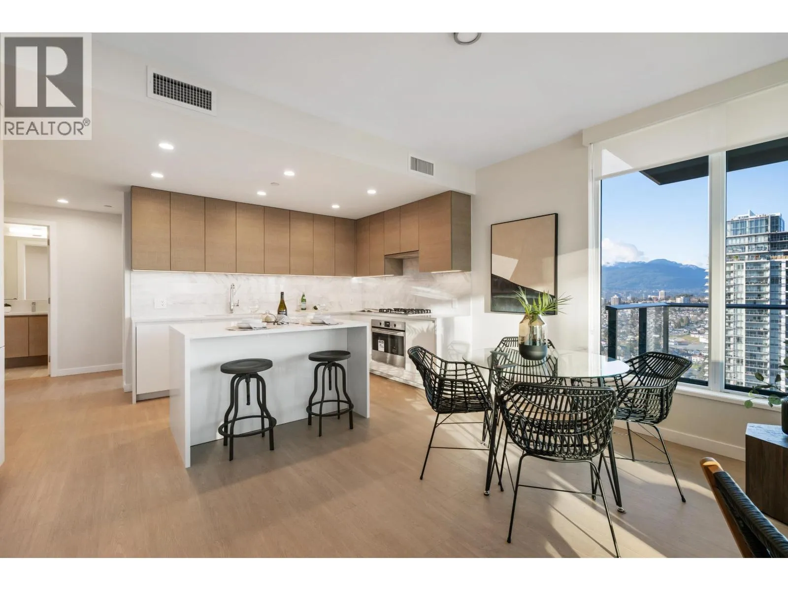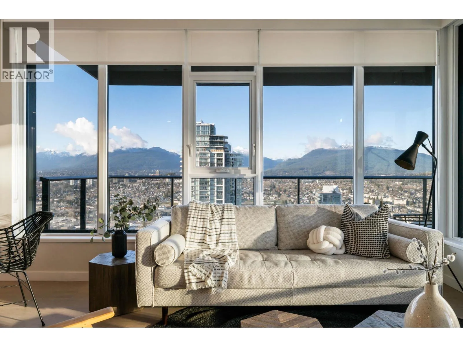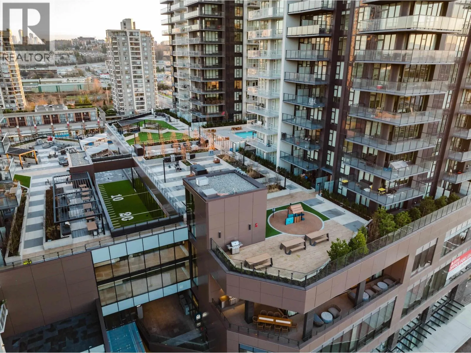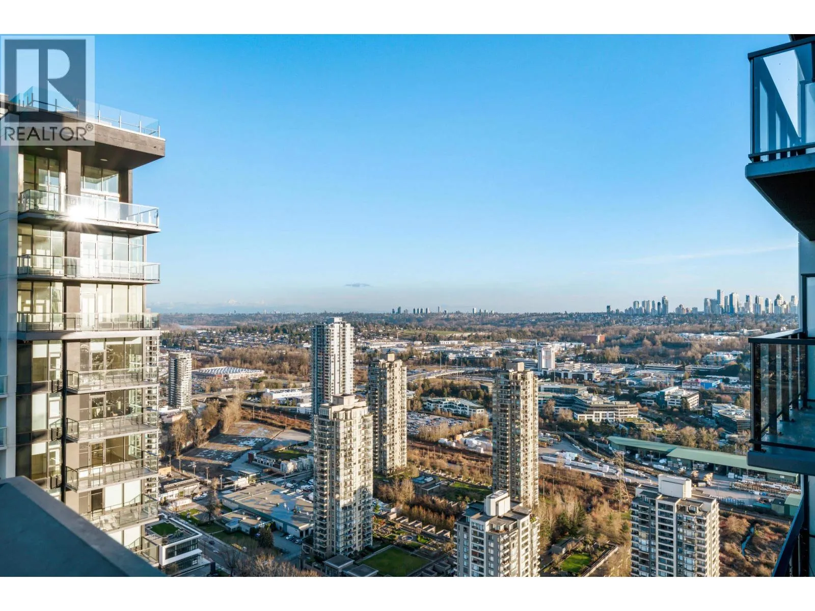 41st Floor living at Gilmore Place Tower 2 by Onni. This 1,067 SF CORNER UNIT offers 2 beds, 2 baths, and a DEN in the vibrant Brentwood area. Enjoy upgraded motorized blinds, A/C, gourmet kitchen with FULGOR appliances, a spacious island, and double Bloomberg fridge & freezers. The thoughtful layout provides privacy and stunning mountain and water views from a large covered 285 SF patio. Resort-style amenities include 24/7 concierge, indoor/outdoor pools, sauna, hot tub, 2 fitness centers, golf simulator, bowling alley, basketball court, numerous party rooms and guest suites, kids play areas & more. Adjacent to Gilmore SkyTrain, Brentwood Mall, future T&T, shops, and dining. Includes parking, storage, & a bike locker. Building has over 6 elevators.GST INCLUDED. Showings by private appointment. (id:27476)