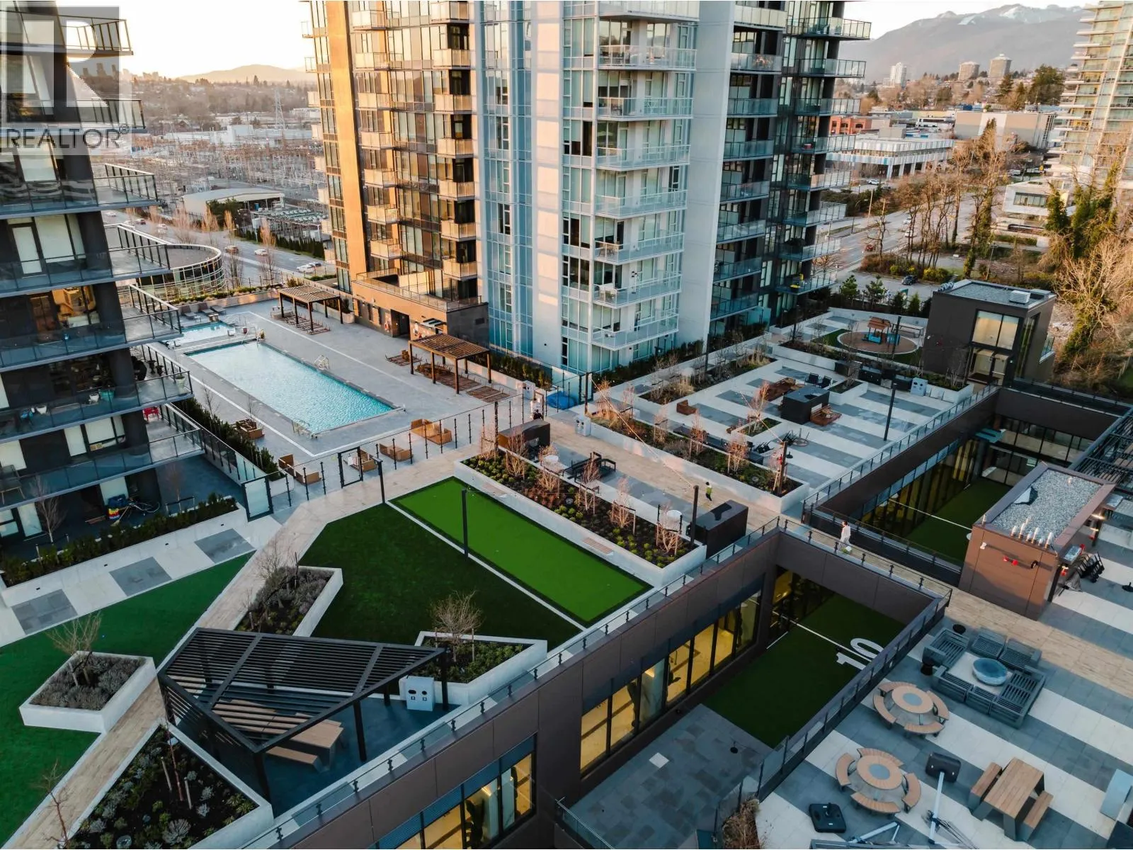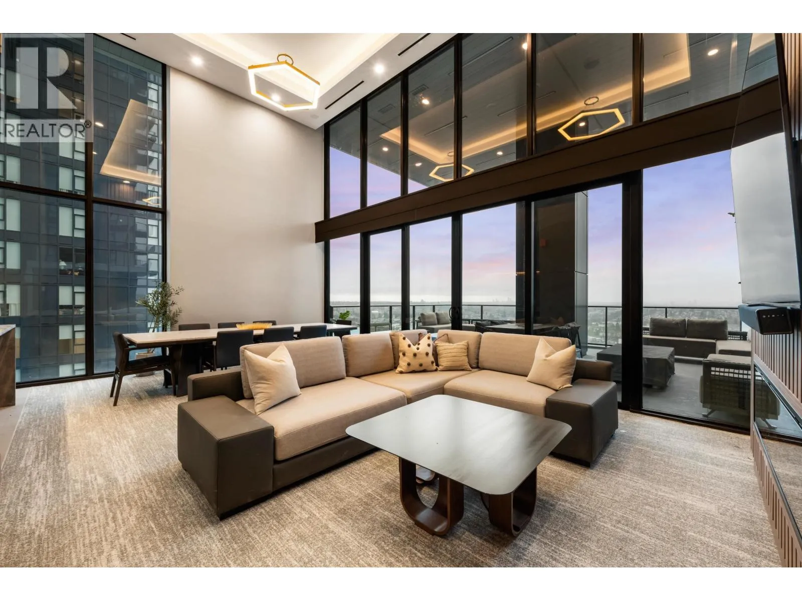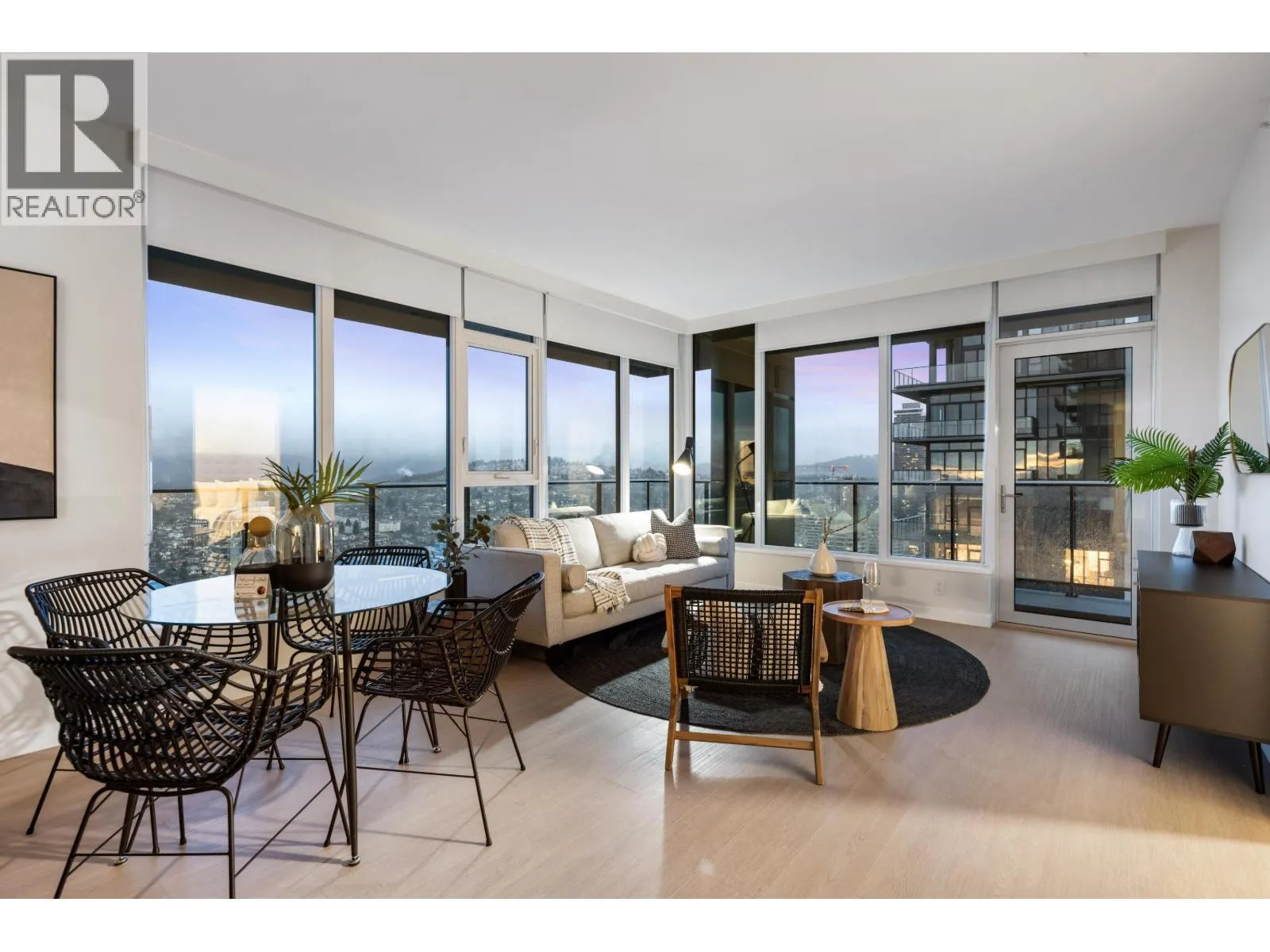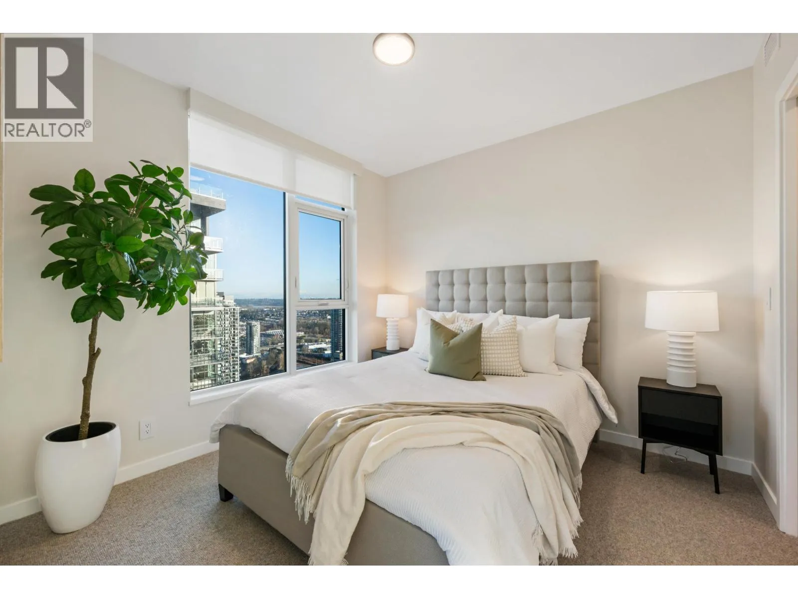 41st Floor living at Gilmore Place Tower 2 by Onni. This 1,067 SF CORNER UNIT offers 2 beds, 2 baths, and a DEN in the vibrant Brentwood area. Enjoy upgraded motorized blinds, A/C, gourmet kitchen with FULGOR appliances, a spacious island, and double Bloomberg fridge & freezers. The thoughtful layout provides privacy and stunning mountain and water views from a large covered 285 SF patio. Resort-style amenities include 24/7 concierge, indoor/outdoor pools, sauna, hot tub, 2 fitness centers, golf simulator, bowling alley, basketball court, numerous party rooms and guest suites, kids play areas & more. Adjacent to Gilmore SkyTrain, Brentwood Mall, future T&T, shops, and dining. Includes parking, storage, & a bike locker. Building has over 6 elevators.GST INCLUDED. Showings by private appointment. (id:27476)