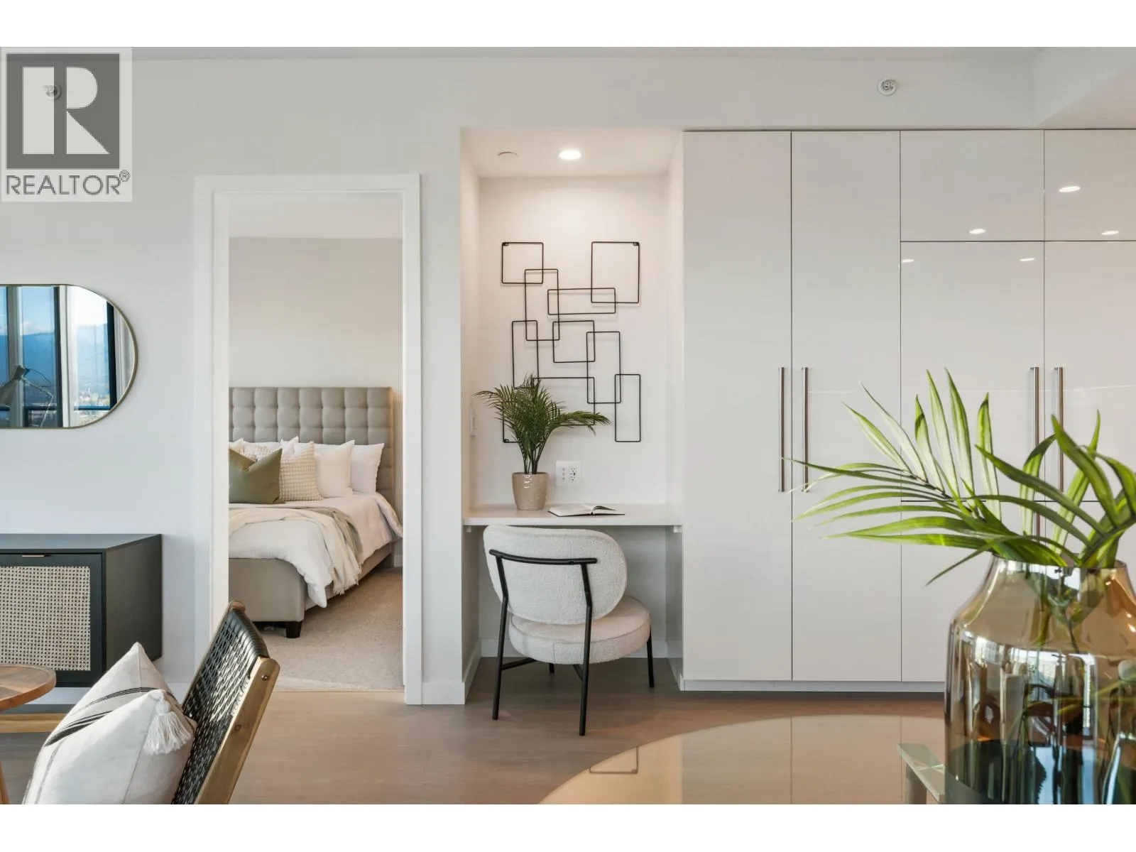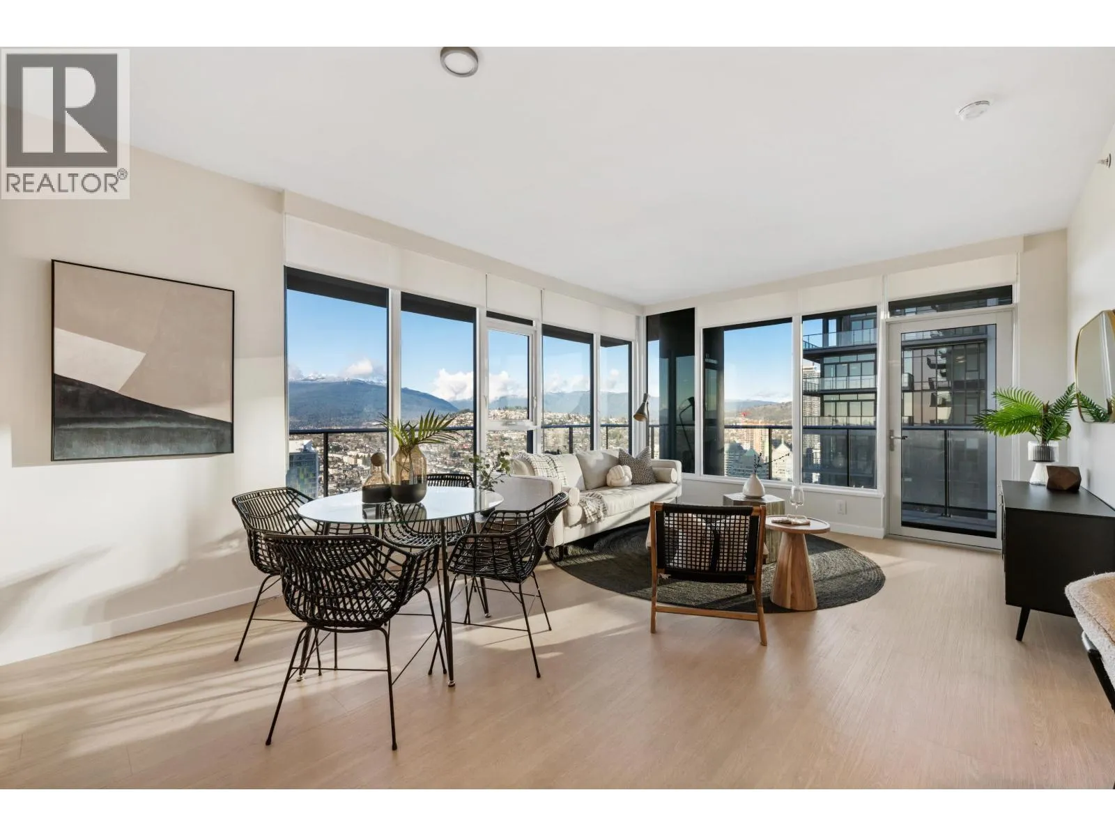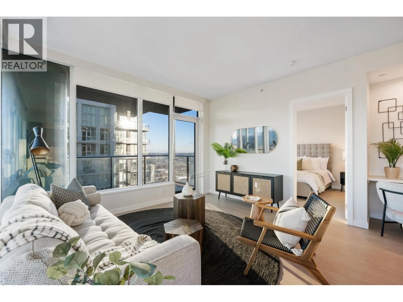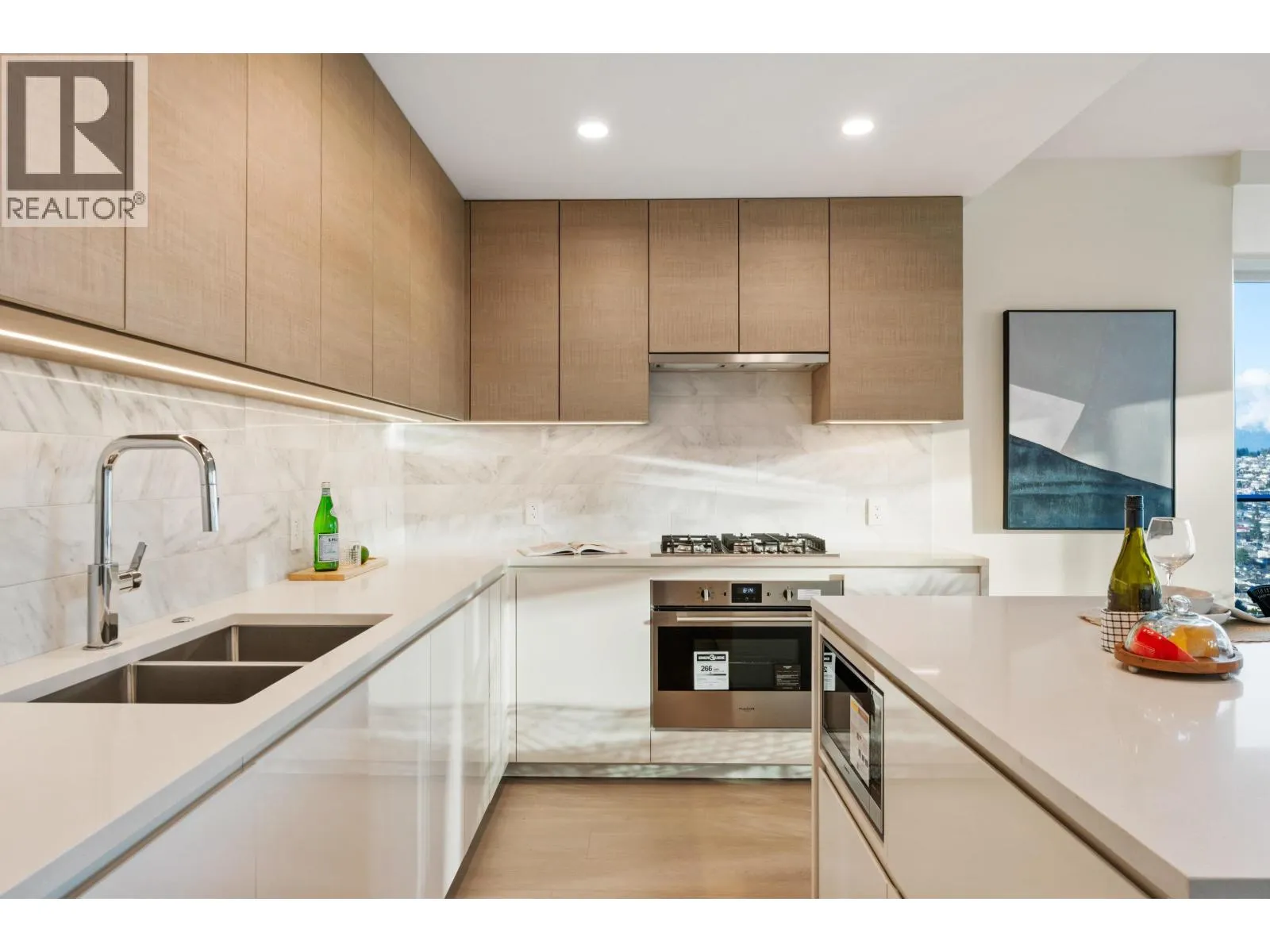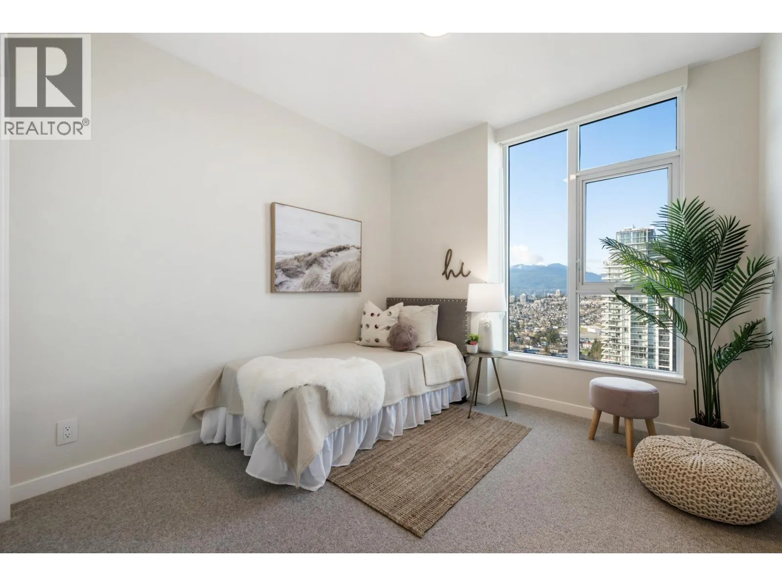 41st Floor living at Gilmore Place Tower 2 by Onni. This 1,067 SF CORNER UNIT offers 2 beds, 2 baths, and a DEN in the vibrant Brentwood area. Enjoy upgraded motorized blinds, A/C, gourmet kitchen with FULGOR appliances, a spacious island, and double Bloomberg fridge & freezers. The thoughtful layout provides privacy and stunning mountain and water views from a large covered 285 SF patio. Resort-style amenities include 24/7 concierge, indoor/outdoor pools, sauna, hot tub, 2 fitness centers, golf simulator, bowling alley, basketball court, numerous party rooms and guest suites, kids play areas & more. Adjacent to Gilmore SkyTrain, Brentwood Mall, future T&T, shops, and dining. Includes parking, storage, & a bike locker. Building has over 6 elevators.GST INCLUDED. Showings by private appointment. (id:27476)