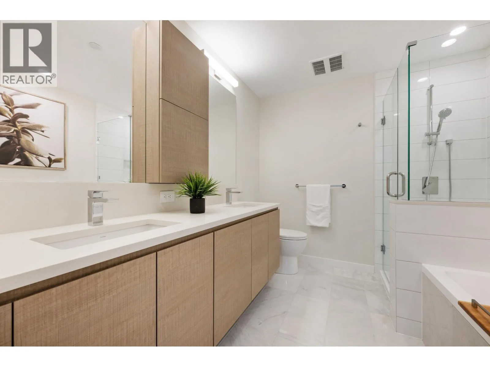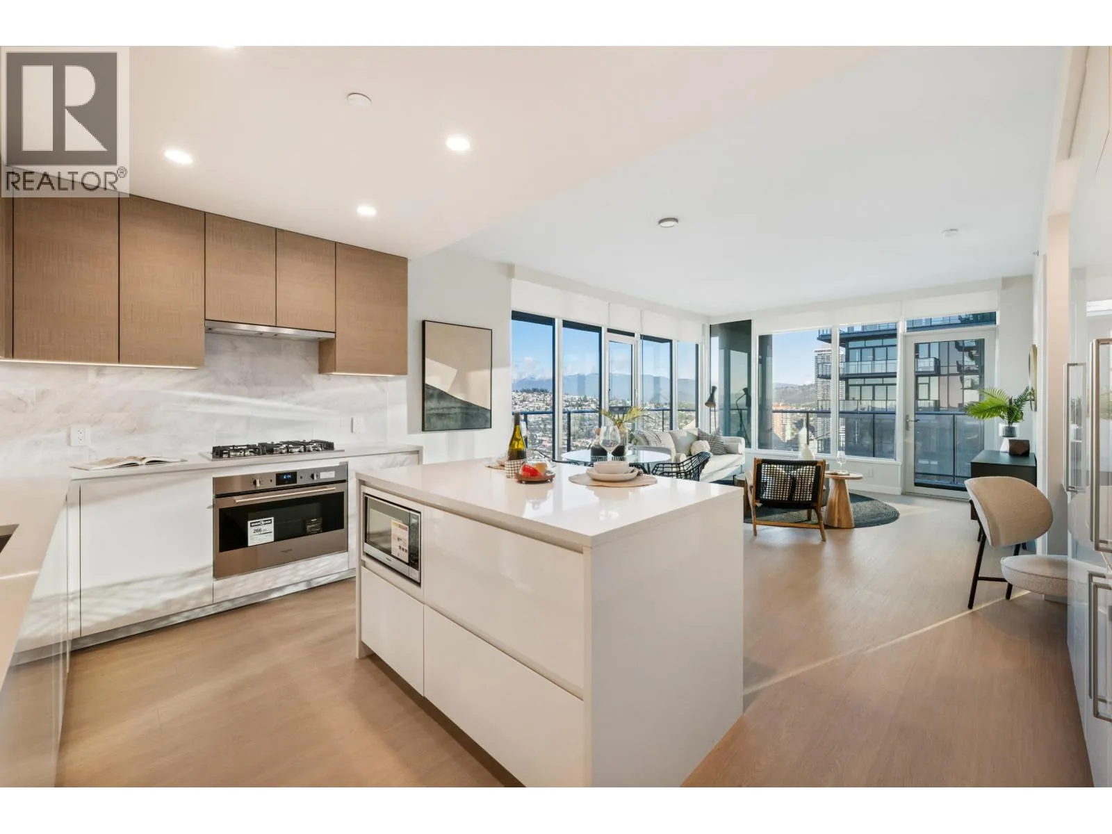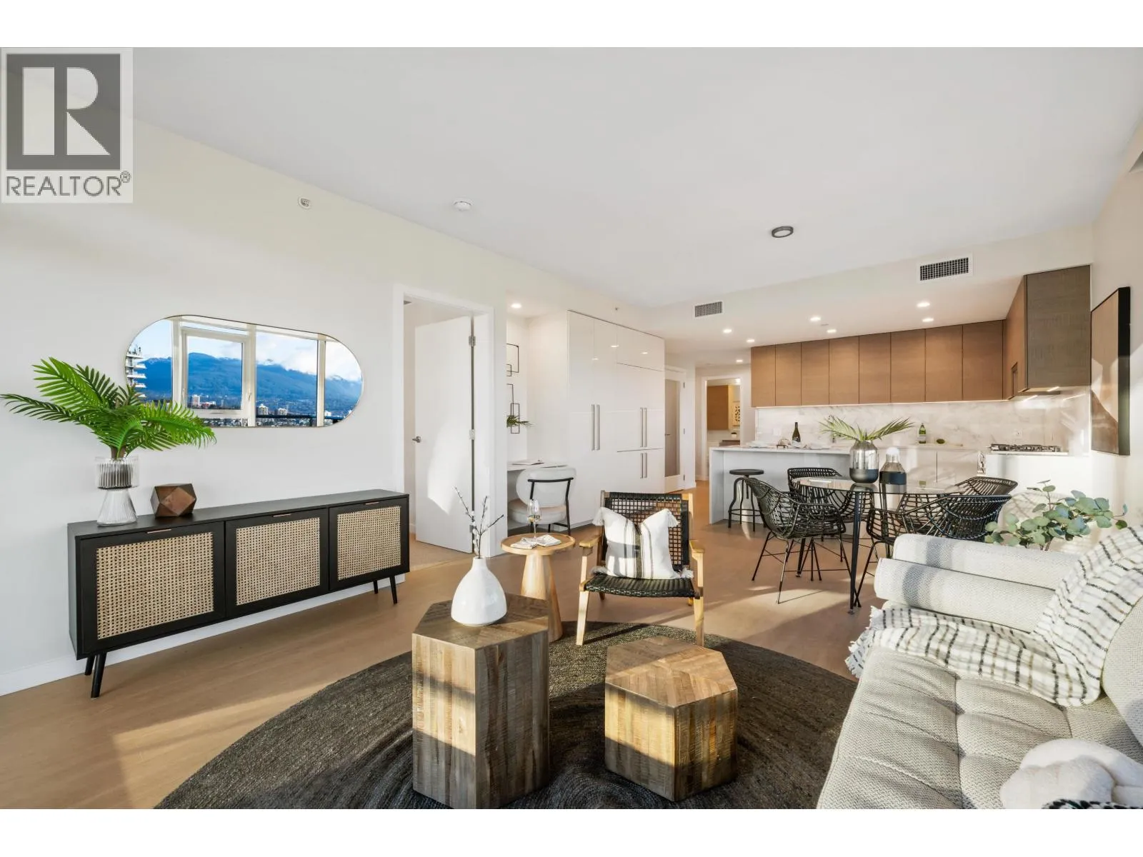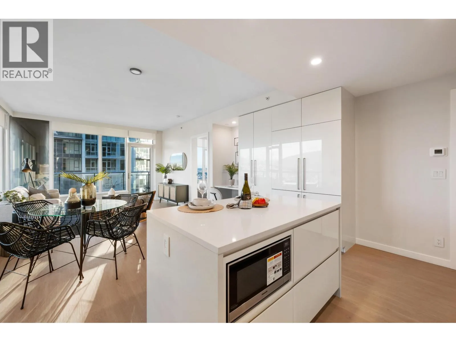 41st Floor living at Gilmore Place Tower 2 by Onni. This 1,067 SF CORNER UNIT offers 2 beds, 2 baths, and a DEN in the vibrant Brentwood area. Enjoy upgraded motorized blinds, A/C, gourmet kitchen with FULGOR appliances, a spacious island, and double Bloomberg fridge & freezers. The thoughtful layout provides privacy and stunning mountain and water views from a large covered 285 SF patio. Resort-style amenities include 24/7 concierge, indoor/outdoor pools, sauna, hot tub, 2 fitness centers, golf simulator, bowling alley, basketball court, numerous party rooms and guest suites, kids play areas & more. Adjacent to Gilmore SkyTrain, Brentwood Mall, future T&T, shops, and dining. Includes parking, storage, & a bike locker. Building has over 6 elevators.GST INCLUDED. Showings by private appointment. (id:27476)