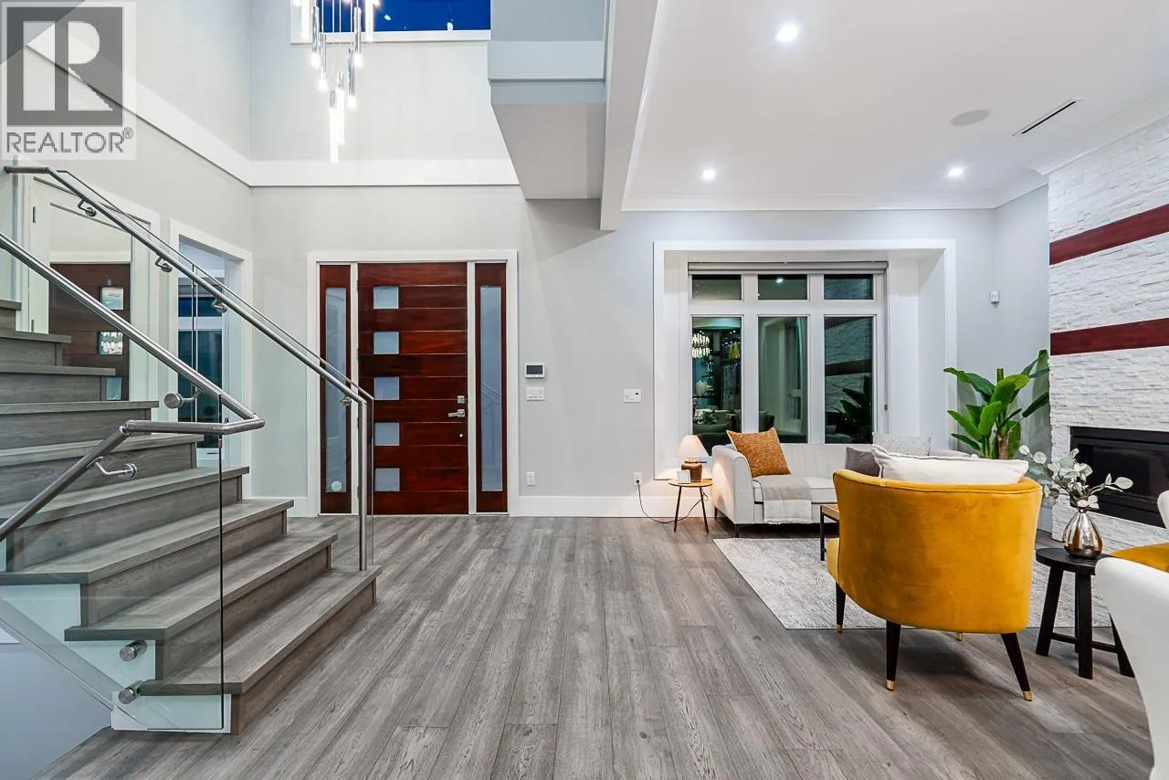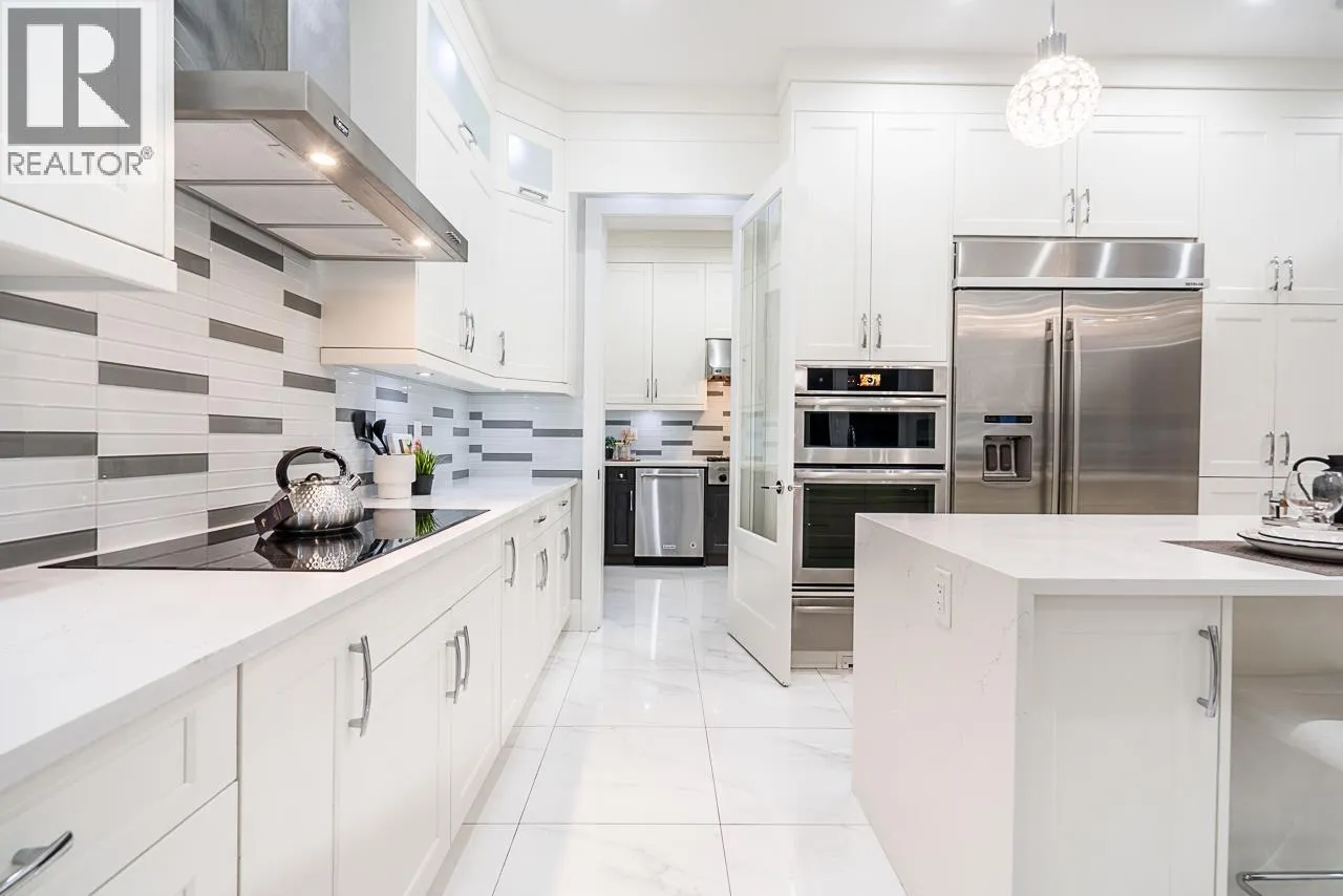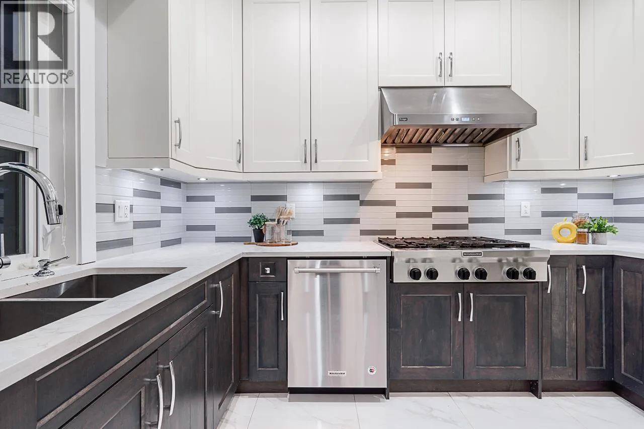 Welcome to 8433 10th Avenue! High side of the street, parking out front is allowed on this part of 10th Avenue. Just like new, TOTAL of 7 BDRMS, 8 BATHS over 4000 sqft of finished home. Top floor has 4 BDRMS , 3 FULL BATHS & laundry. Main floor has separate Living & Dining RM. Decorative wall separating family rm & kitchen. Grand kitchen with off white cabinets, built-in-appliances, huge Island & spice kitchen with gas stove, fridge & dishwasher. Beautuifully designed family rm entertainment wall. Full BDRM w/BATH on main floor. Basement has media rm. 2 suites, both are 1 BDRM each with laundry. Radiant heated floors. CCTV, A/C, covered deck, 2 car garage w/2 piece bath, electric gate off the lane. Central location, easy access to Hwy#1, SFU, both levels of schools... (id:27476)
