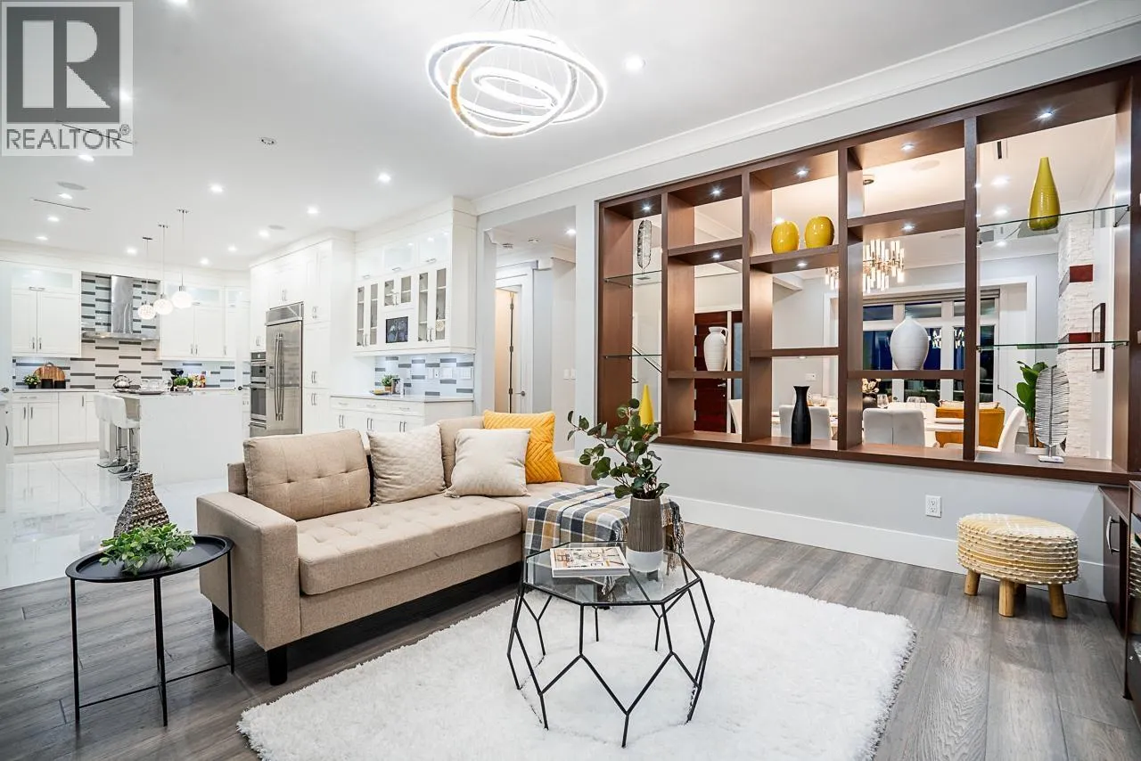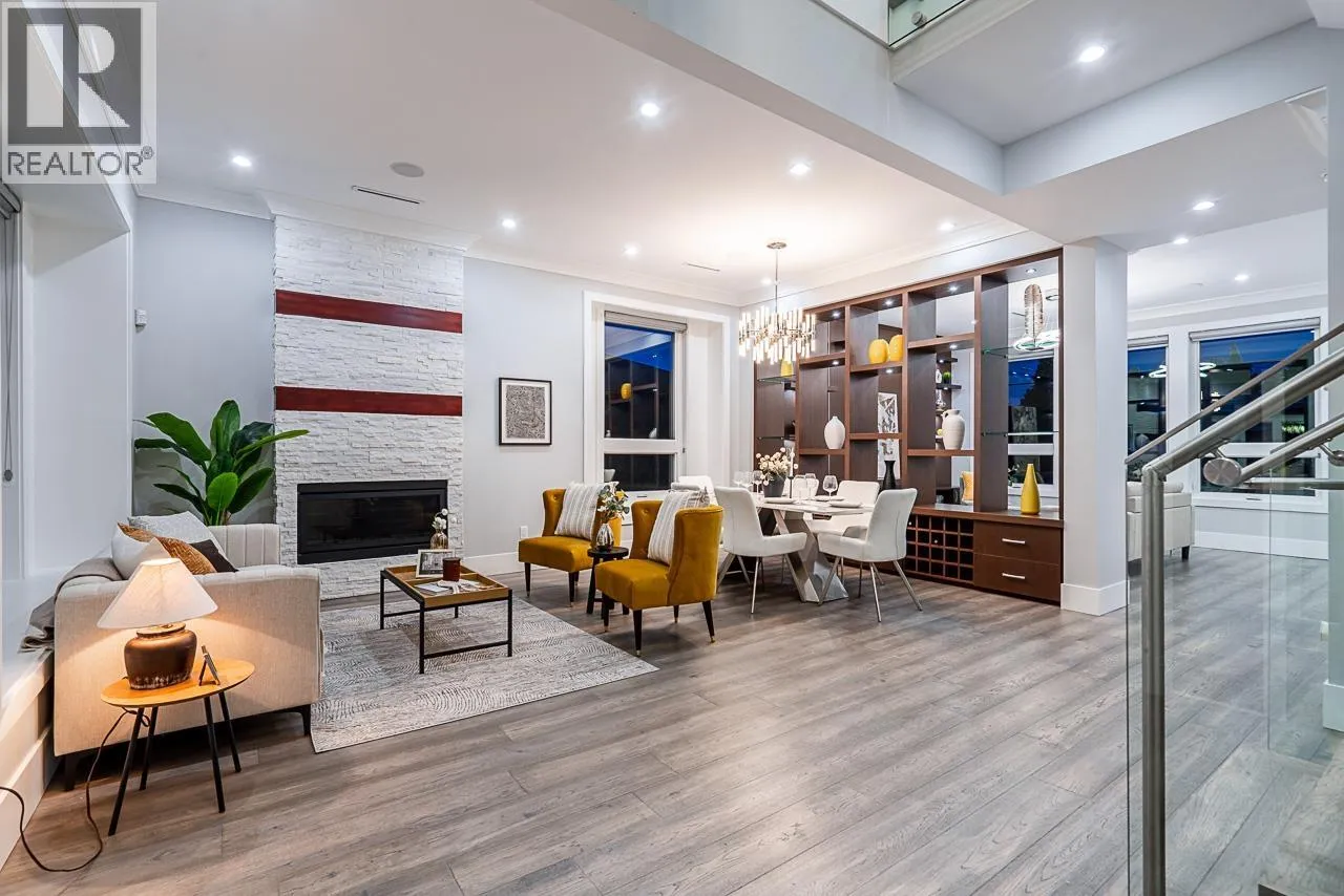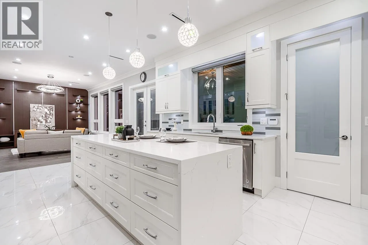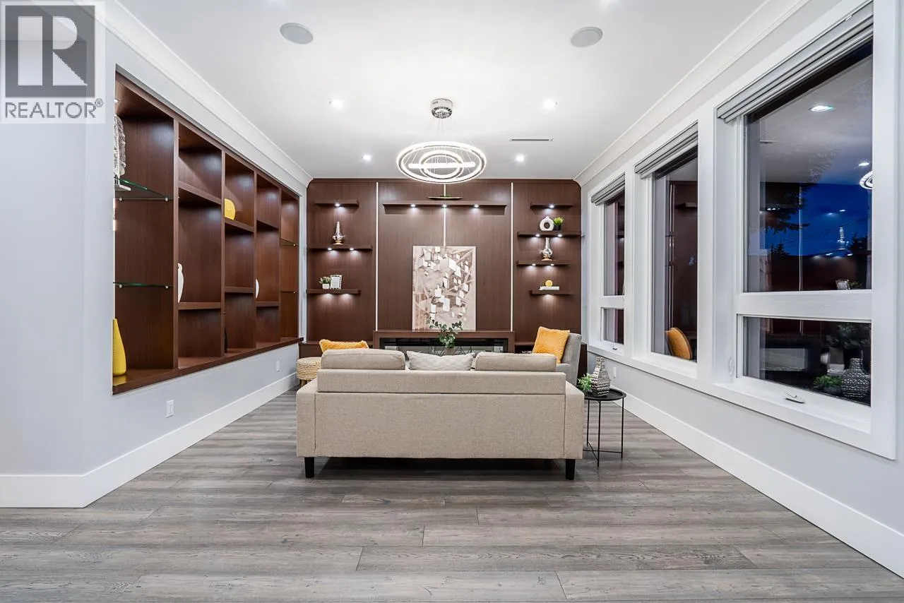 Welcome to 8433 10th Avenue! High side of the street, parking out front is allowed on this part of 10th Avenue. Just like new, TOTAL of 7 BDRMS, 8 BATHS over 4000 sqft of finished home. Top floor has 4 BDRMS , 3 FULL BATHS & laundry. Main floor has separate Living & Dining RM. Decorative wall separating family rm & kitchen. Grand kitchen with off white cabinets, built-in-appliances, huge Island & spice kitchen with gas stove, fridge & dishwasher. Beautuifully designed family rm entertainment wall. Full BDRM w/BATH on main floor. Basement has media rm. 2 suites, both are 1 BDRM each with laundry. Radiant heated floors. CCTV, A/C, covered deck, 2 car garage w/2 piece bath, electric gate off the lane. Central location, easy access to Hwy#1, SFU, both levels of schools... (id:27476)