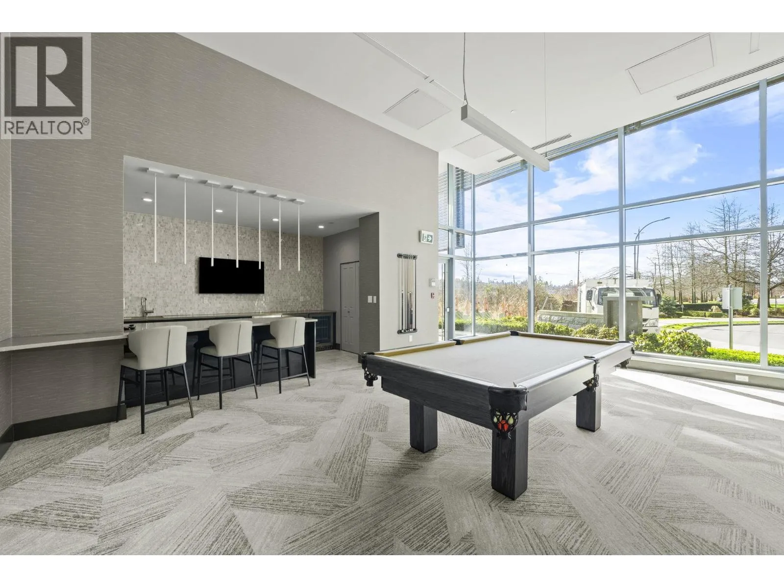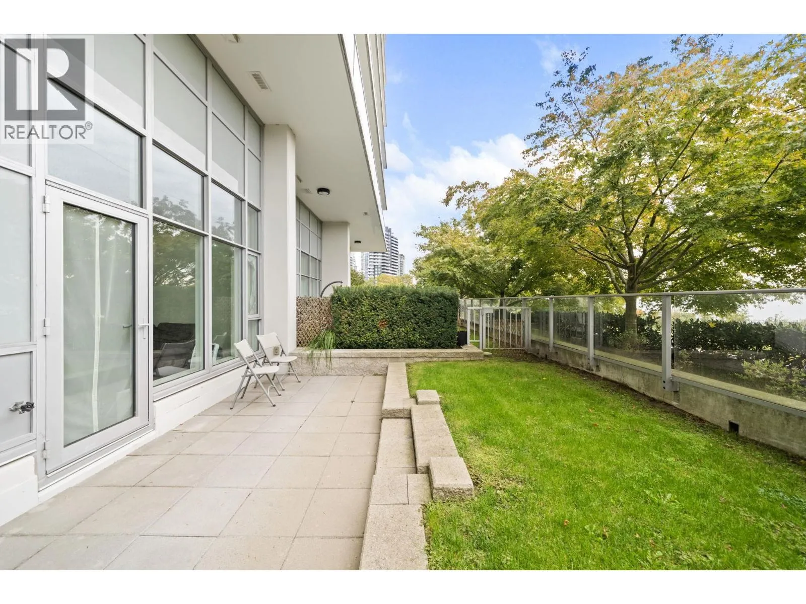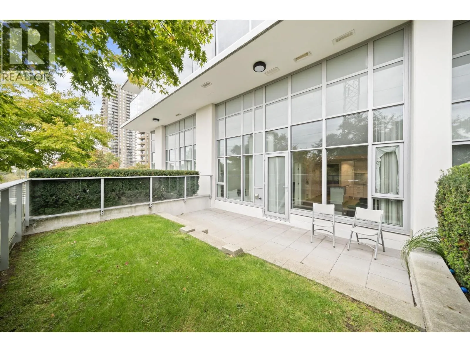 Welcome to "Fulton House" by Polygon, this spacious south-facing 1-bedroom unit features a practical open floorplan with floor to ceiling windows and an expansive 149SF private balcony and yard. One EXTRA foot of ceiling height compared to other units in the building. Sleek modern kitchen with a large island, Miele appliances, and a wine fridge. Fulton House amenities include a fitness centre, yoga studio, outdoor pool, hot tub, sauna, and lounge. Steps to SkyTrain, Brentwood Mall, dining, and more. Don't miss this opportunity to own one of the BEST VALUE condos in the Brentwood corridor. A perfect fit for dog lovers, retirees, investors, and anyone seeking comfort and convenience. 1 Parking + 1 Storage Locker Included. (id:27476)