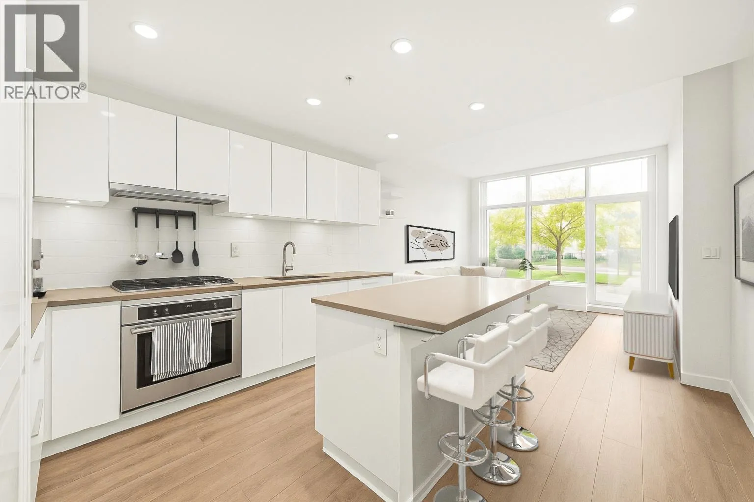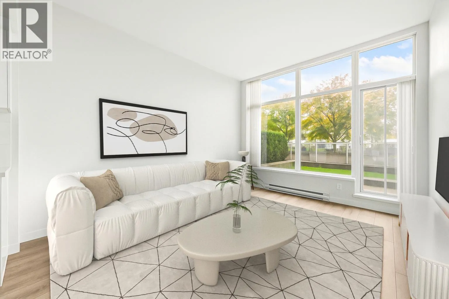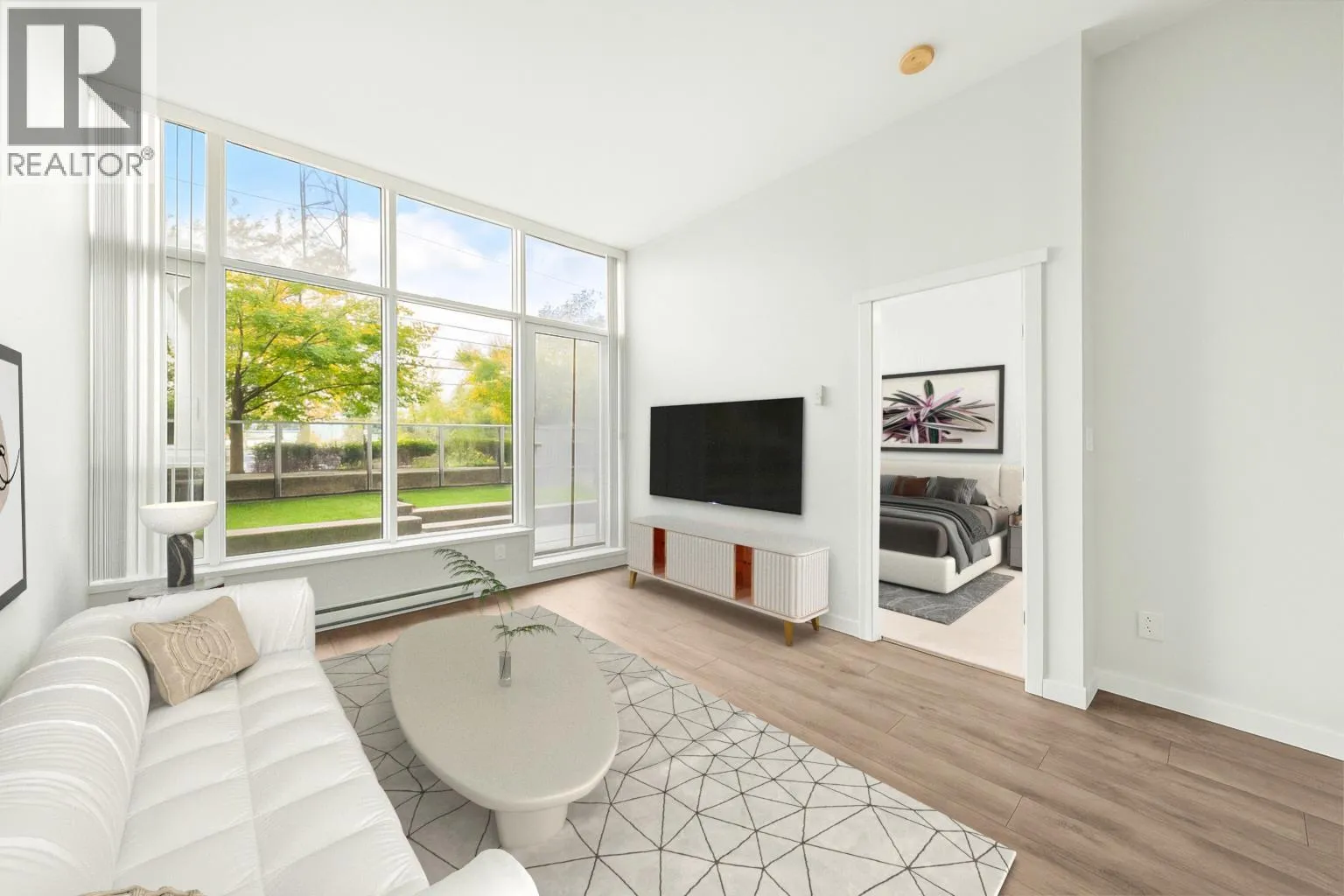 Welcome to "Fulton House" by Polygon, this spacious south-facing 1-bedroom unit features a practical open floorplan with floor to ceiling windows and an expansive 149SF private balcony and yard. One EXTRA foot of ceiling height compared to other units in the building. Sleek modern kitchen with a large island, Miele appliances, and a wine fridge. Fulton House amenities include a fitness centre, yoga studio, outdoor pool, hot tub, sauna, and lounge. Steps to SkyTrain, Brentwood Mall, dining, and more. Don't miss this opportunity to own one of the BEST VALUE condos in the Brentwood corridor. A perfect fit for dog lovers, retirees, investors, and anyone seeking comfort and convenience. 1 Parking + 1 Storage Locker Included. (id:27476)