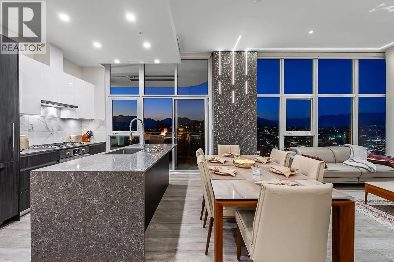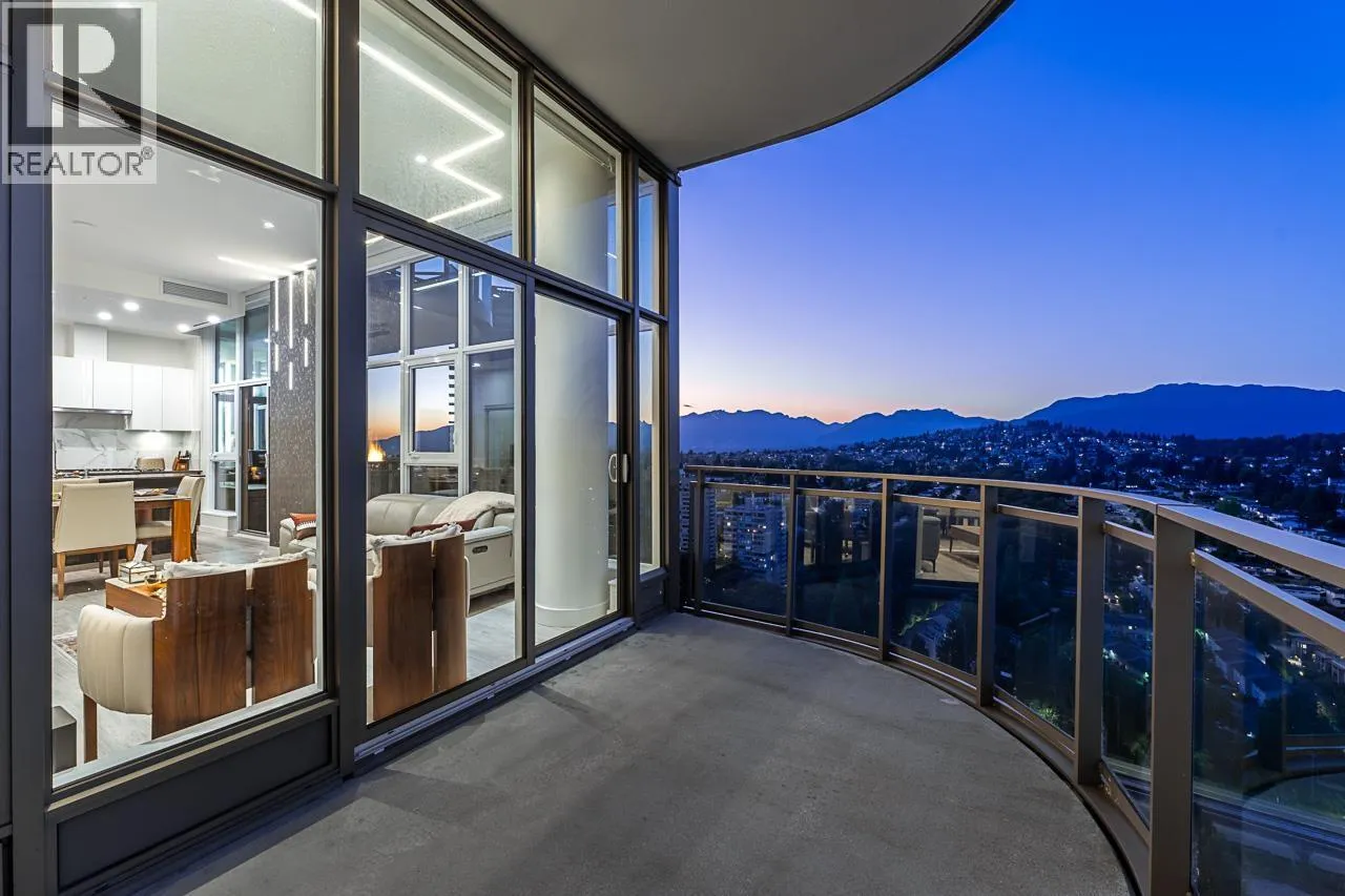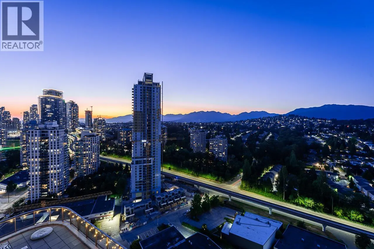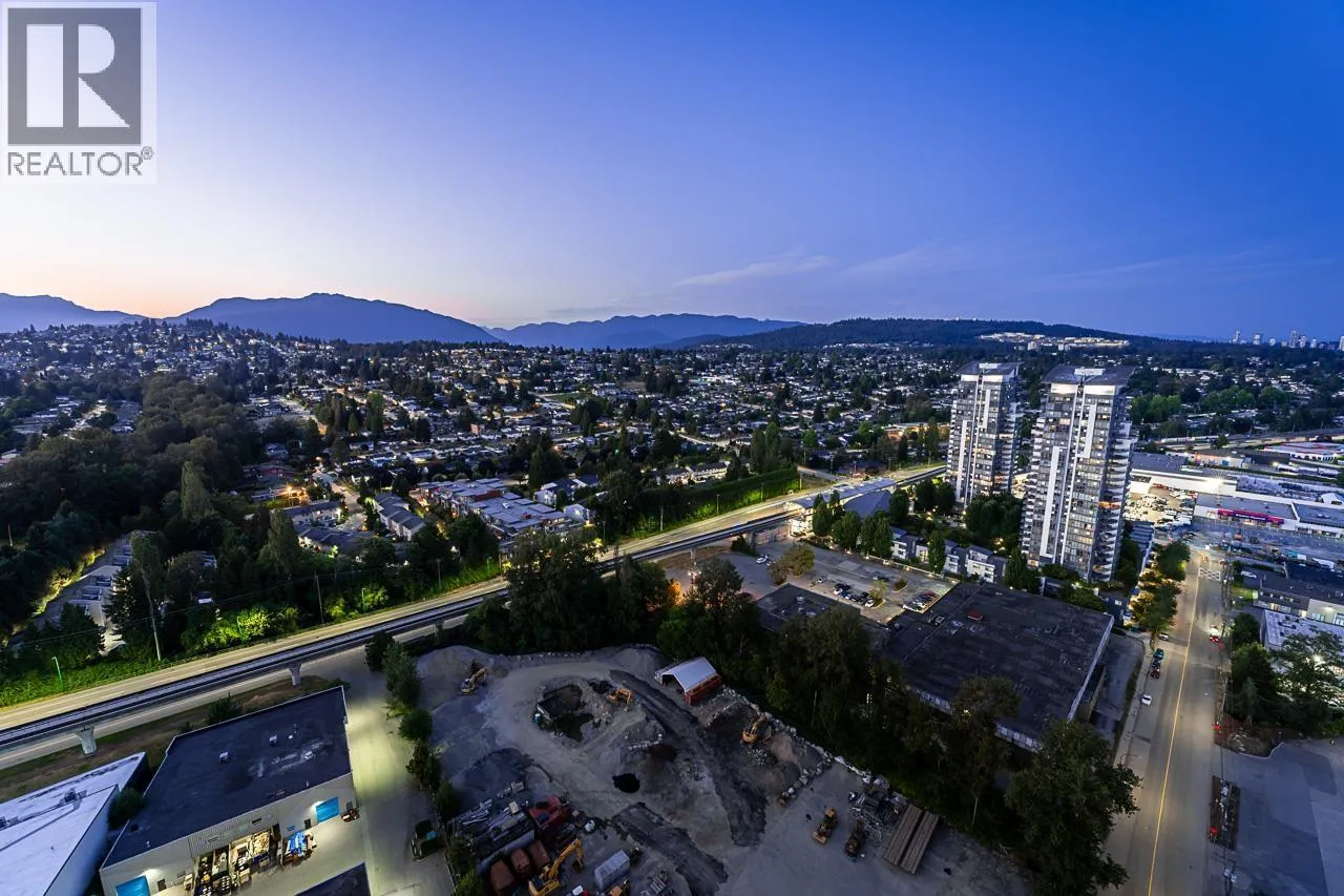 Sophisticated Sub-Penthouse in Brentwood, built by the reputable Millennium Development Corporation with 70 years of experience! This 2 Bed + Large Den NE Corner Unit offers 10´6" ceilings, floor-to-ceiling windows, and panoramic mountain & city views. Enjoy 2 large balconies with over 350 SF, Bosch appliances, and over $20K in custom upgrades: LED lighting, accent wall, pot lights, smart switches, floating media console, designer wallpaper, and custom closet organizer. Spa-inspired ensuite, heat pump A/C, 2 EV-ready side-by-side parking + locker. Resort-style amenities. Steps to SkyTrain & Brentwood Mall. Open House Sat, Nov 15th, 3-5PM. (id:27476)