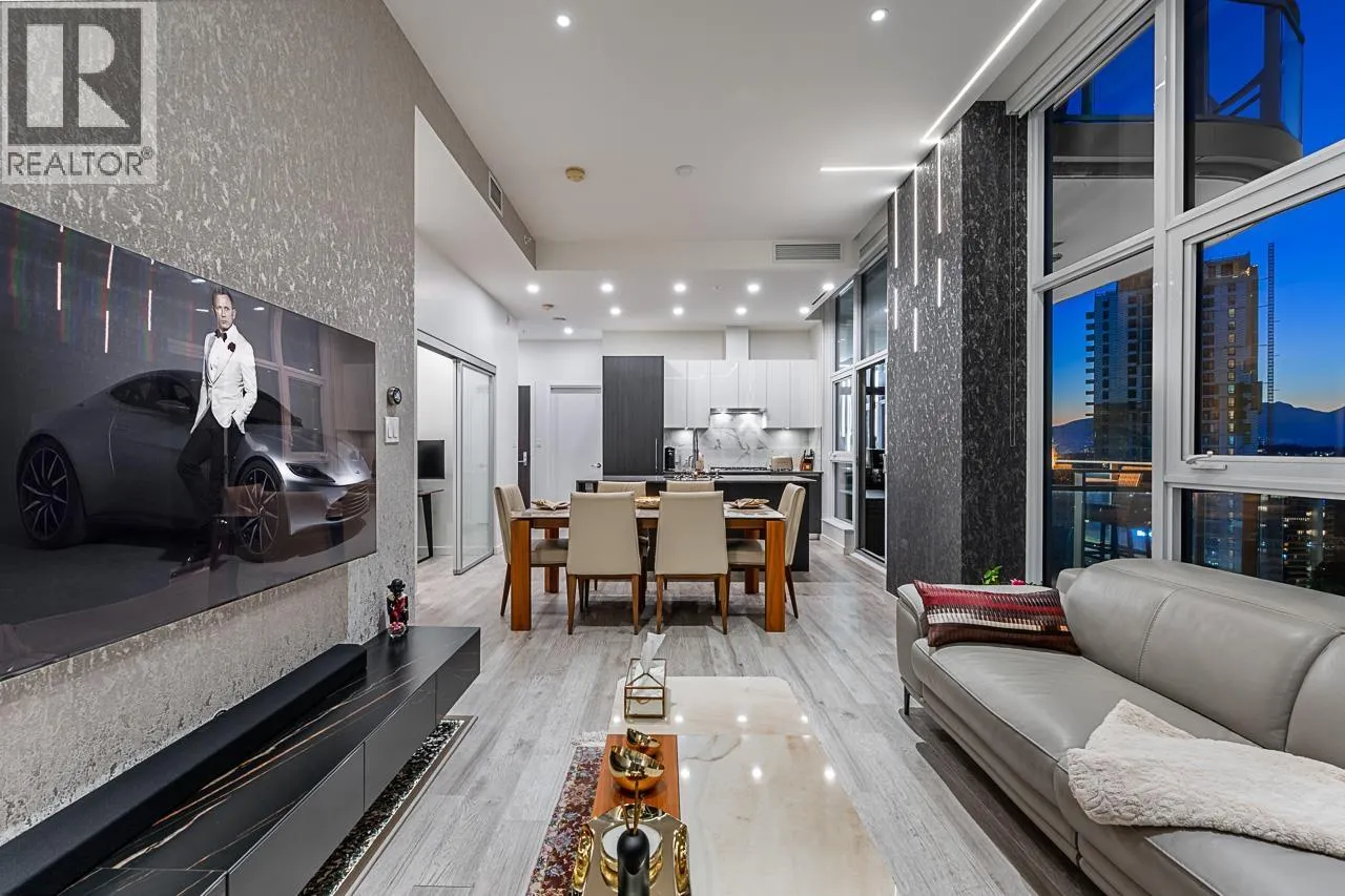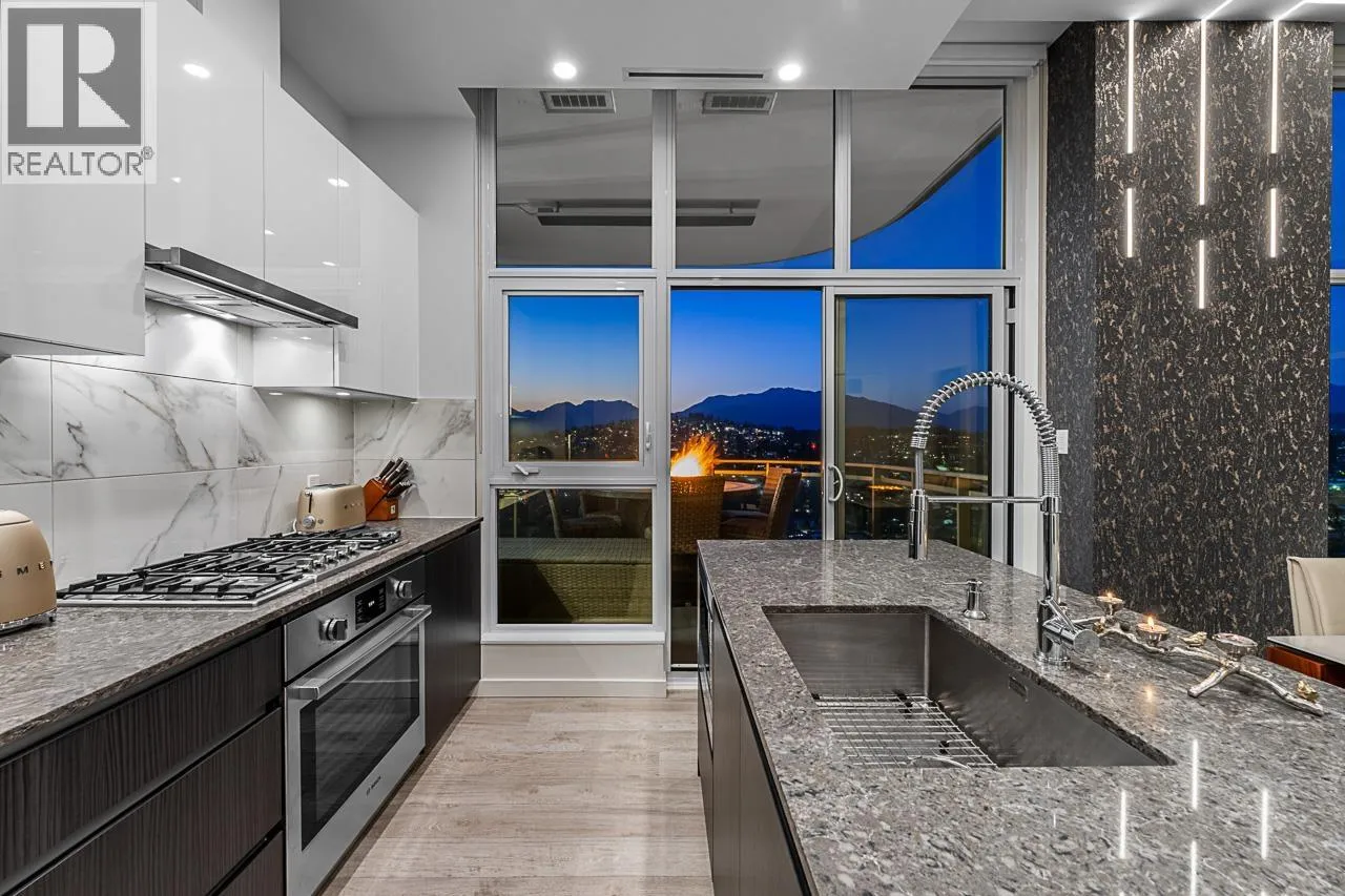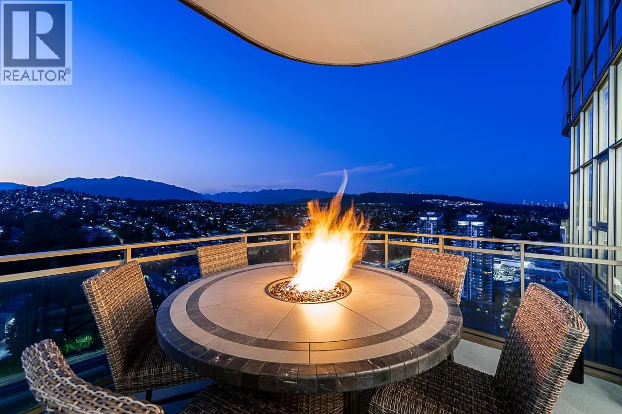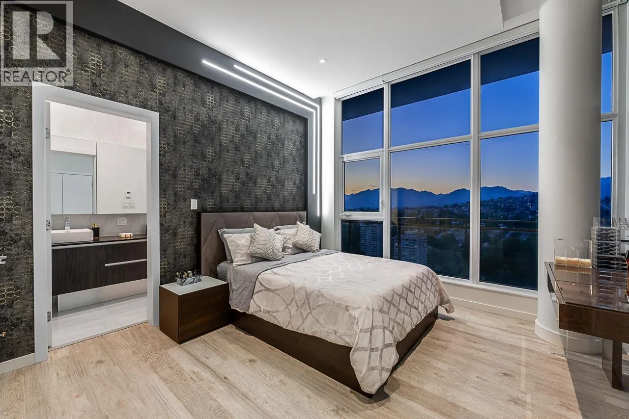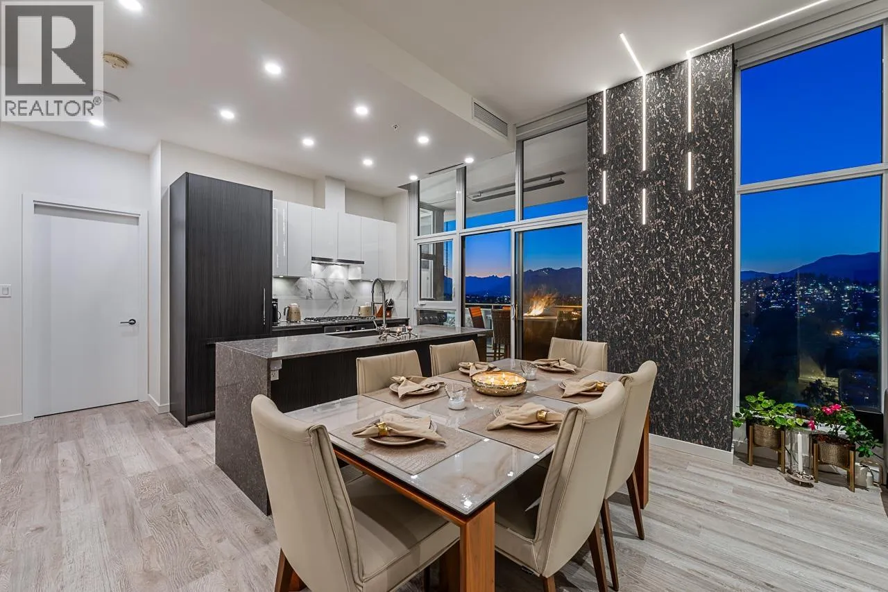 Sophisticated Sub-Penthouse in Brentwood, built by the reputable Millennium Development Corporation with 70 years of experience! This 2 Bed + Large Den NE Corner Unit offers 10´6" ceilings, floor-to-ceiling windows, and panoramic mountain & city views. Enjoy 2 large balconies with over 350 SF, Bosch appliances, and over $20K in custom upgrades: LED lighting, accent wall, pot lights, smart switches, floating media console, designer wallpaper, and custom closet organizer. Spa-inspired ensuite, heat pump A/C, 2 EV-ready side-by-side parking + locker. Resort-style amenities. Steps to SkyTrain & Brentwood Mall. Open House Sat, Nov 15th, 3-5PM. (id:27476)