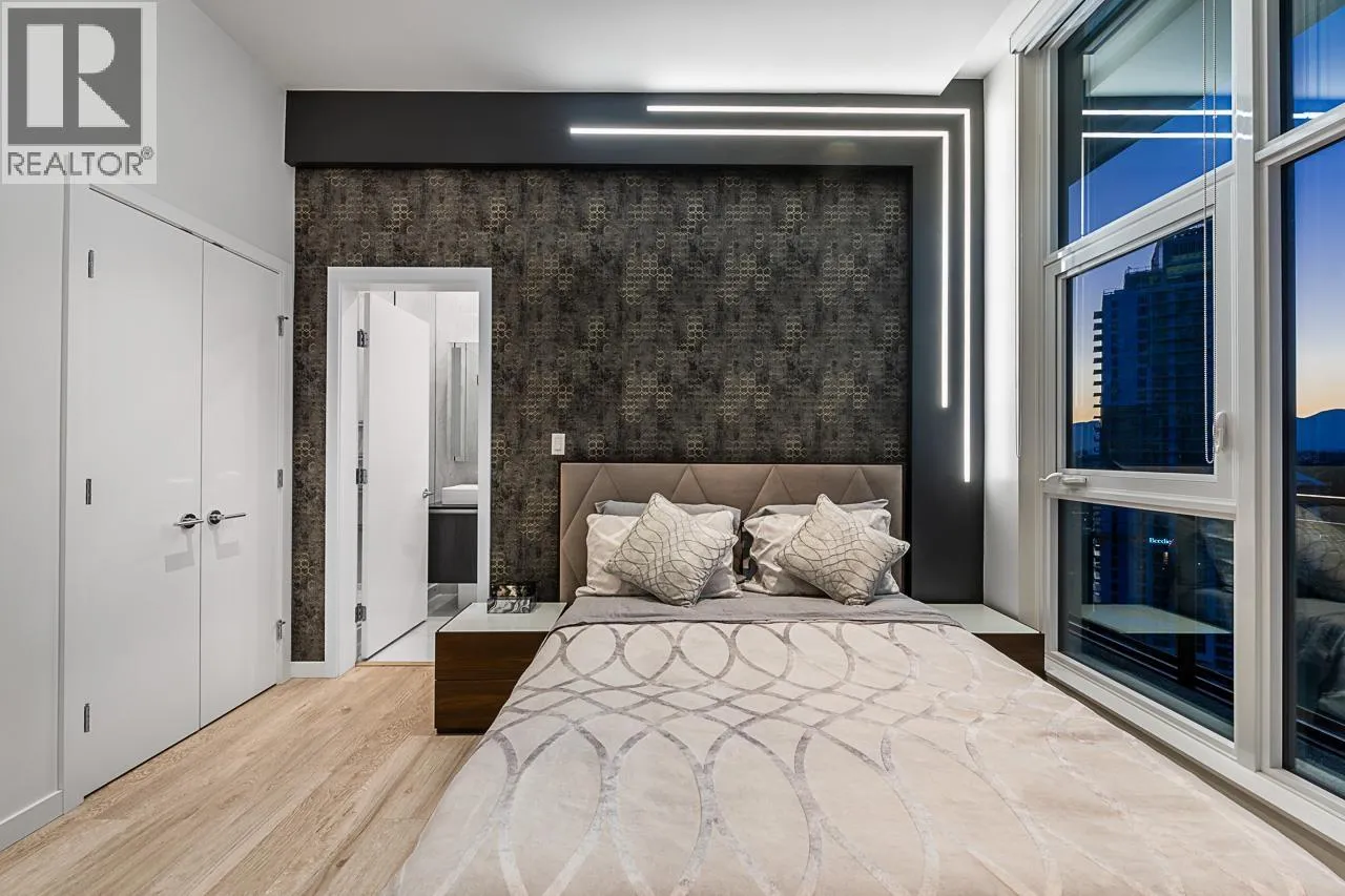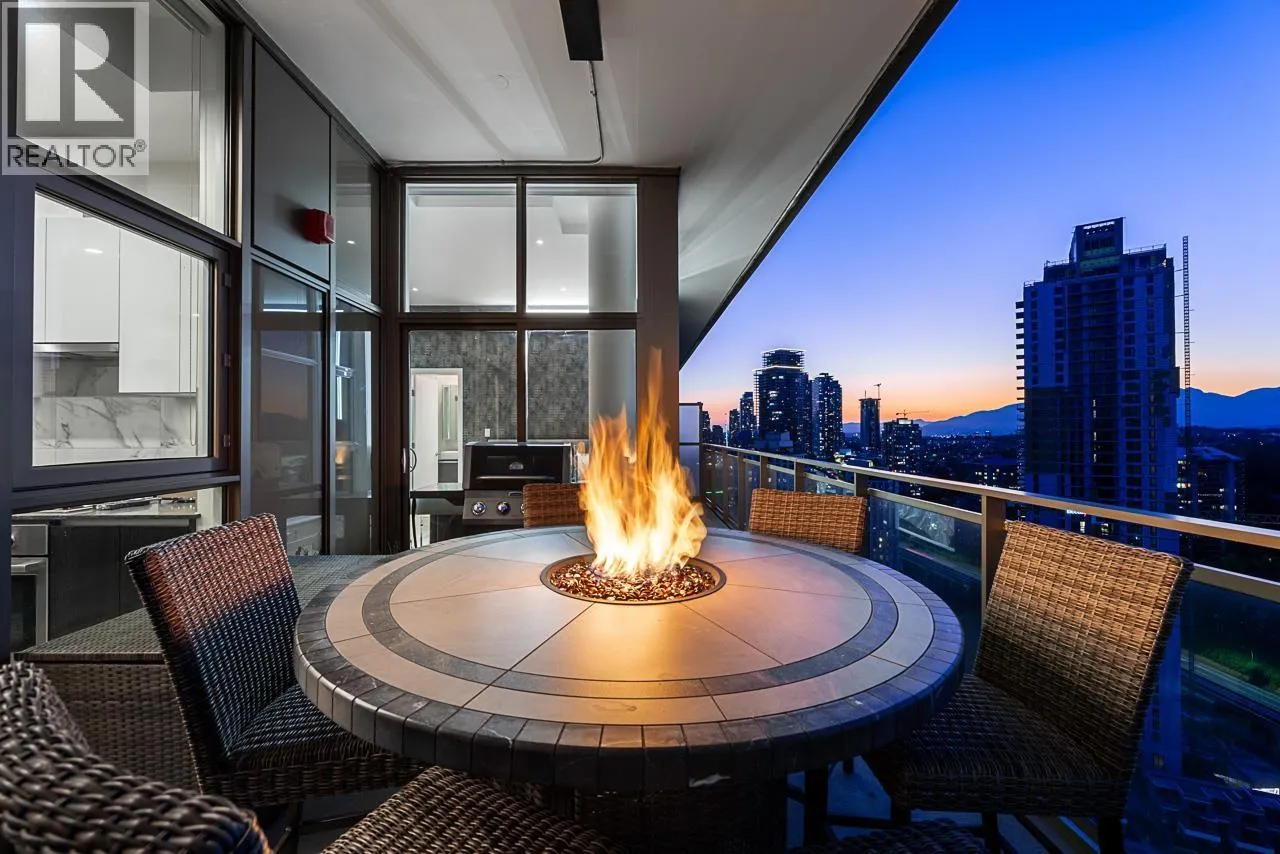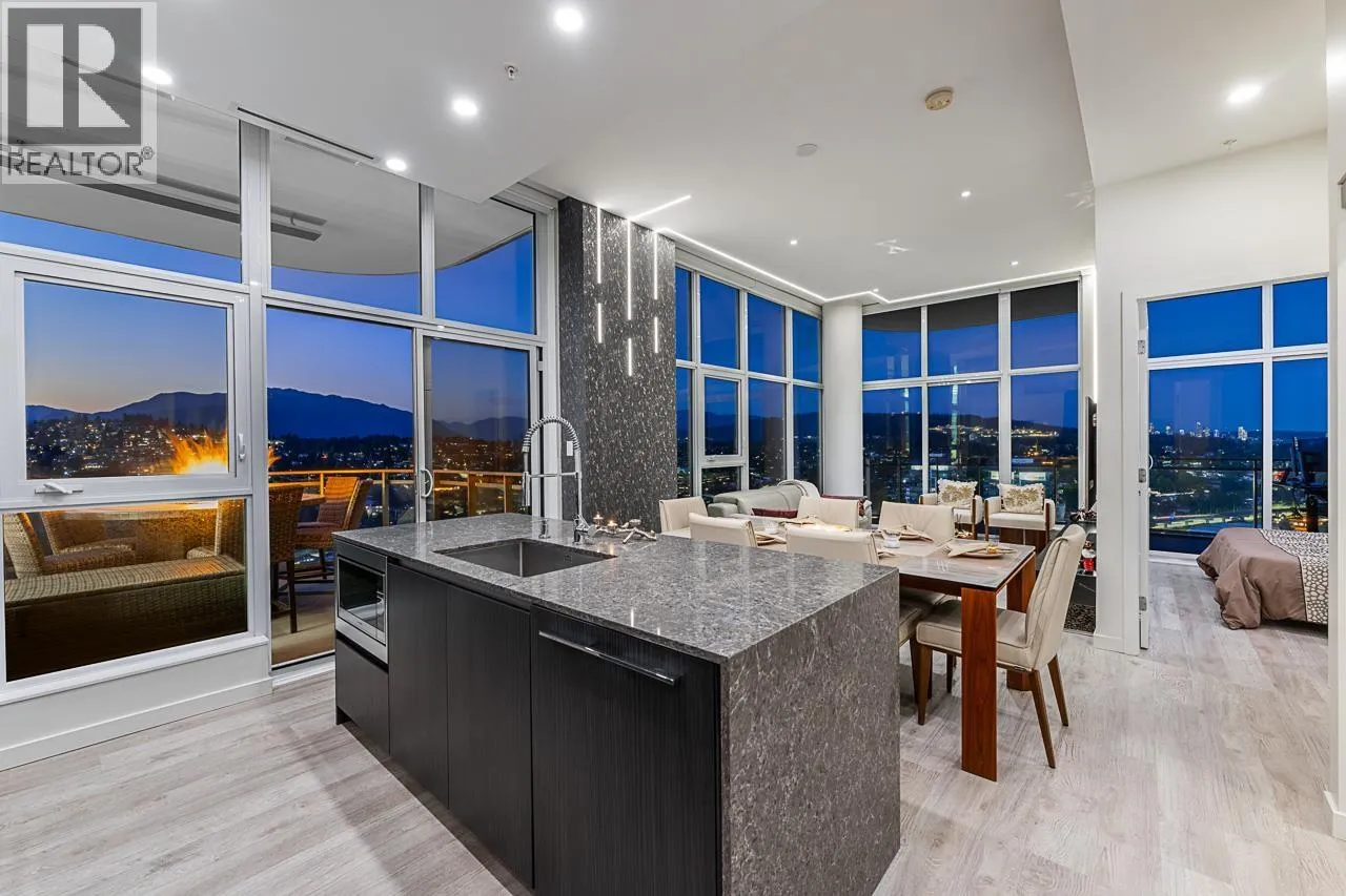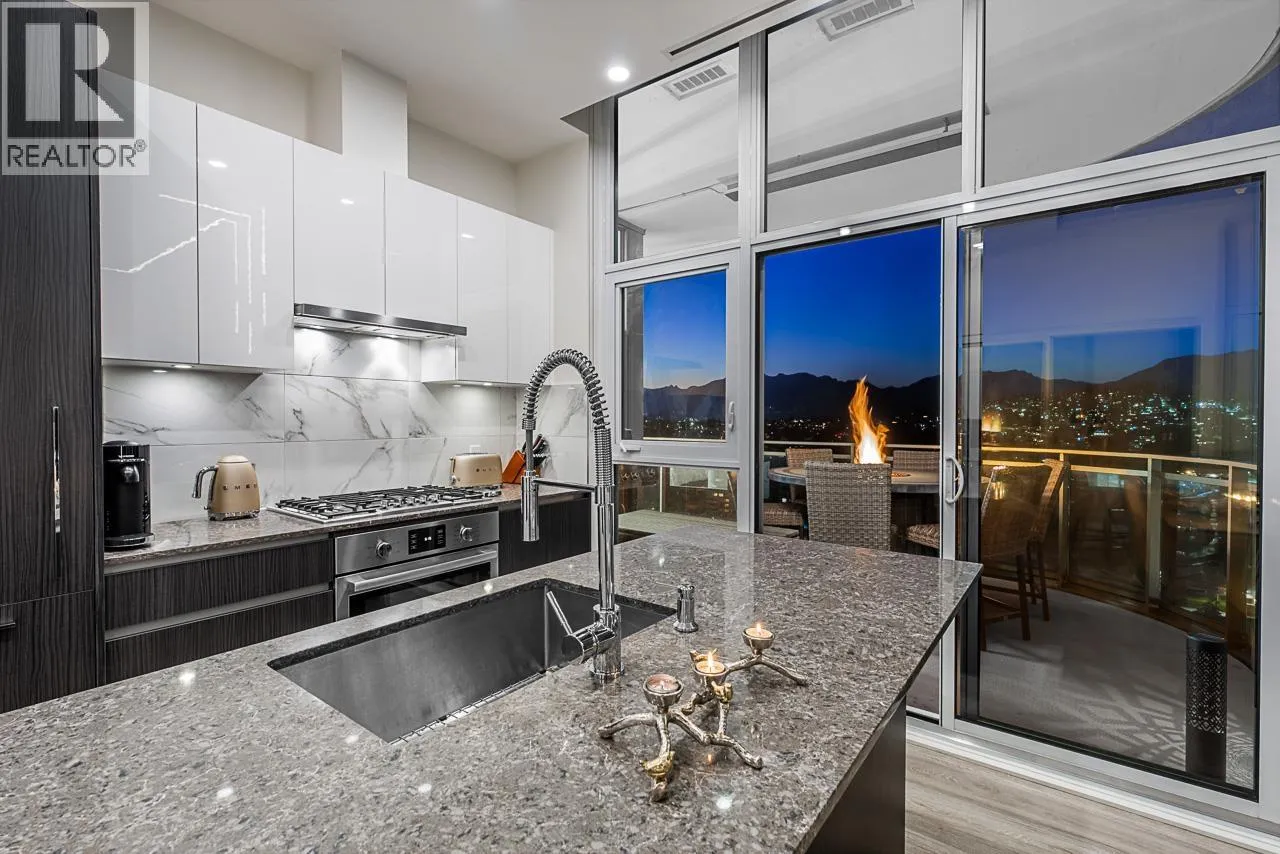 Sophisticated Sub-Penthouse in Brentwood, built by the reputable Millennium Development Corporation with 70 years of experience! This 2 Bed + Large Den NE Corner Unit offers 10´6" ceilings, floor-to-ceiling windows, and panoramic mountain & city views. Enjoy 2 large balconies with over 350 SF, Bosch appliances, and over $20K in custom upgrades: LED lighting, accent wall, pot lights, smart switches, floating media console, designer wallpaper, and custom closet organizer. Spa-inspired ensuite, heat pump A/C, 2 EV-ready side-by-side parking + locker. Resort-style amenities. Steps to SkyTrain & Brentwood Mall. Open House Sat, Nov 15th, 3-5PM. (id:27476)