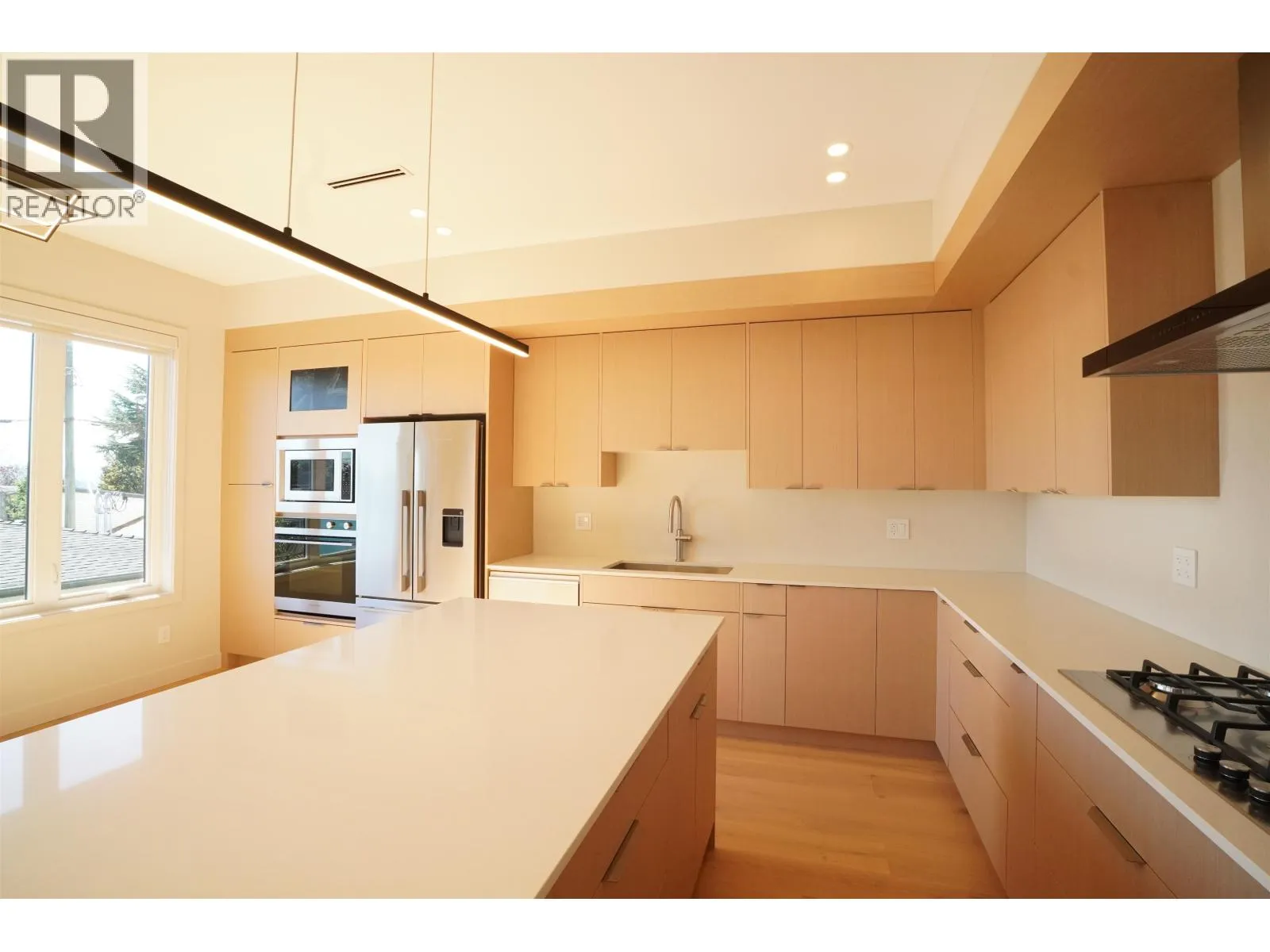 Meticulously built by a luxury home builder. 3000sqft half-duplex with flexible layout consists of 6 bedrooms, a den on main level, 7 full bathrooms, double garage & a parking pad. Overlooking Metrotown from 2nd level balcony & main level patio. The legal suite just a few steps from grade, not a basement. Nice landscaping front & back. Bricks paved walkway. Air conditioned main unit. Soundproof AC/HVAC room & laundry room. Cement plaster fireplace. Rectangular living/dining room good for full size furniture. Fisher & Paykel appliances. Kohler's bathrooms in main unit. Large crawl space for storage. Walking distance to Burnaby North Secondary School, Aubrey Elementary School, Hastings bus to SFU, Kensington Pitch & Putt, Kensington Square Shopping Centre & more. Must see to appreciate. (id:27476)