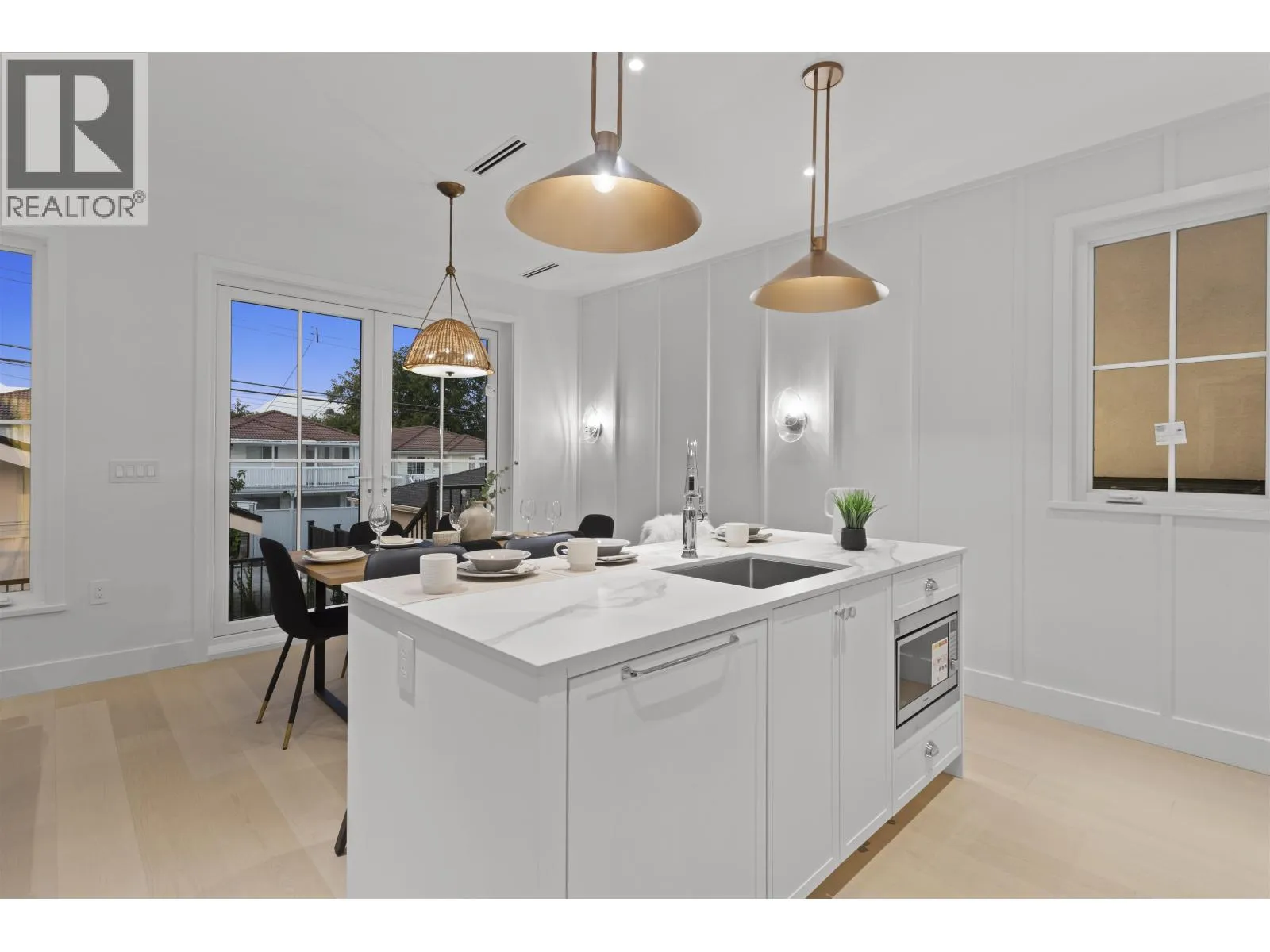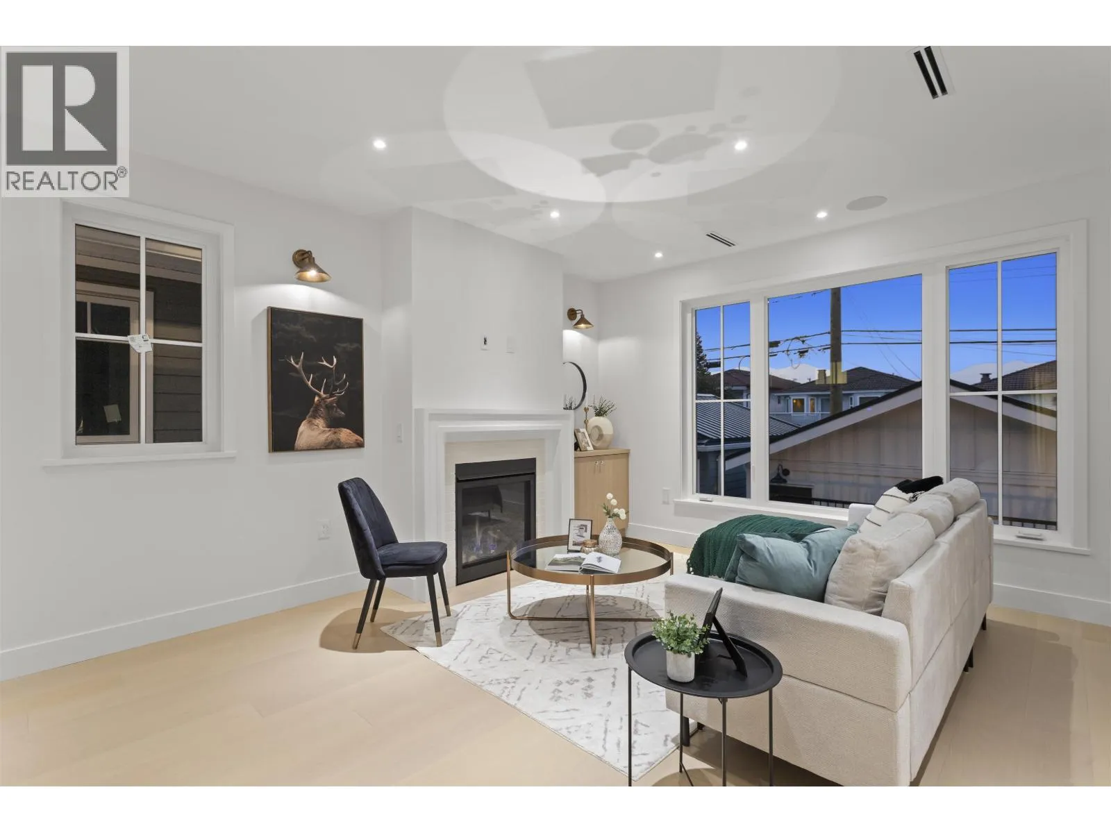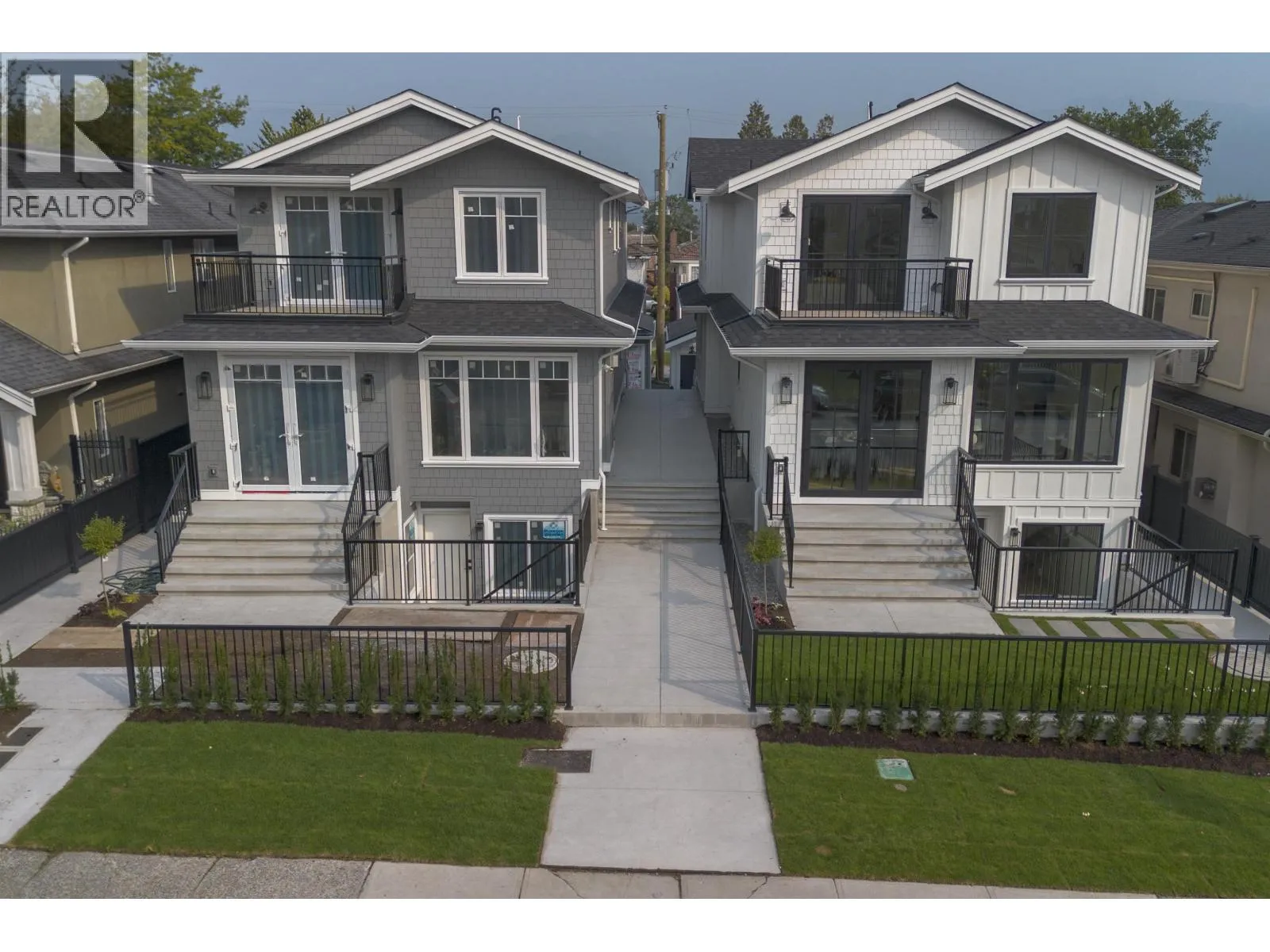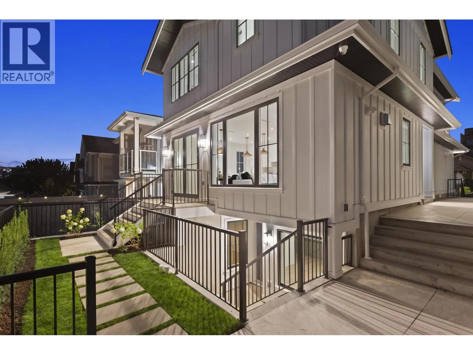 Welcome to this farmhouse-style half duplex located in the heart of Vancouver Heights, offering just under 1,800 square ft of beautifully finished living space. The open-concept main floor showcases wide plank hardwood flooring thru out the main & upper floor, stone kitchen countertops, wainscoting walls and premium built-in Fisher & Paykel appliances, plus gas washer, dryer, stove and fireplace. French doors off the main-floor open to the outdoors, built-in speakers, security cameras, HRV, gas furnace and a heat pump with A/C ensure comfort and peace of mind. Upstairs includes three bedrooms, two bathrooms, Vaulted ceilings and a bright spacious one-bedroom suite-ideal as a guest space or mortgage helper. Located just steps from vibrant The Heights shopping. (id:27476)