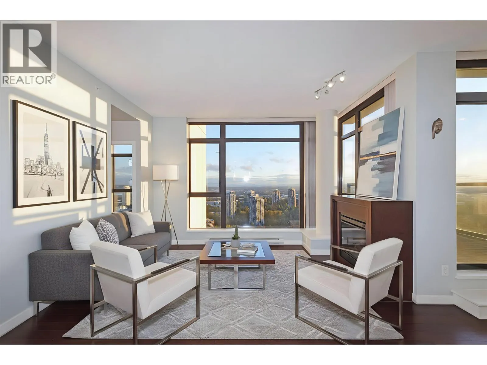 PENTHOUSE@ WEST by BOSA. Southwest-facing corner penthouse with breathtaking views of the city, mountains, and Fraser River, from Mount Baker to Downtown and the North Shore. Spacious 3-bedroom, 2-bath with excellent open-concept floor plan, 9' ceilings, lots of natural light, two balconies, and quartz countertops. Renovated in 2020 with engineered hardwood floors in all bedrooms, full interior repaint, updated 2nd bathroom countertop and sink, wallpaper, and crystal chandeliers. Appliances updated: fridge, washer, dryer, range hood (2020); dishwasher (2024); gas stove (2025). Includes two side-by-side parking stalls and one storage locker. Steps to shopping, dining, parks, Edmonds Community Centre, and SkyTrain. Open House: Nov 15(Sat) 2pm - 4pm (id:27476)