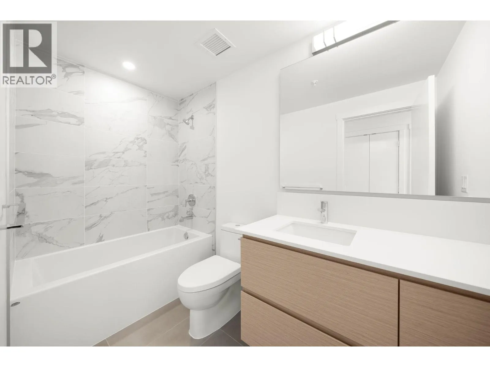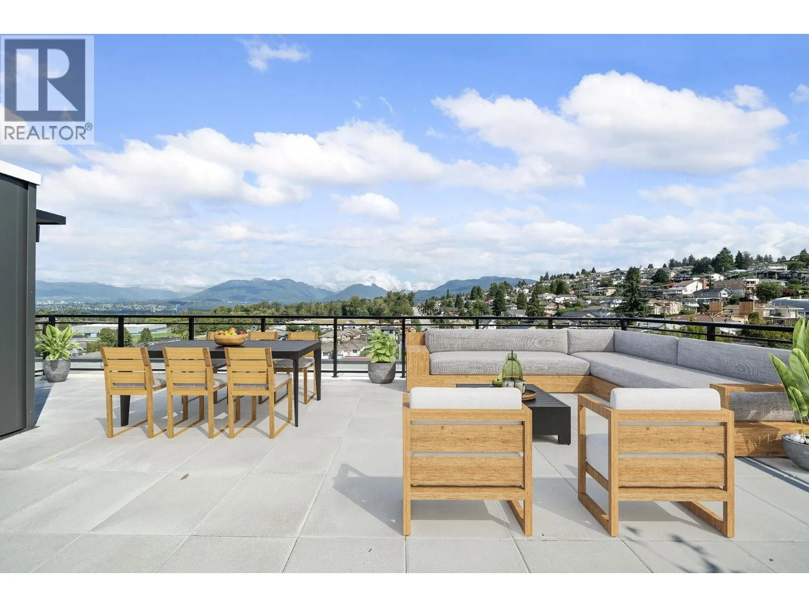 Discover VALEO, a stunning concrete and steel masterpiece in vibrant Burnaby Heights! This dazzling 3-bed, 2-bath home captivates with jaw-dropping mountain and city views, blending sleek efficiency with bold style. Dive into an open-concept haven featuring a gourmet kitchen with gleaming quartz countertops, top-tier SS appliances, and chic laminate flooring, plus cozy heated floors in the double vanity ensuite. The star? Your private 600+ square ft rooftop oasis, directly accessible from your suite-perfect for sizzling summer barbecues, crafting a tranquil garden escape, or savoring magical sunset views under a starry sky. Stay comfy year-round with cutting-edge VRF heating and cooling. Plus, enjoy TWO (pre-wired EV) parking stalls and a secure storage locker. (id:27476)