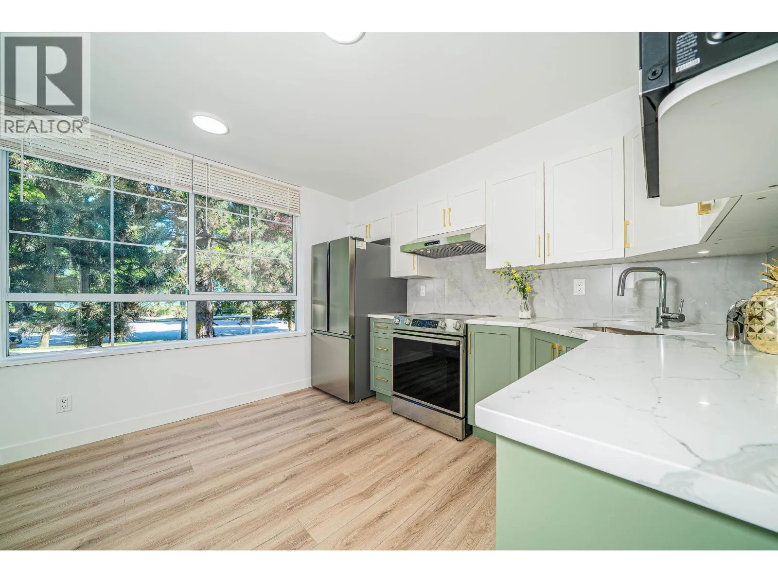 Location, location, location!this spacious 2 bedroom, 2 bathroom Condo of over 1,000 square feet will not disappoint you. It is an ideal choice for the first-time homebuyers or those who want to downsize. The advantage of the corner house is good natural light and ventilation. The two bedrooms are independent of each other ensuring a peaceful distance person space, the distance creates beauty! The entire house was renovated 2025. Property renovation: full installation of rain screens, replacement of siding, installation of elevators, and complete renovation of indoor common areas and terraces. The location is convenient to transportation, with easy access to the Royal Oak Skytrain Station, and there are parks and shopping centers nearby. The schools in the school district are Nelson El (id:27476)