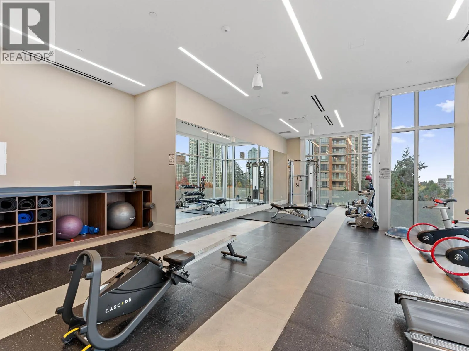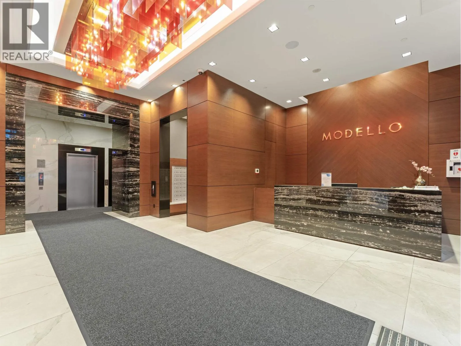 Experience luxury living at Modello by Boffo - Burnaby´s premier address setting a new benchmark for sophistication. This bright, east-facing 1-bedroom condo boasts 9´ ceilings, new paint, refinished floors, new carpet, and top-of-the-line Miele appliances, including a wine chiller. Indulge in marble slab kitchen walls, heated marble bathroom floors, and quartz counters complemented by geothermal heating and cooling. Enjoy a massive balcony with gas hook-up, EV parking stall, and A/C comfort year-round. Residents benefit from 24-hour concierge service and stunning amenities. Perfectly located steps from Metrotown, SkyTrain, Central Park, and more-urban luxury at its finest! (id:27476)