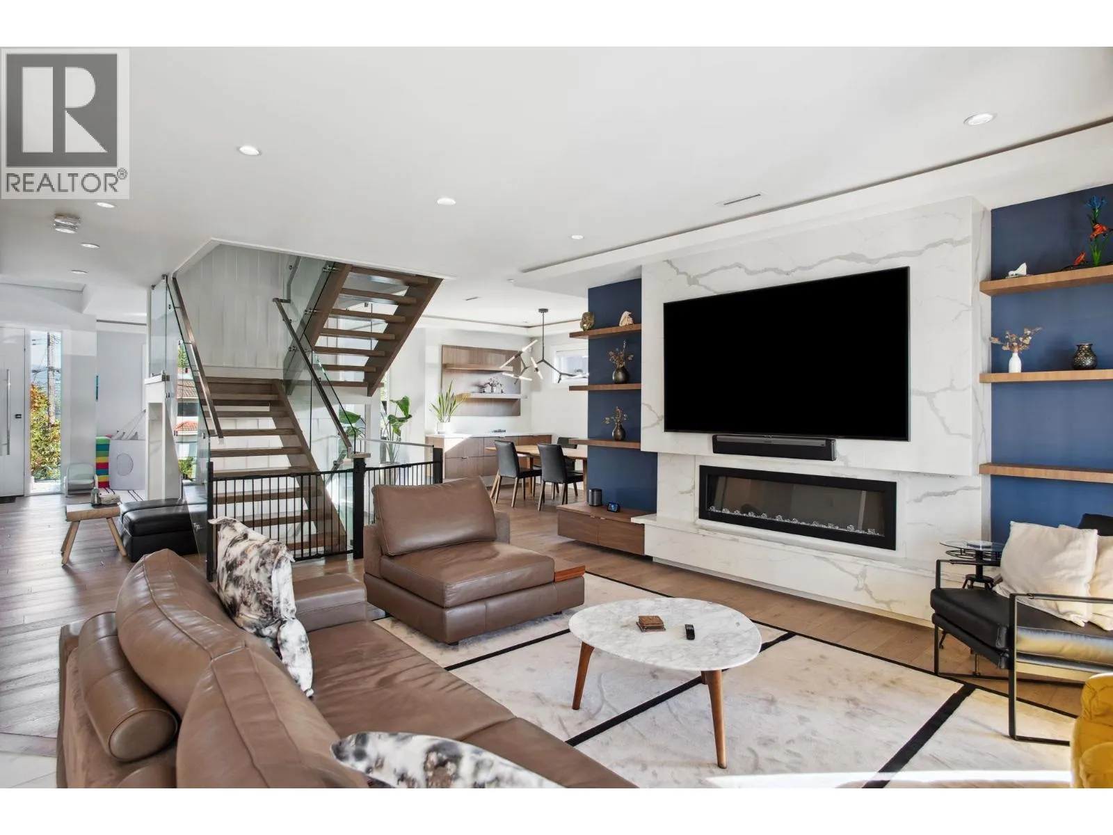 Beautiful Modern Home in a Prime Central Location Step into this stunning modern residence perfectly situated near BCIT, with quick access to Hwy #1, only 5 minutes from Metrotown Centre, and just moments from Vancouver. This home offers 6 bedrooms, 6 bathrooms, plus a den across three spacious levels. The open-concept layout features a custom floating staircase and an abundance of natural light throughout.The chef-inspired kitchen is equipped with a commercial-grade gas range, and built-in oversized fridge. Enjoy electric lift cabinets and a massive waterfall island ideal for entertaining. Accordion-style Eclipse doors open to a covered patio with ceiling heaters, creating the perfect year-round indoor-outdoor living space. (id:27476)