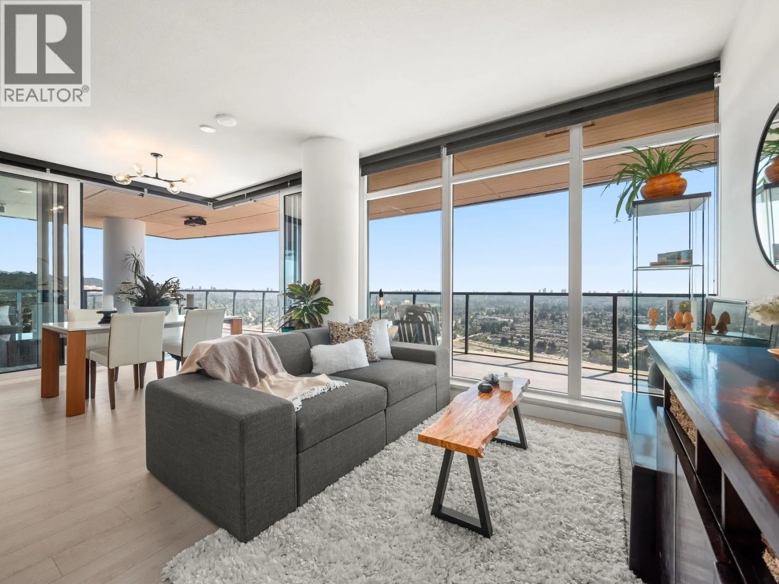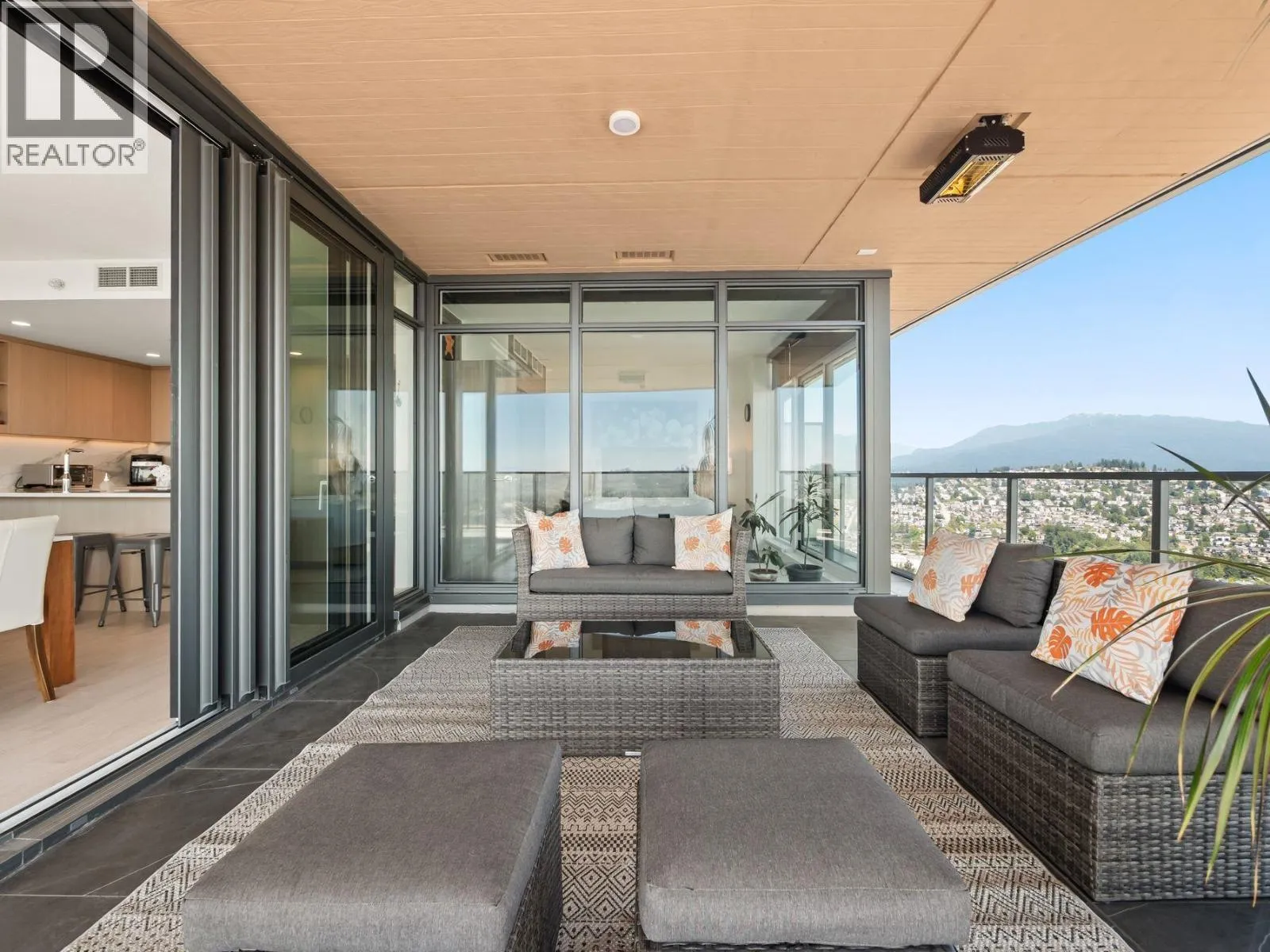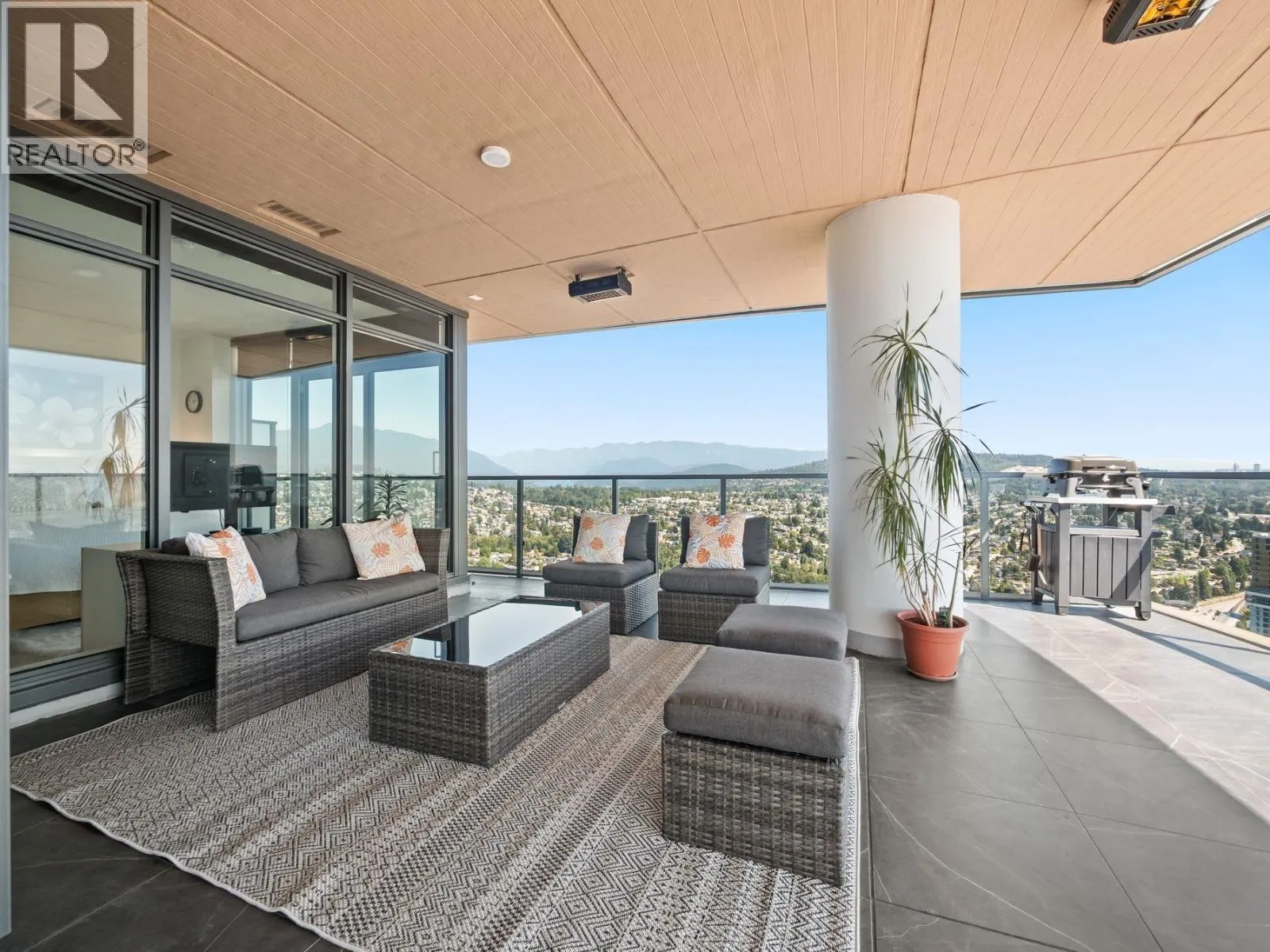 Sub-penthouse, corner suite at Concord Brentwood Hillside East with stunning, unobstructed 270° views-from the mountains and Indian Arm, to Mt. Baker, Metrotown, and the Gulf Islands. This south-facing 2 bedroom, 2 bathroom home offers 1,059 sqft of modern living and an incredible 638 sqft of heated outdoor space. Expansive sliding doors fully open to create a seamless flow between indoors and out-perfect for entertaining or relaxing with your morning coffee or evening glass of wine. Sophisticated design, quality finishings, air conditioning, and a bright open layout. Exceptional amenities, 24/7 concierge, and just steps to Brentwood Mall and Skytrain. One parking and storage locker included. Open: Sun, Nov 2, 2-4 (id:27476)