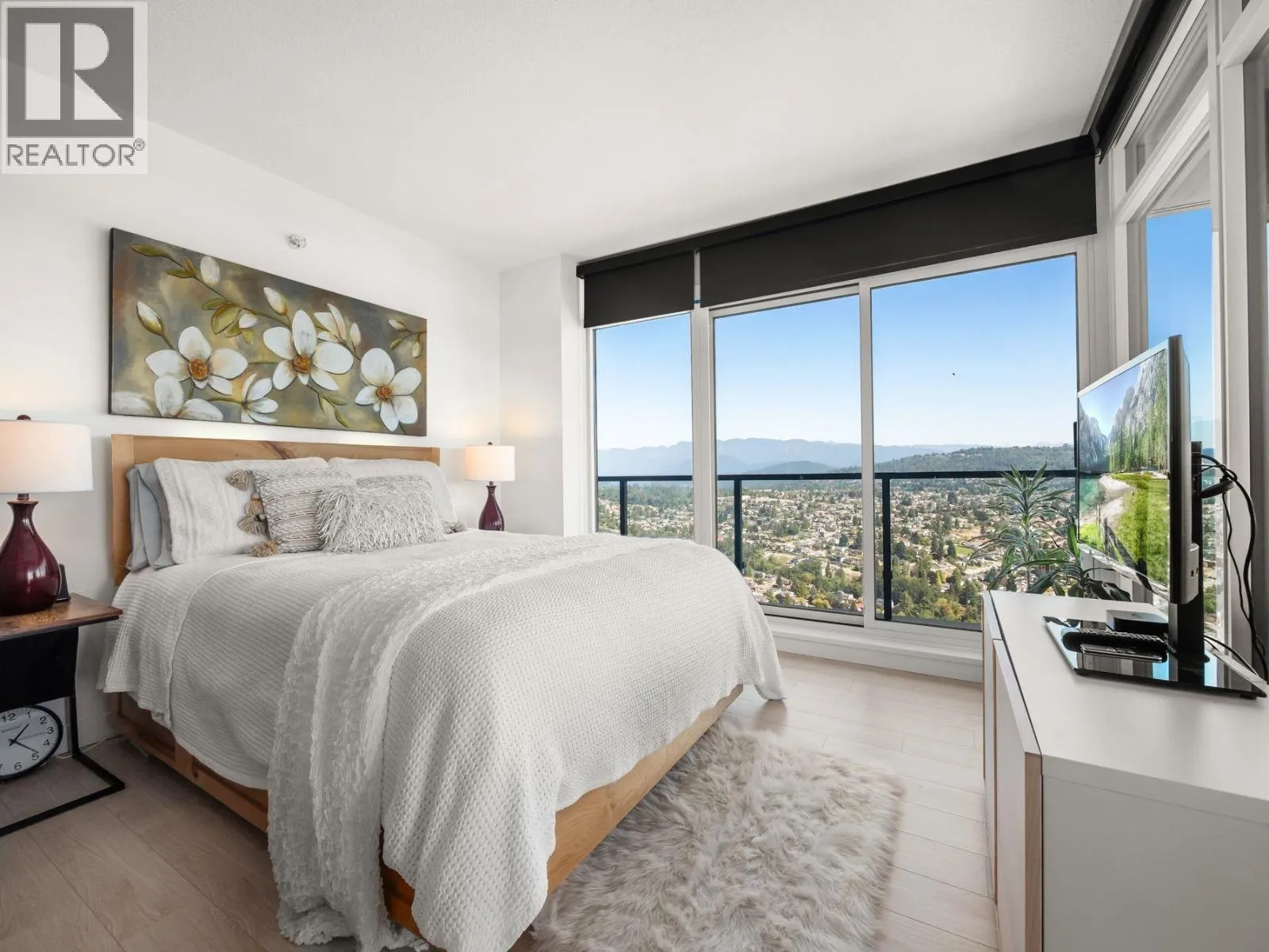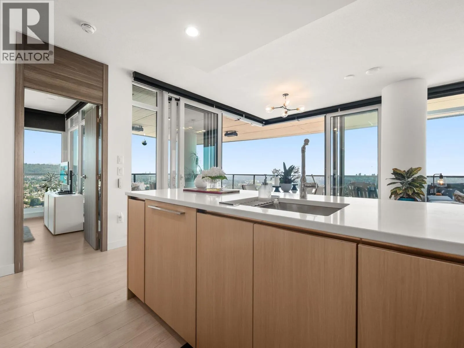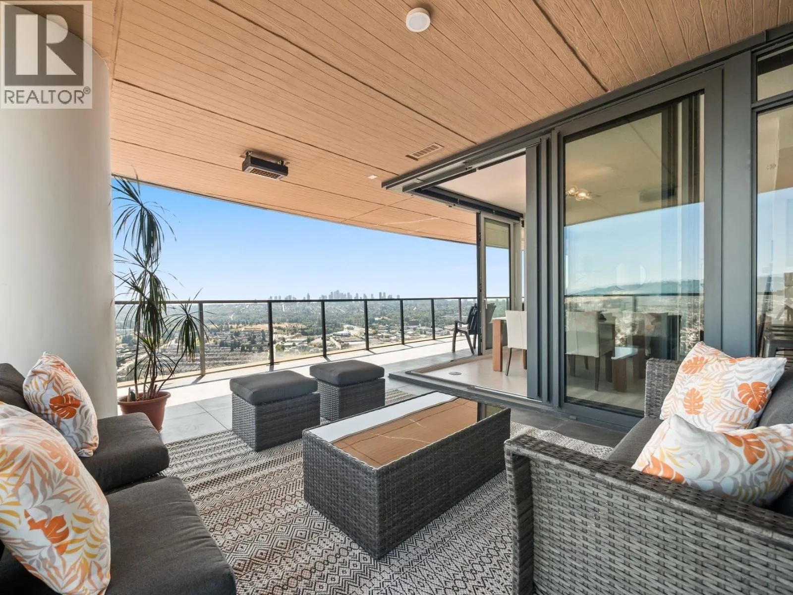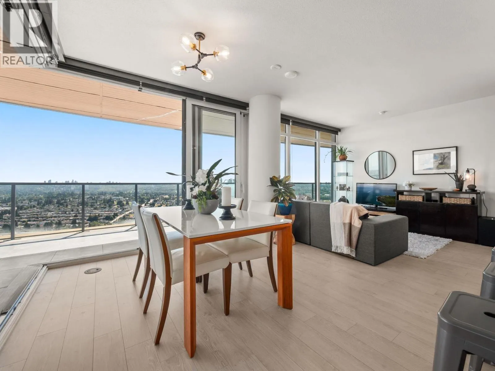 Sub-penthouse, corner suite at Concord Brentwood Hillside East with stunning, unobstructed 270° views-from the mountains and Indian Arm, to Mt. Baker, Metrotown, and the Gulf Islands. This south-facing 2 bedroom, 2 bathroom home offers 1,059 sqft of modern living and an incredible 638 sqft of heated outdoor space. Expansive sliding doors fully open to create a seamless flow between indoors and out-perfect for entertaining or relaxing with your morning coffee or evening glass of wine. Sophisticated design, quality finishings, air conditioning, and a bright open layout. Exceptional amenities, 24/7 concierge, and just steps to Brentwood Mall and Skytrain. One parking and storage locker included. Open: Sun, Nov 2, 2-4 (id:27476)
