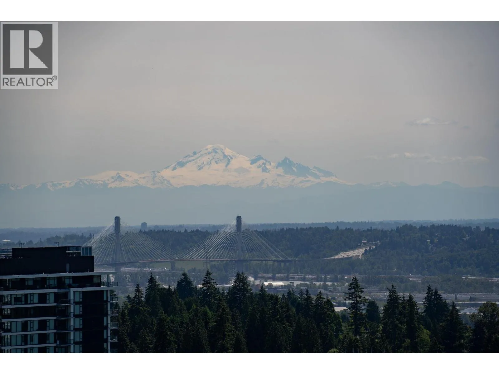 SUBPENTHOUSE LIVING with EXPANSIVE VIEWS of forest, mountains & Mount Baker from this SKYHOME at renowned Ledingham McAllister's Silhouette! BRIGHT & SPACIOUS 2 bed+den home with floor-to-ceiling windows, beautiful H/W flooring & a LARGE (100sf+!) balcony. Perfect for entertaining! Open Chef´s kitchen with granite counters, S/S appliances & gas cooktop flows to proper dining & living areas with beautiful fireplace for cozy evenings at home. Den/office perfect for WFH. Oversized primary with large walk-in closet & SPA-LIKE 5-pc ensuite. Second bed with easy access to 3-pc guest bath. Proactive strata with 5 star amenities, incl. gym, guest suite & rooftop terrace. Just steps to SkyTrain, the City of Lougheed Mall, restaurants & parks. Parking & Storage. Pets and Rentals ok. This is elevated living! (id:27476)