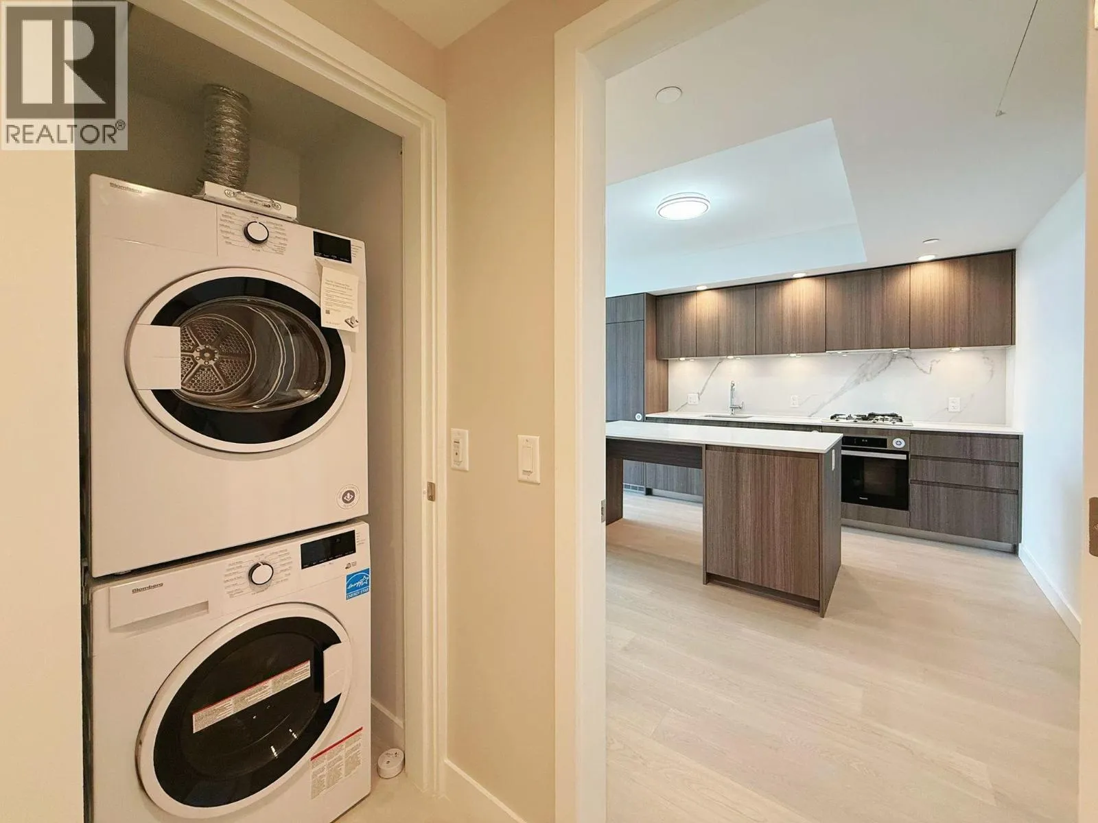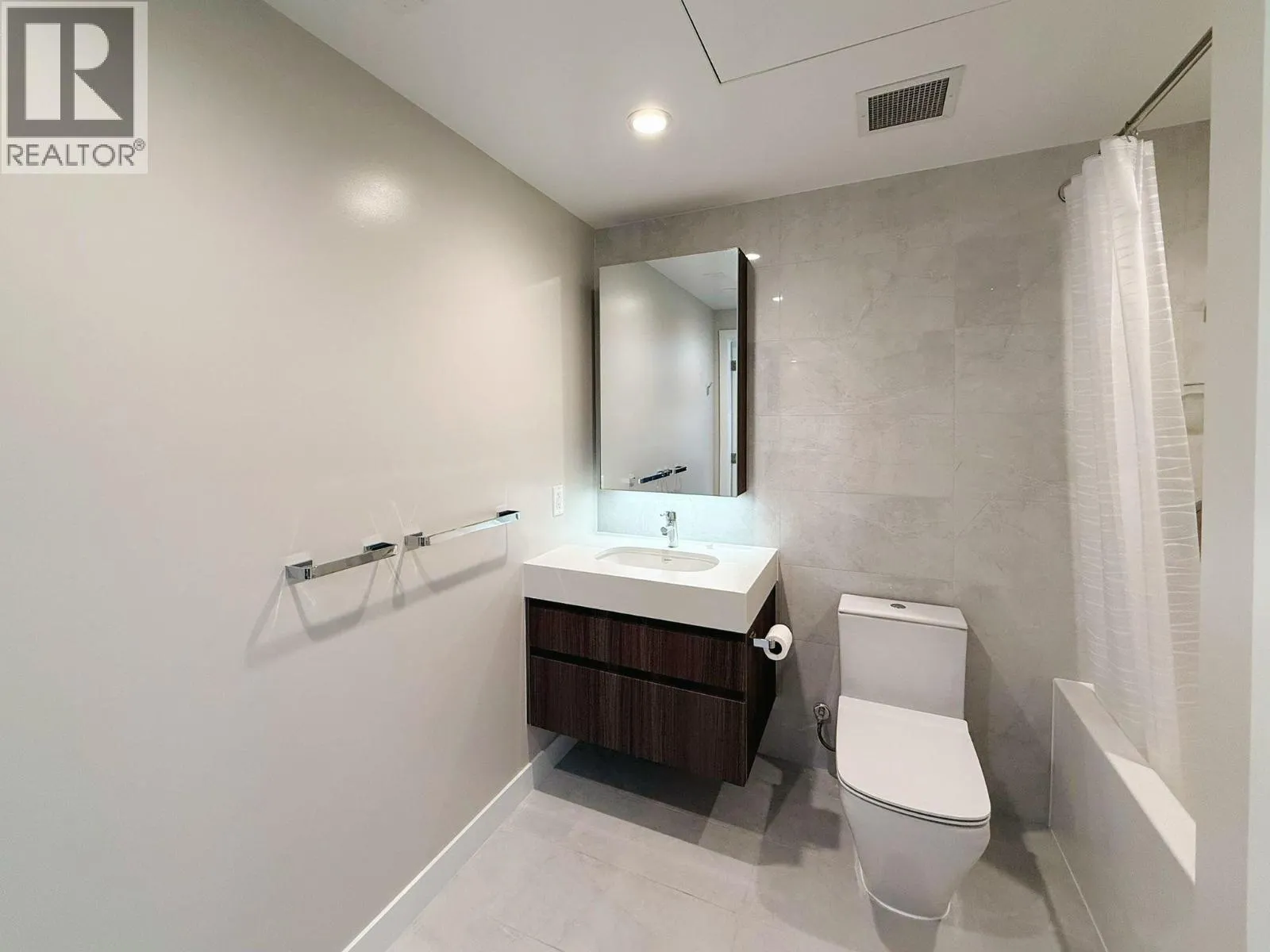 Welcome to contemporary urban living at the heart of Burnaby's Metrotown. This stylish 1-bedroom home in a 1-year-old concrete tower features air conditioning, premium Miele appliances, sleek cabinetry, and functional open-concept design. Enjoy beautiful city and mountain views from your private space. Comes with 1 parking and 1 storage locker. Outstanding amenities include concierge, fitness and yoga rooms, theatre, games lounge, outdoor BBQ area, and dog wash station. Steps to Metrotown SkyTrain, Metropolis Mall, Crystal Mall, Central Park, and vibrant local cafes and shops. (id:27476)