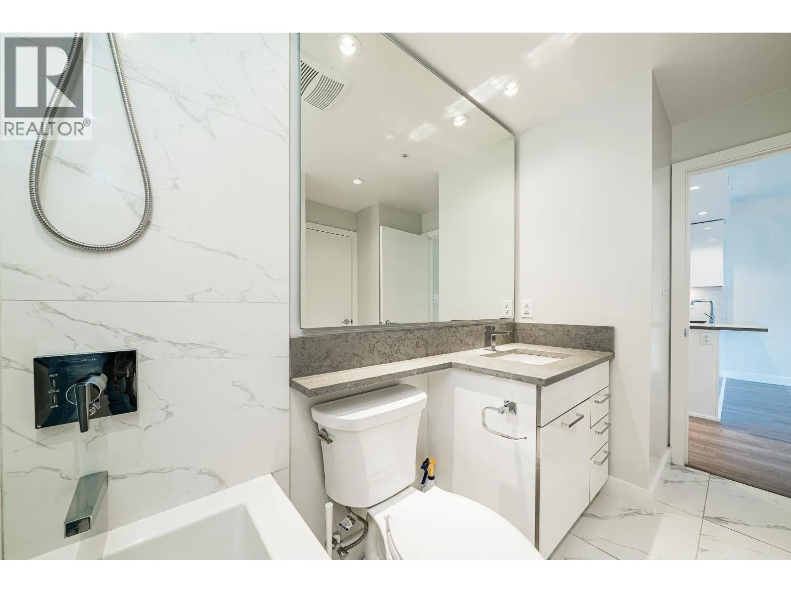 WELCOME TO ESCALA IN BRENTWOOD! Discover luxury urban living in this elegant 1 bedroom + den home, showcasing stunning panoramic views of the mountains and city skyline. Designed with sophistication and comfort in mind, this residence features air conditioning, high ceilings, floor-to-ceiling windows, stainless steel appliances, gas cooktop, a spacious walk-in closet, and full-size washer & dryer. The versatile den can easily serve as a home office, fitness area, pantry, or nursery. Enjoy world-class amenities including concierge service, visitor parking, two guest suites, a social lounge with full kitchen, meeting and theatre rooms, fitness and yoga studio, indoor pool, hot tub, and sauna. Steps from Gilmore SkyTrain, The Amazing Brentwood, Whole Foods, Cactus Club, and many more. (id:27476)