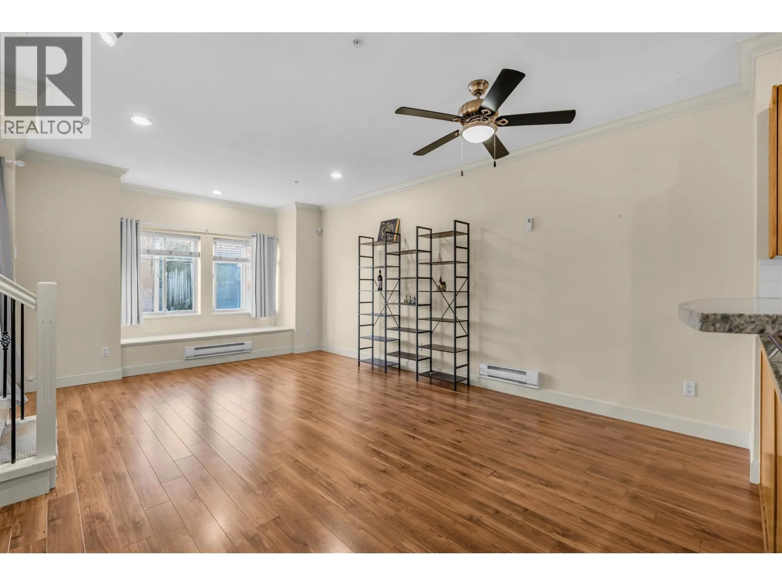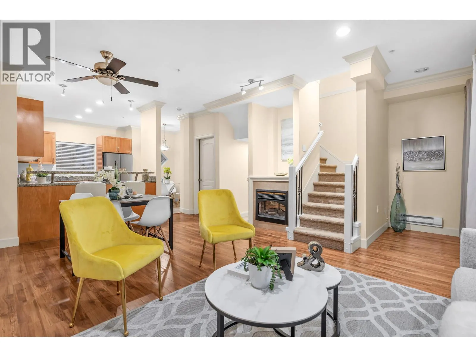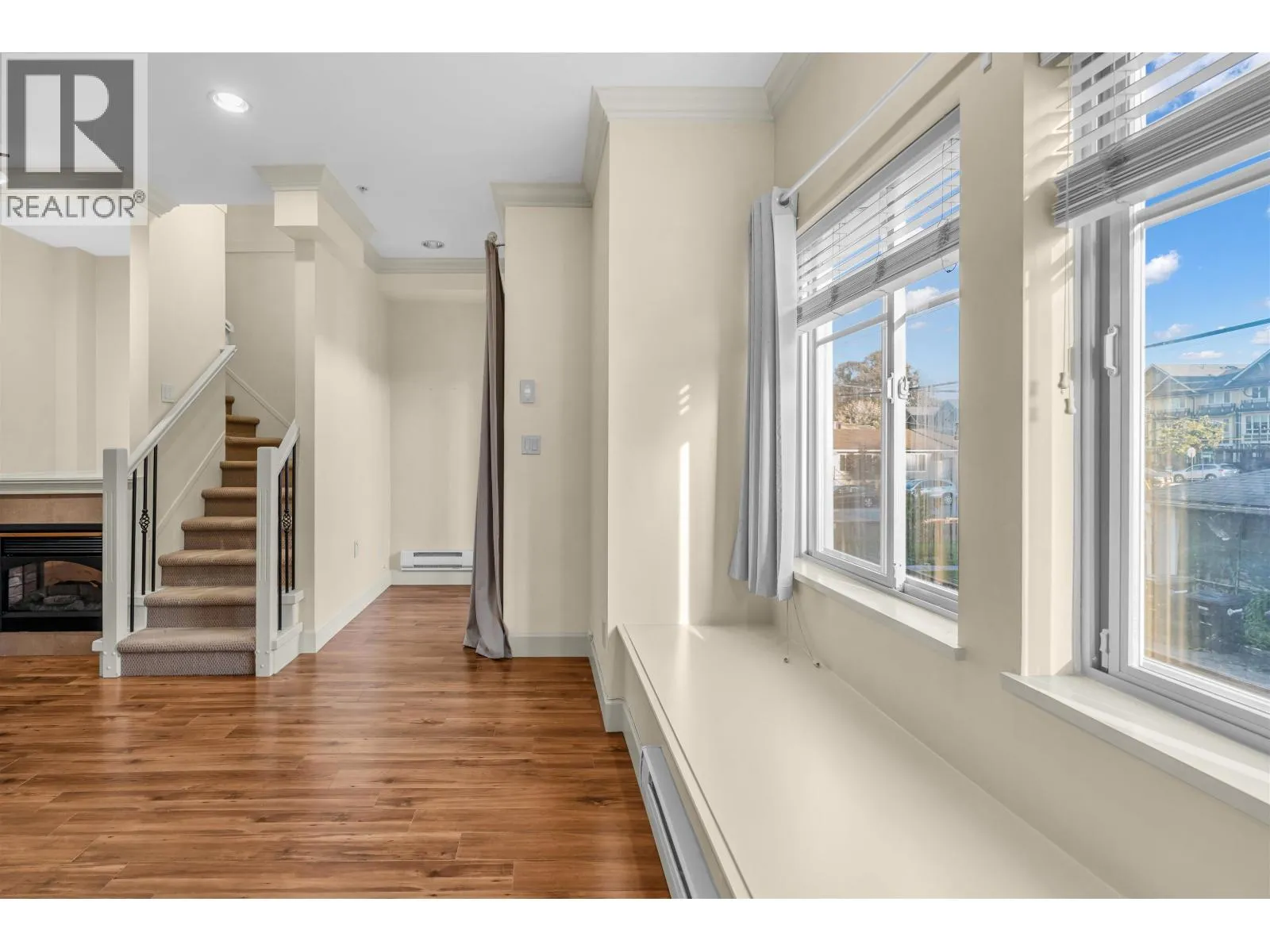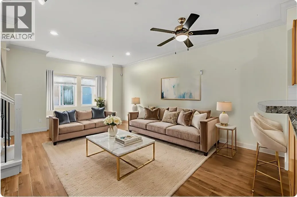 Central Location! Welcome to Belleville Heights-this 1,463 sq.ft., 3-level townhouse offers 3 bedrooms and 2 bathrooms with a bright, functional layout. Features include a modern kitchen with stainless steel appliances and granite countertops, high ceilings, and an electric fireplace. Enjoy a south-facing sundeck off the den plus a gated front patio with a private entrance. The lower level boasts a well-maintained, rarely seen side-by-side double garage with 8´ ceilings, extra storage, and in-suite laundry. Conveniently located near Burnaby General Hospital, Hwy 1, transit, Costco, Walmart, and Superstore, with easy access to BCIT and future development at Kwasen Village. A rare find you won´t want to miss! (id:27476)