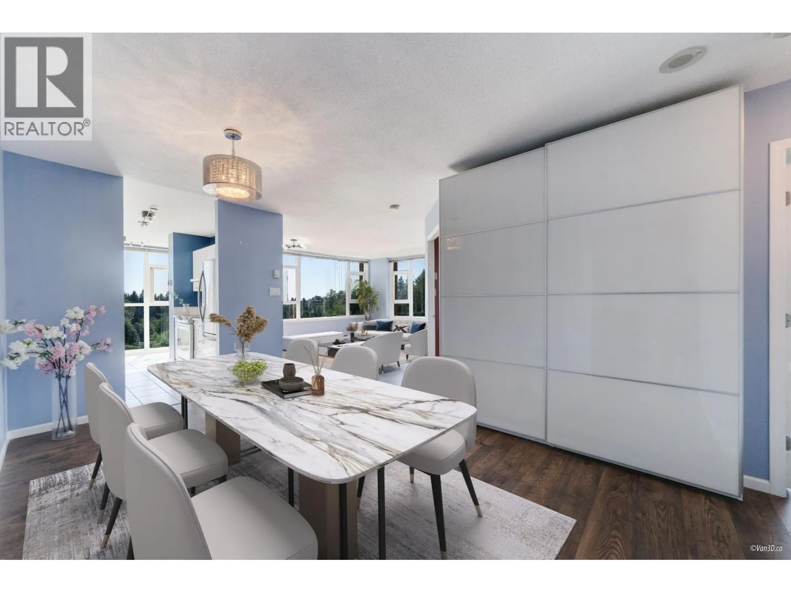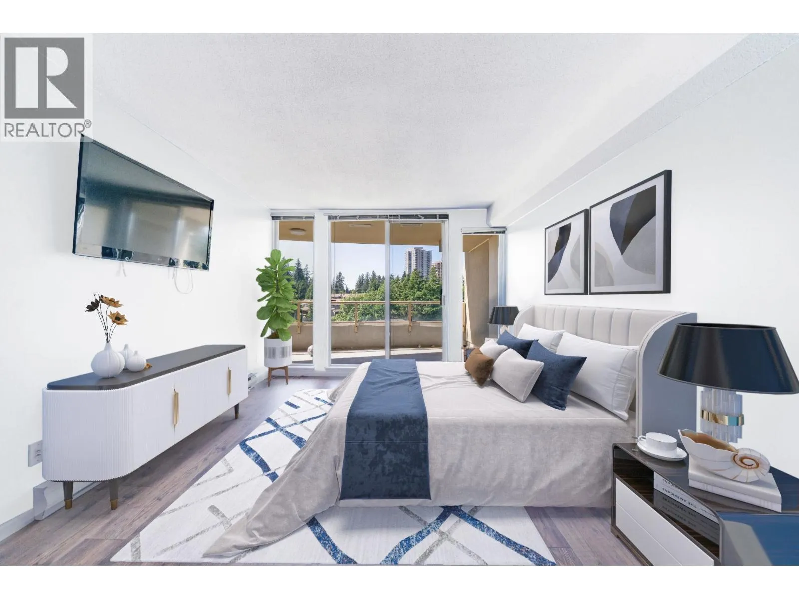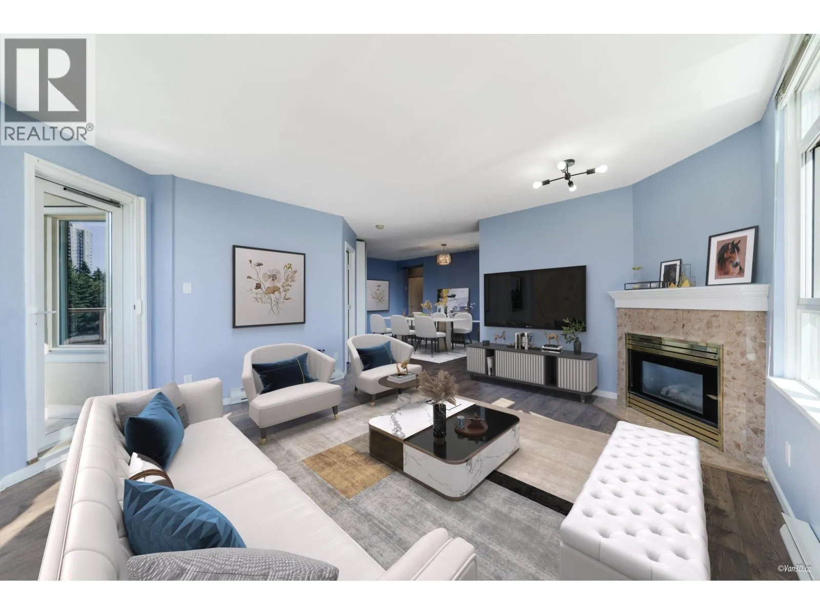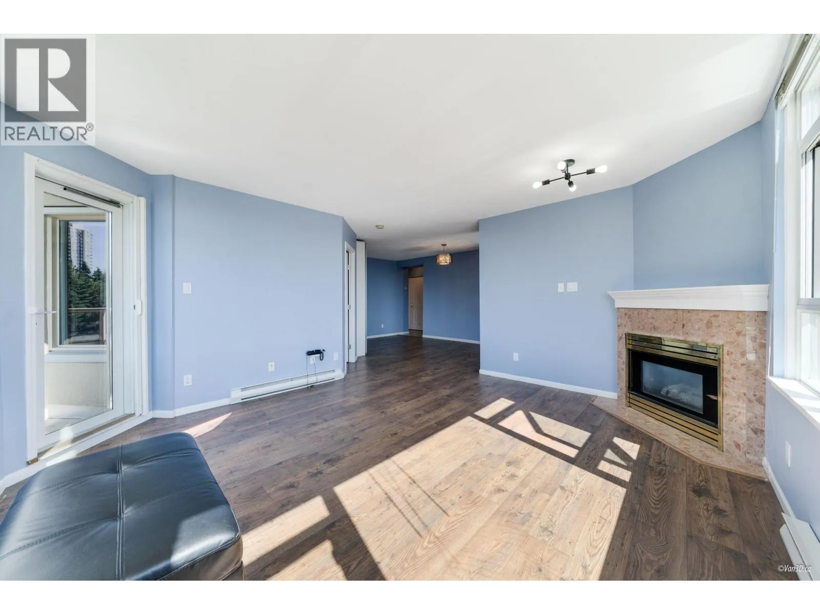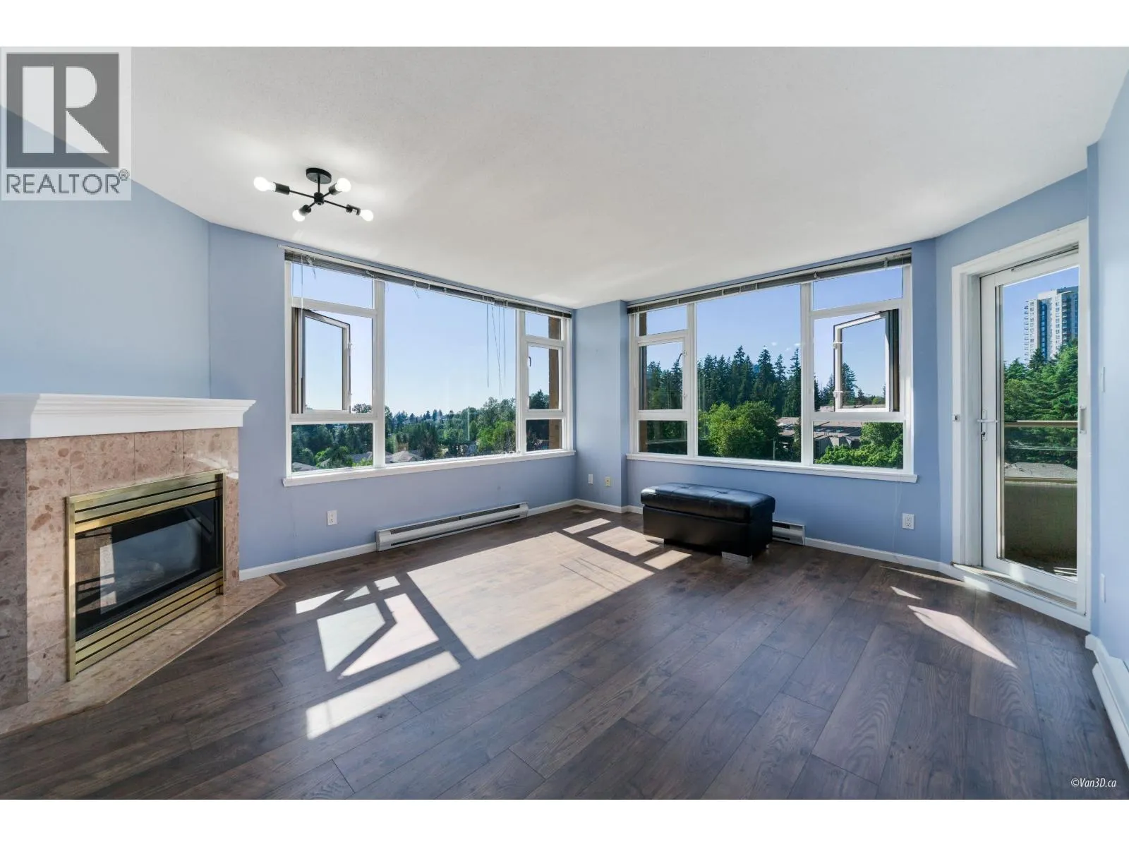 Welcome to your Sub-penthouse home at "The Parkhill" - A concrete BOSA building. This bright & spacious 2-bed, 2-bath home features stunning sunset views and a large covered balcony (24'x7'). The NW corner unit home boasts floor-to-ceiling windows, generously sized rooms, updated kitchen with newer appliances, new bathroom vanities, fresh paint, high-end flooring, in-suite laundry, & gas fireplace. Includes 1 parking, in-suite storage, + oversized storage locker. Perfect walkability to SkyTrain & Highgate Village (500m), Edmonds CC. Building amenities: bike room, sauna, exercise room, party room & EV charging. Recent building updates include rainscreen, windows, refreshed lobby/common areas, plumbing upgrades, roof, and new elevators already paid for (installation early 2026). CALL TODAY! (id:27476)
