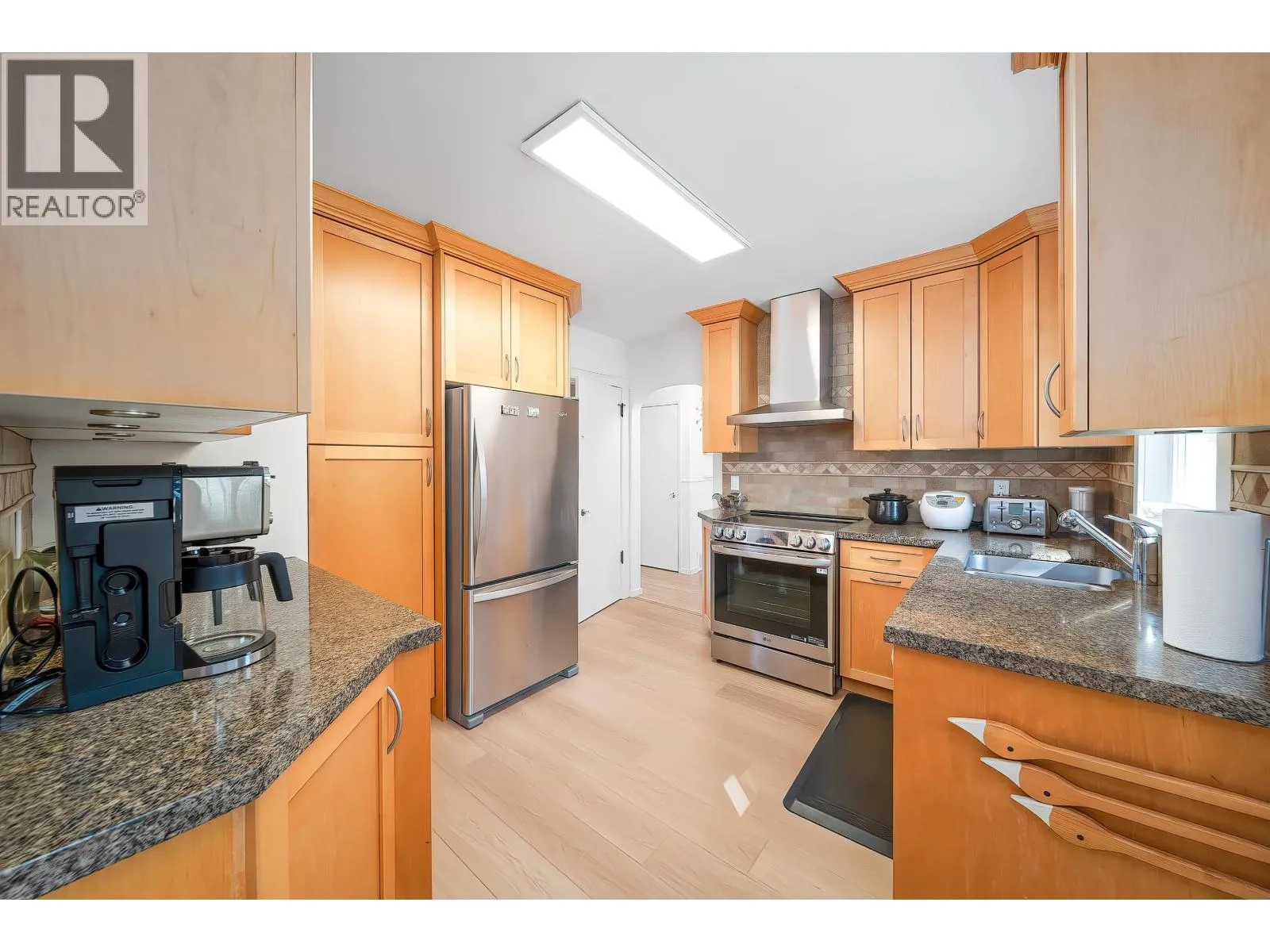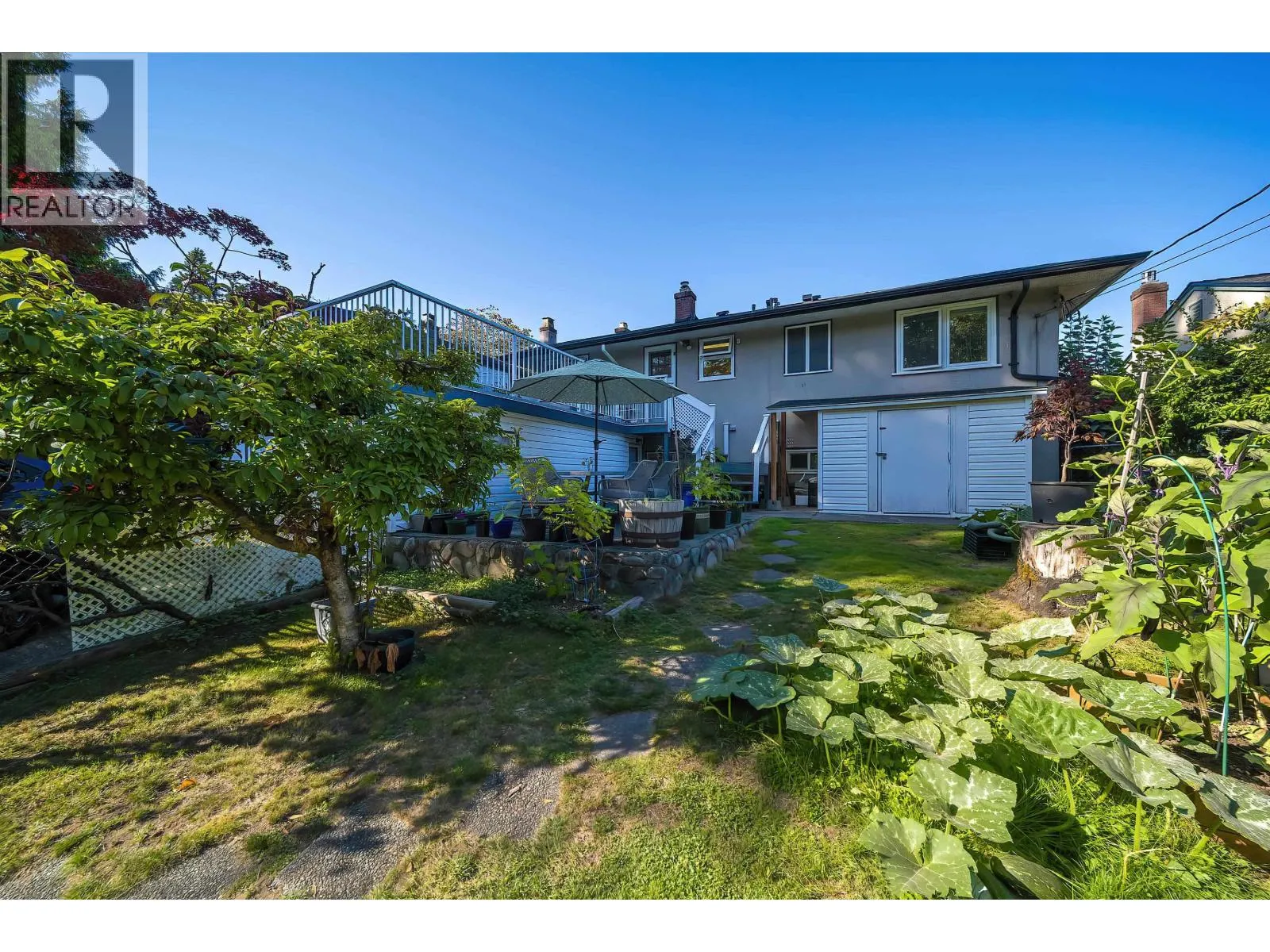 Best value in the market with back lane access! This amazing updated 4-bedroom, 2-bathroom South Slope home sits on a 6,000+ sq.ft. lot and features a newer kitchen, bathrooms, and roof, while preserving its character with newer floors, Painting, upgrade electrical capacity and a wood-burning fireplace. The sun-soaked patio overlooks a beautifully landscaped backyard with an organized vegetable garden and direct access to Byrne Creek Ravine Park with its baseball practice field. Conveniently located on a private street, just steps to Ron Mclean Park and a short walk to Edmonds SkyTrain, this move-in-ready home offers endless potential with a walkout basement for rental suite and laneway house opportunities. Must SEE!! (id:27476)