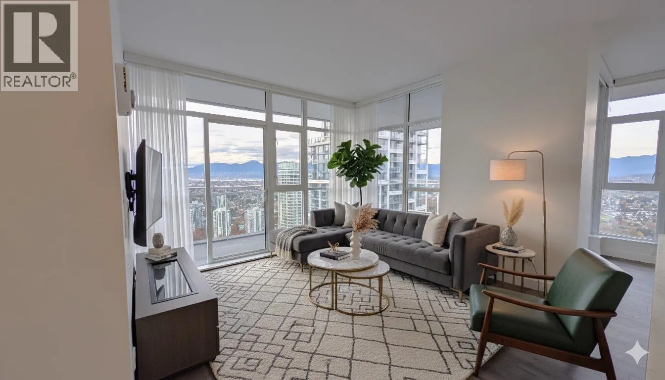 This exceptional 2 Bed, 2 Bath corner unit on the 50th floor at 4670 Assembly Way offers an unparalleled viewing experience. Step out onto your expansive wrap-around balcony and immerse yourself in breathtaking, panoramic views that stretch across the majestic North Shore Mountains to a serene lake and the distant ocean. This high-rise vantage point ensures maximum natural light and total privacy, making every moment spectacular. Residents enjoy premium building amenities including a state-of-the-art gym with steam and sauna rooms, a vibrant party room, a tranquil private garden area, and a handy guest suite. The unit comes complete with 1 secure parking stall and 1 dedicated storage locker. Some photos have been virtually staged to showcase the unit's potential. Book your private showing. (id:27476)