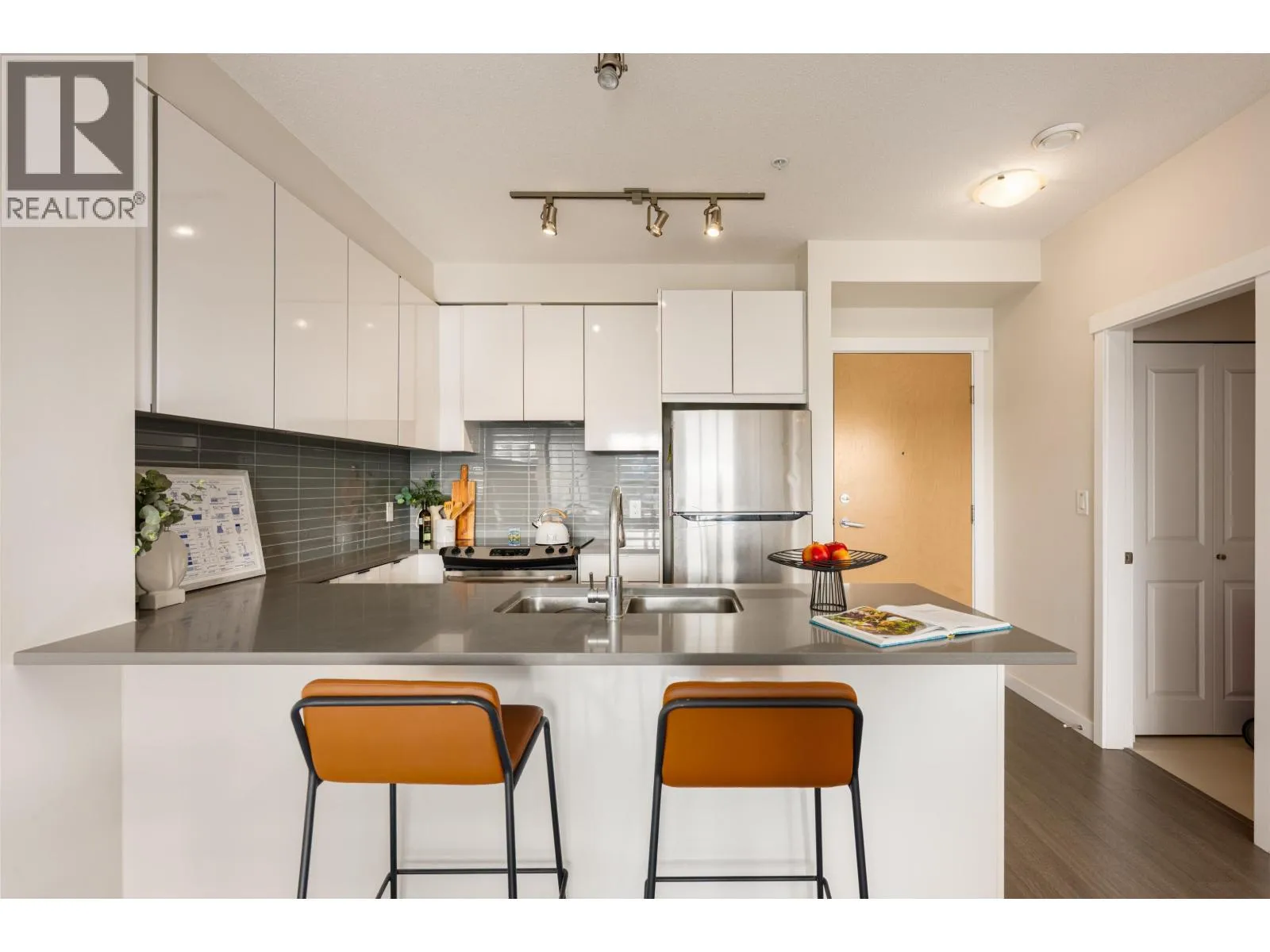 Welcome to VERITAS at SFU, built by Polygon, which offers top-quality construction and a functional south-facing layout filled with natural light. The modern kitchen features premium appliances and generous storage, flowing seamlessly into the open dining and living areas. Both bedrooms are well designed, with the primary bedroom featuring a private balcony. Residents enjoy access to a gym, party room, and garden plots. Ideally located near the SFU community center, top-rated schools, childcare, and scenic trails, this home suits small families or investors alike, with strong rental demand and reliable income. Open House Nov 15/ 16 from 2pm - 4pm (id:27476)