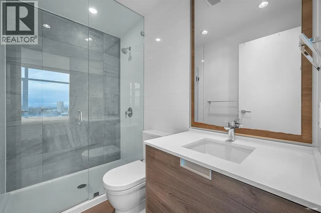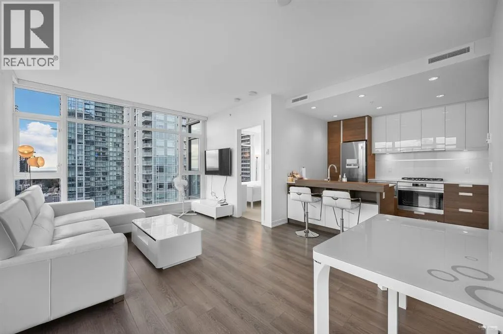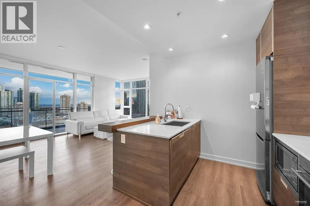 This modern 2bed2bath open concept layout has 2 sides of wall-to-wall floor-to-ceiling glass walls and access to the covered view balcony maximizes the views and lights all day. The functional floor plan with modern features including wood veneer & opaque glass kitchen cabinets, stainless steel appliances, gas stove & under-cabinet lighting, full sized washer/dryer. "The Station Square I" sits on center of South Burnaby, minutes to skytrain, restaurants and the pulse of Metortown. Amenities include gym, meeting room, guest suites, and concierge and premier amenities. Smoking pets are not permitted, Minimum one year fixed-term. (id:27476)