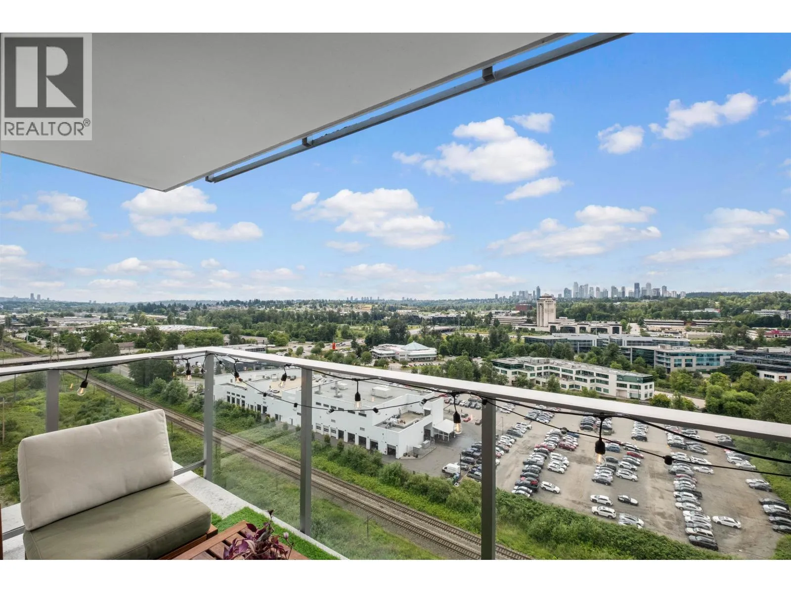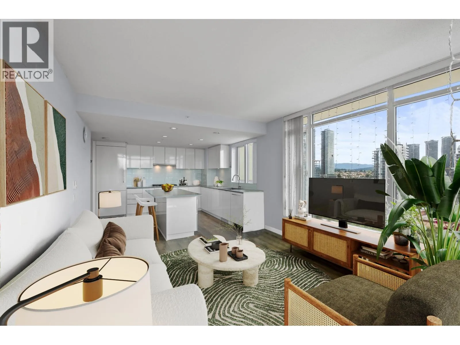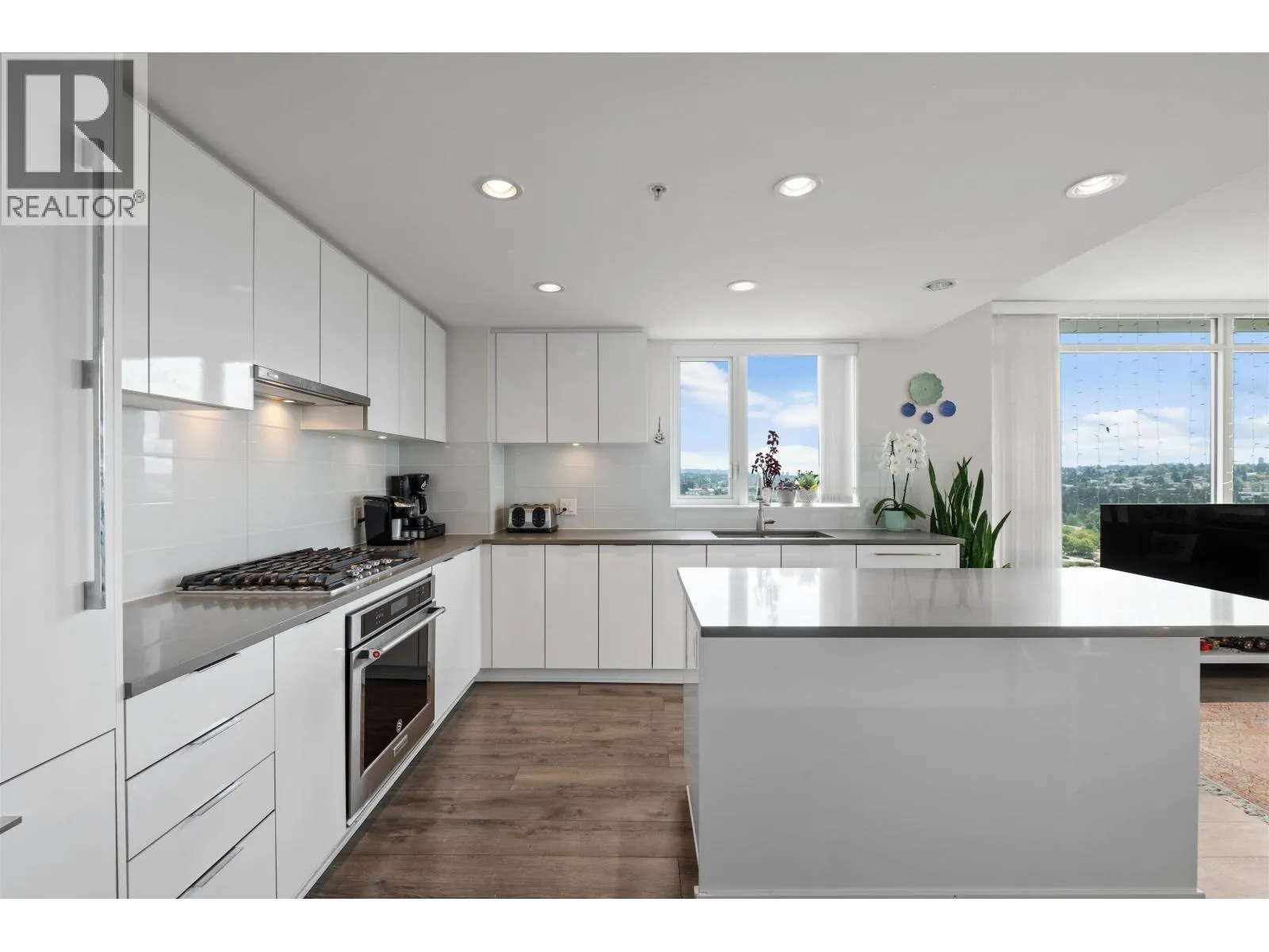 Fulton House by Polygon. Unit 1701 is a bright SE corner 2-bed, 2-bath home with two view balconies. Window over the kitchen sink frames the skyline as you cook. Floor-to-ceiling windows, 9 ft ceilings and laminate floors keep it open and light. Bedrooms sit side-by-side off the living area, ideal for young families. Kitchen has gas cooktop, built-in fridge and quartz island. Full-size side-by-side laundry in its own closet. Enjoy clear city and mountain views from every room. Residents share the 28,000 square ft Fulton Club, pool, hot tub, sauna, gym, yoga, lounge, guest suite and kids play area.Walk to Brentwood Mall, SkyTrain, Whole Foods and cafés. Open House: Sunday, November 16th, from 2:00 PM to 4:00 PM (id:27476)