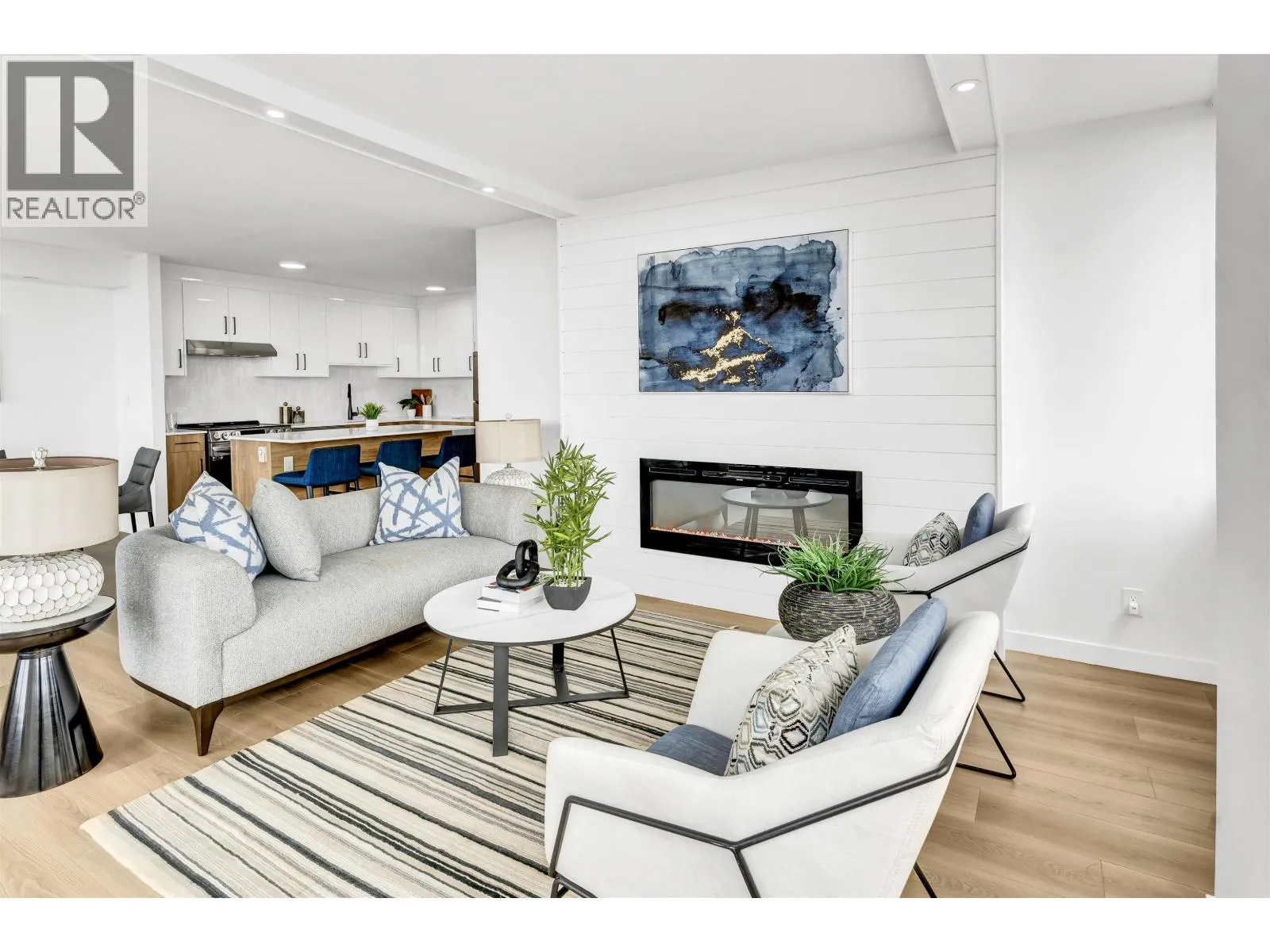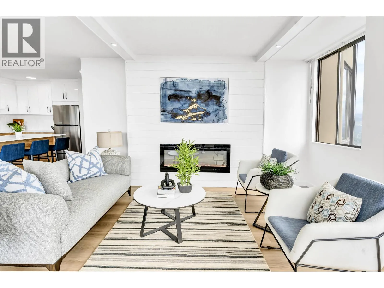 Fall in love with this sunlit, top-floor corner home-fully reimagined with designer finishes. Over 1,100 sq ft, 2 beds, 1 bath, and an airy open plan anchored by a sleek built-in media wall and a cozy fireplace. Brand-new stainless appliances, fresh flooring, lighting, and millwork throughout. Wall-to-wall windows frame sweeping panoramic views. Quiet, well-run strata minutes to Royal Oak SkyTrain, Metrotown, Deer Lake & Central Park-urban convenience without compromise. Move-in ready, pet-friendly, and rare at this size. The turnkey showpiece you´ve been waiting for! (id:27476)