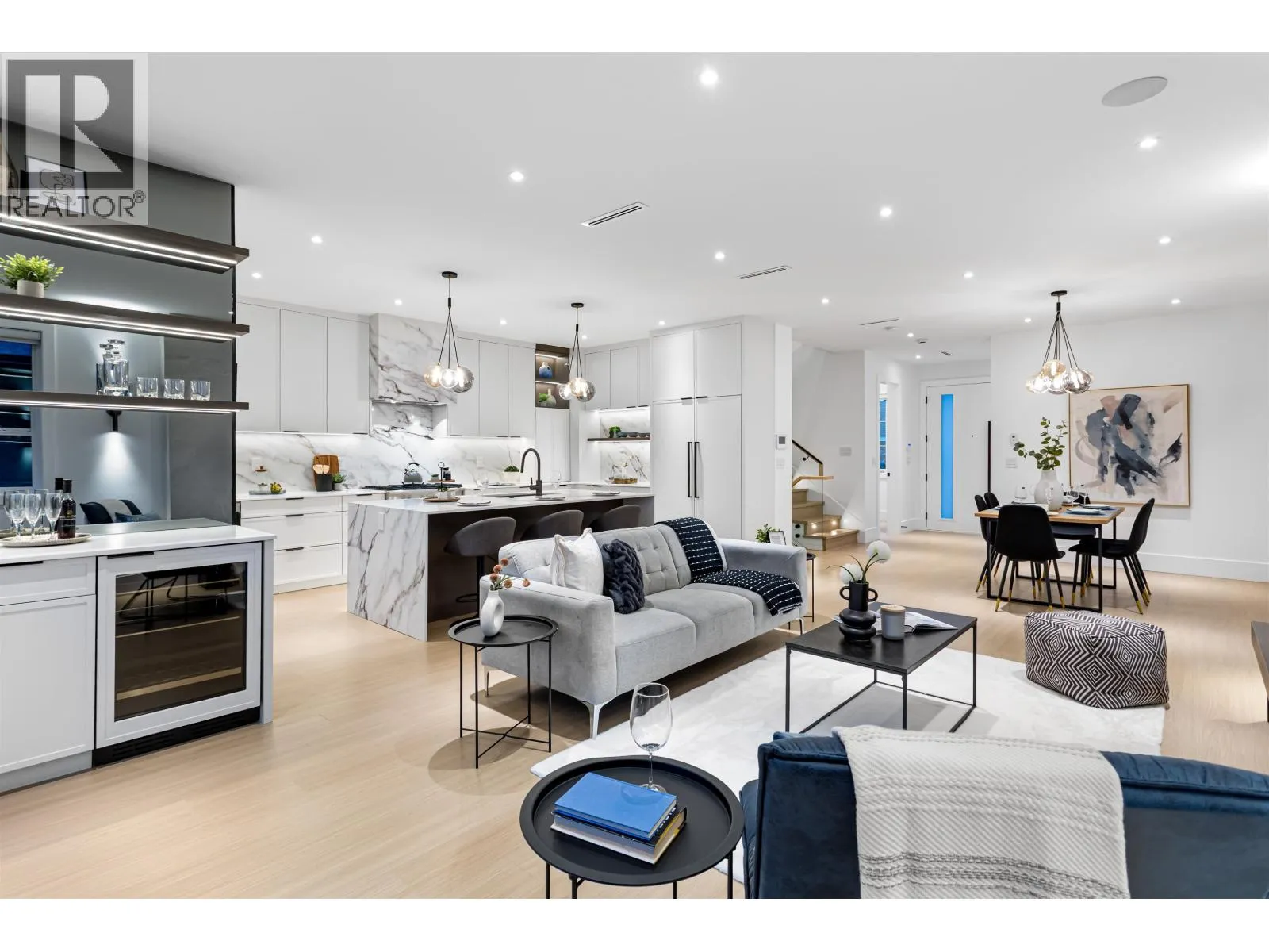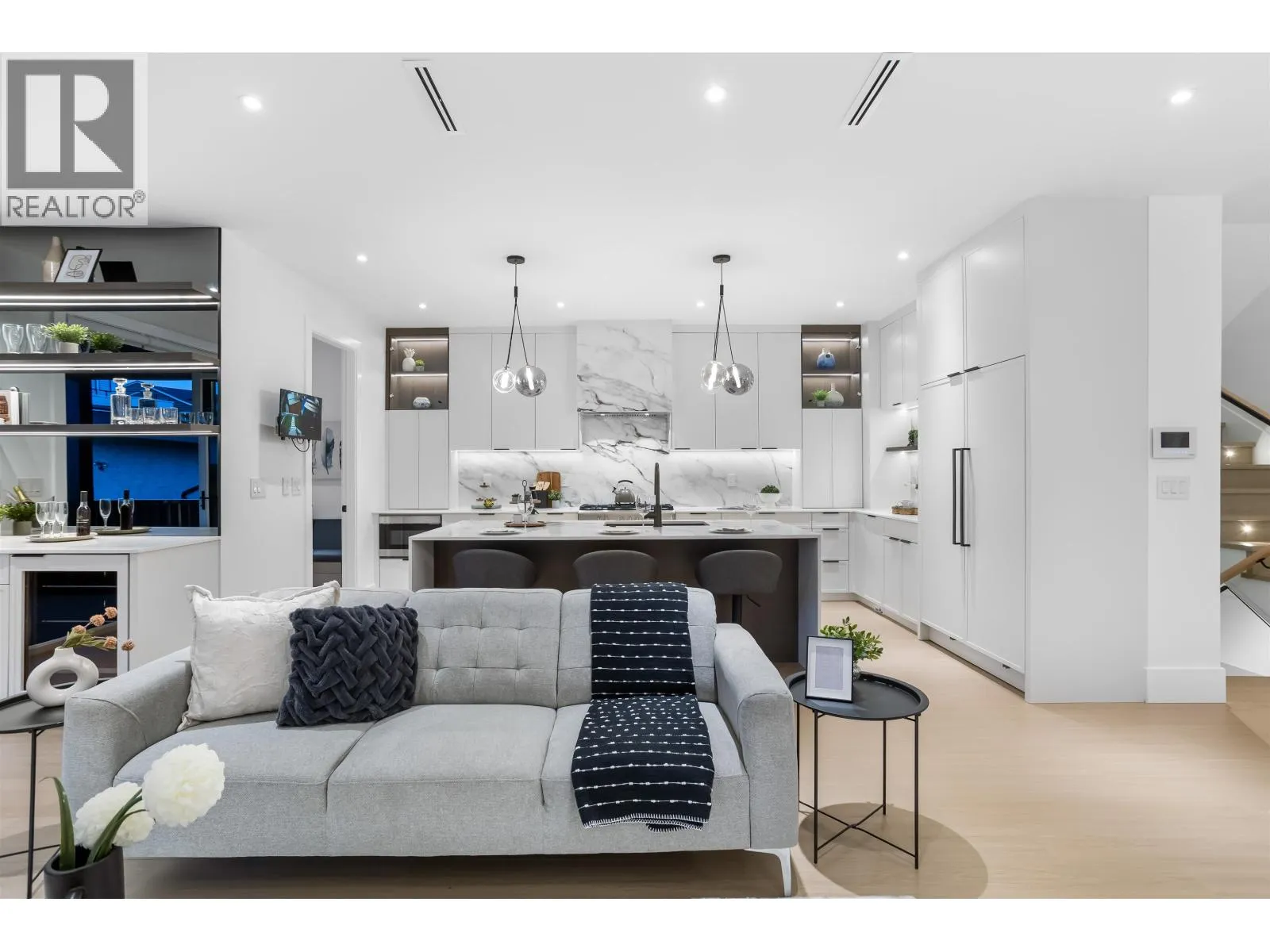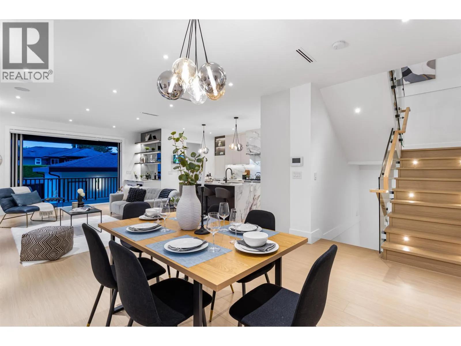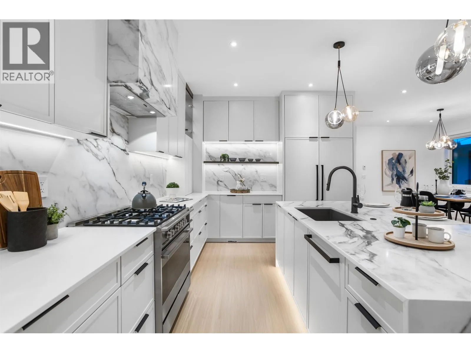 Welcome to Union Residences! These homes are side by side Duplexes with legal suite. TOTAL of 5 BDRMS, 1 DEN & 4 BATHS. Over 2800 sqft of living space. Top floor has 3 BDRMS & 2 full BATHS. Spacious master m with walk in closet. Spa like bath & private deck to enjoy your evenings. Open concept main floor with den in front, beautiful off white kitchen with built-in integrated appliances. Spacious breakfast bar with seating. Mud room from the back door. Hands reach personal bar from the family rm & covered deck. Eclipse doors to enjoy in-out feel in the summers. 2 BDRM spacious legal suite with laundry & dishwasher..All designer lights & fixtures! A/C, radiant hot water floors, CCTV...& walking distance to both levels of schools, SFU. Short drive to all restaurants & shops. (id:27476)