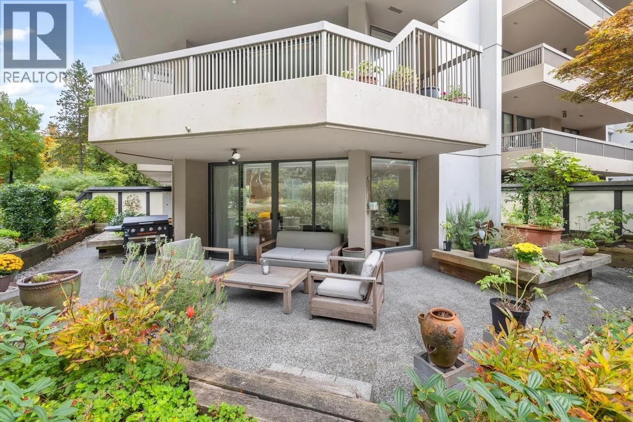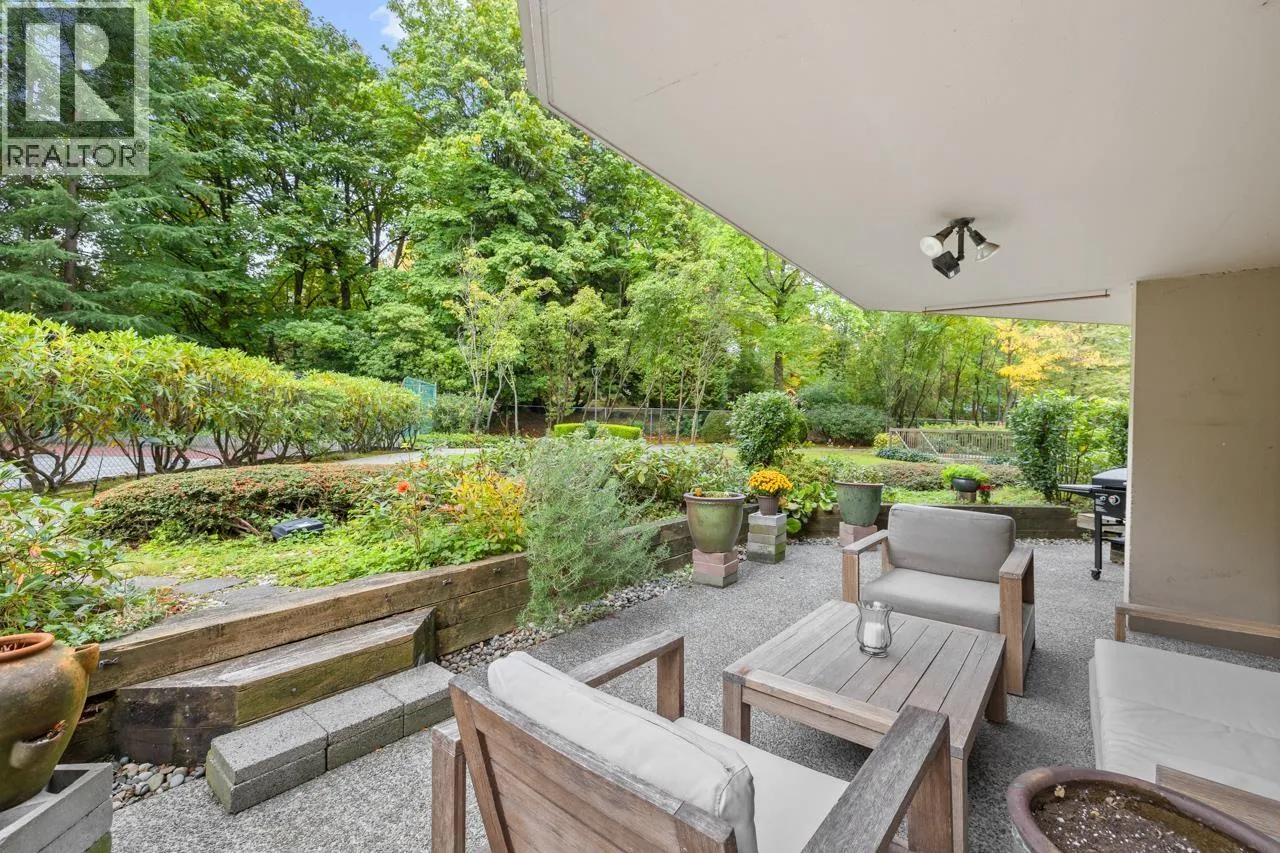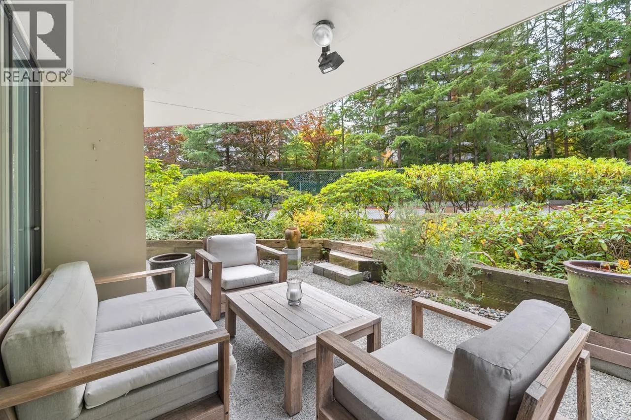 Tranquil living, embraced by nature! This pristine corner, garden suite occupies the premiere location in the building, surrounded by lush greenery in a vibrant setting. The 800+ sf wrap-around balcony feels like your own private park, perfect for morning coffee, summer BBQs or a bit of planting in the sunshine. Floor-to-ceiling windows bring the outside in, creating a seamless connection to the surroundings. Inside, the spacious layout offers flexibility for a home office or an expanded dining area, while both bedrooms are generously sized for comfort & relaxation. Anola (by Bosa), a well cared for concrete building, sits in a quiet community just steps from Brentwood Mall, SkyTrain, parks and more. Calm, comfort, and convenience come together in one exceptional retreat. (id:27476)