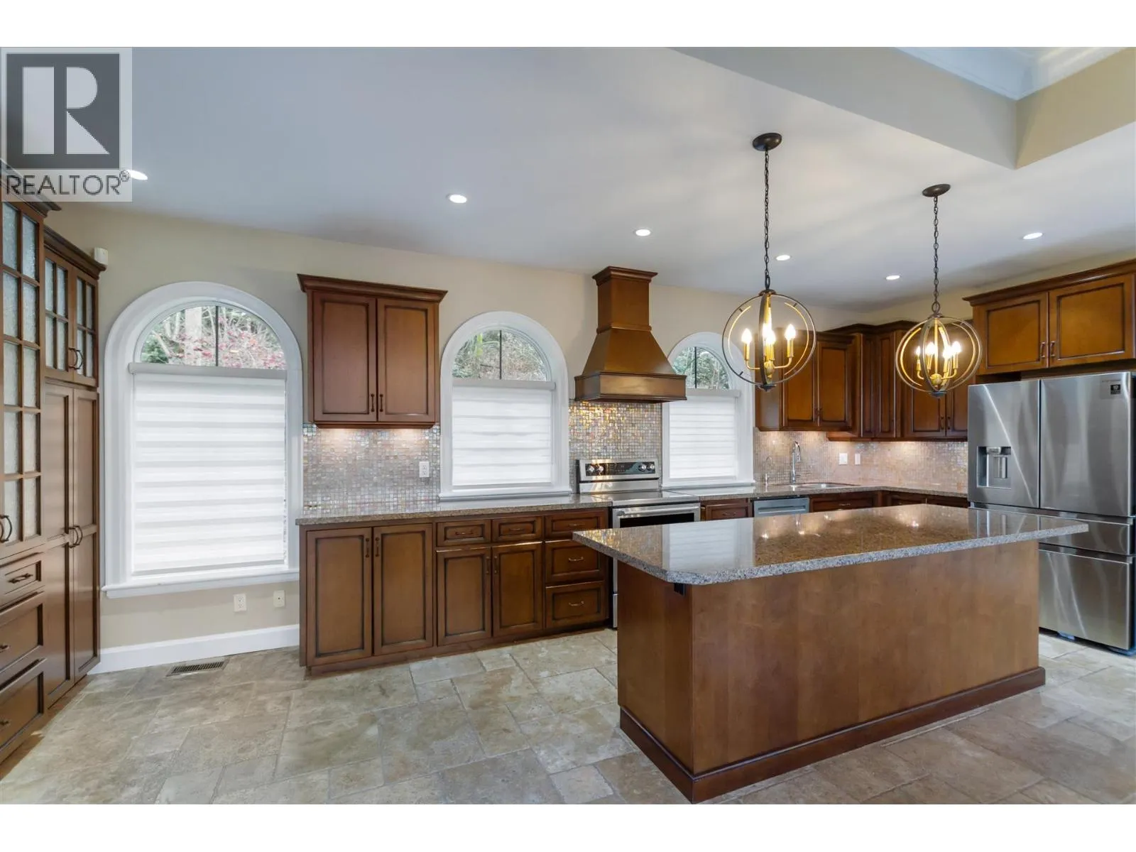Check out the amazing views of Burrard Inlet and Indian Arm. This custom European built home is located on the east side of Capital Hill surrounded by green belts at the end of Bessborough. The upper floor has the main living area with large windows throughout to take advantage of the view. Bright kitchen is open to the family room, eating area and access to a large deck. It has all new appliances, wood cabinets, stone countertops and a large island. The formal living and dining rooms make this home great for entertaining. Flex room can be a bedroom or den. Main floor has a grand foyer with marble floors and a large chandelier, 2 large bedrooms and a primary with a walk in closet and ensuite. The basement large recreation and games room and a self-contained 2-bedroom basement suite. The suite has never been lived in and has a private entrance, new appliances and its own laundry. (id:27476)