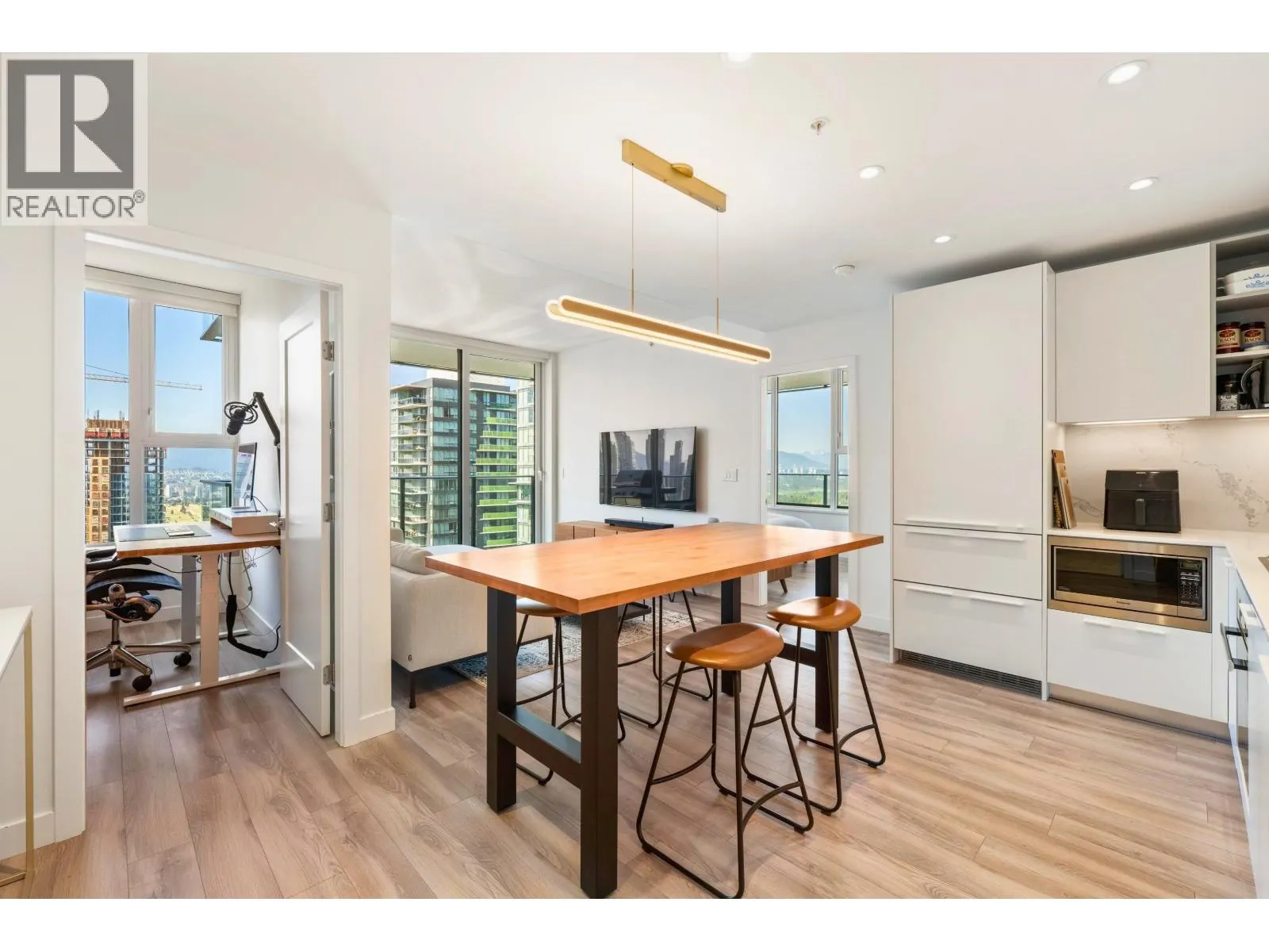Immaculate 2 bed, 2 bath, 818 SQFT, north-facing corner unit home at POLARIS boasting a 247 SQFT wrap-around balcony with breathtaking City, Ocean & Mountain views!! Featuring Stainless Steel Miele appliances, Inform cabinetry, Quartz counters/backsplash, HUGE walk-in closet, 9' ceilings, wide plank flooring & central A/C!! Nestled in the heart of Metrotown with an impressive 93 Walk Score, you´re steps to Royal Oak SkyTrain, Metrotown Mall, T&T Shopping & Bonsor Community Centre. Exceptional amenities: Concierge, Golf Simulator, Full Gym, Table Tennis Room, Social Lounge, Guest Suites, & a huge outdoor BBQ patio perfect for entertaining!! BONUS 2 parking stalls (1 EV charger) + 1 storage locker. Blending luxury, location, & incredible views! *Call to schedule your viewing today! (id:27476)